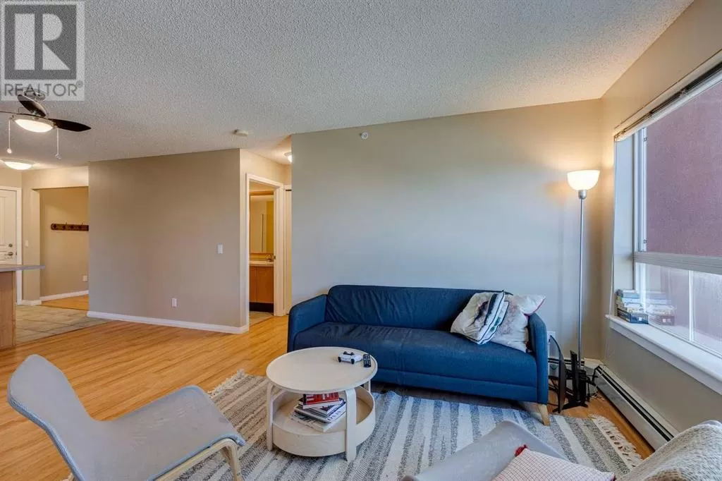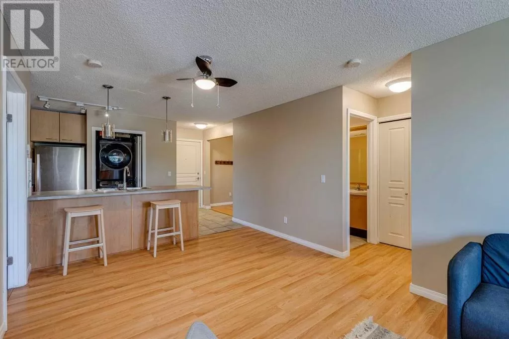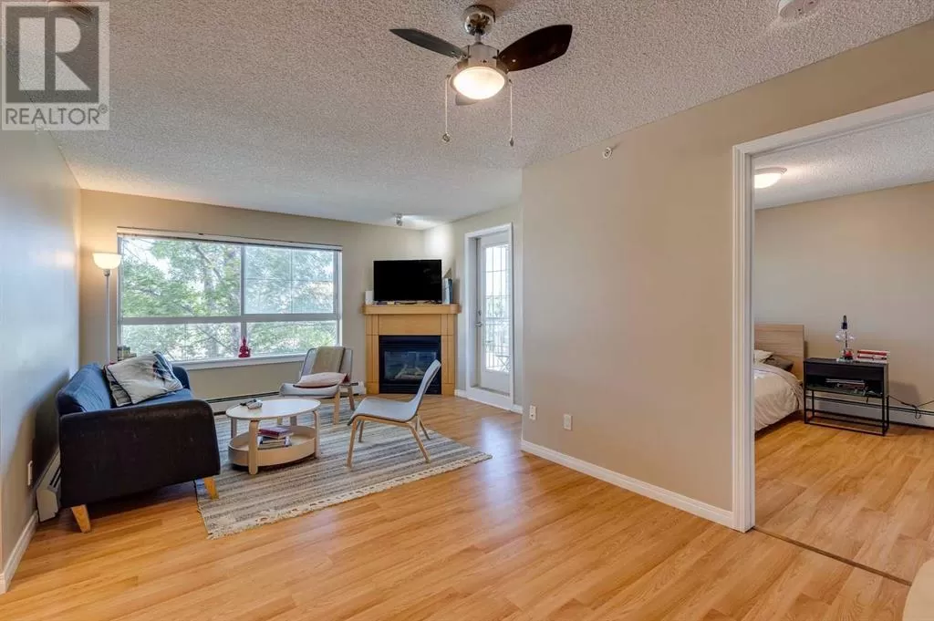 Bright and functional upper-floor unit featuring two bedrooms and two full bathrooms. The spacious primary suite includes a private ensuite with four-piece bath and dual closets. The second bedroom connects directly to a three-piece bathroom with an oversized shower.The kitchen is equipped with modern appliances. Relax in the cozy living area featuring a gas fireplace, or set up a work-from-home space in the open nook near the entrance.Enjoy the convenience of in-suite laundry. Step out onto your covered, north-facing balconyâperfect for warm eveningsâwith a built-in natural gas line ready for your BBQ.Just a short walk to Mount Royal University, this well-maintained home is move-in ready. Additional features include a titled underground parking stall, an assigned storage locker, car wash bay in the parkade, and an on-site fitness centre. Excellent access to transit routes and nearby bike paths. (id:27476)