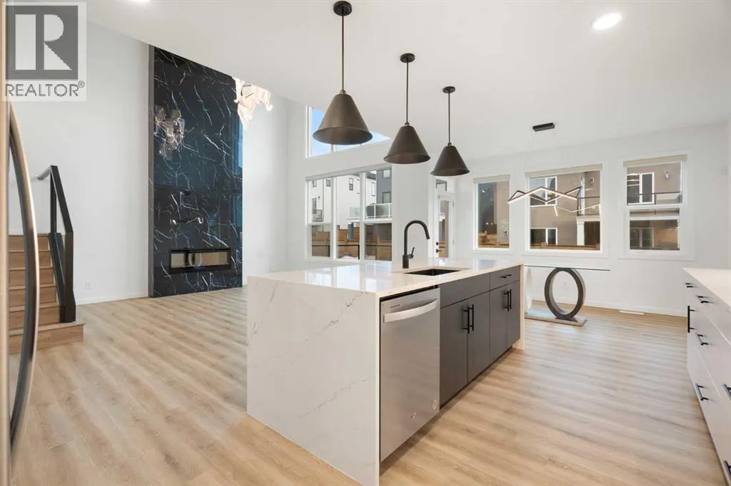 Timeless Comfort in Aspen Spring Estates | 4+1 Bedrooms | 3.5 Bathrooms | 2,380+ Sq Ft Above Grade Welcome to this beautifully upgraded home in the prestigious Aspen Spring Estates of Springbank Hillâwhere refined design, everyday functionality, and an unbeatable location come together effortlessly. With over 2,380 sq. ft. above grade and a fully finished basement, this home offers the perfect blend of style and space for todayâs modern family.From the moment you step inside, youâre greeted by a bright, open-concept floor plan highlighted by soaring ceilings, expansive windows, and sleek contemporary finishes. The main level includes a stylish glass-enclosed home officeâperfect for remote work or homeworkâand a spacious great room anchored by a dramatic two-storey black marble feature wall. Luxury vinyl plank flooring adds both beauty and durability throughout.The chef-inspired kitchen is a true showstopper, featuring a large waterfall island with quartz counters, a built-in wall oven and microwave, gas cooktop, designer lighting, and ample two-tone cabinetry. The seamless flow between the kitchen, dining, and living spaces makes entertaining and everyday living effortless.Upstairs, discover four spacious bedrooms, including a luxurious primary suite with a walk-in closet and spa-style ensuite complete with dual vanities and a modern soaker tub. A generous laundry room and an additional full bathroom provide extra convenience.The fully developed basement offers even more living space, with a large rec room, fifth bedroom, full bathroom, and ample storageâideal for extended family, guests, or rental potential.Step outside into your private backyard featuring a large deck with elegant glass railingsâperfect for summer gatherings or quiet evenings. Additional highlights include a double attached garage and a mudroom with custom built-ins for daily practicality.Located steps from scenic walking paths, lush green spaces, and just minutes from top-rated scho ols, the LRT, Westside Rec Centre, and upscale shopping and diningâthis home truly has it all.Donât miss your chance to own this move-in-ready designer home in one of Calgaryâs most coveted communities. Book your private tour todayâopportunities like this are rare. (id:27476)