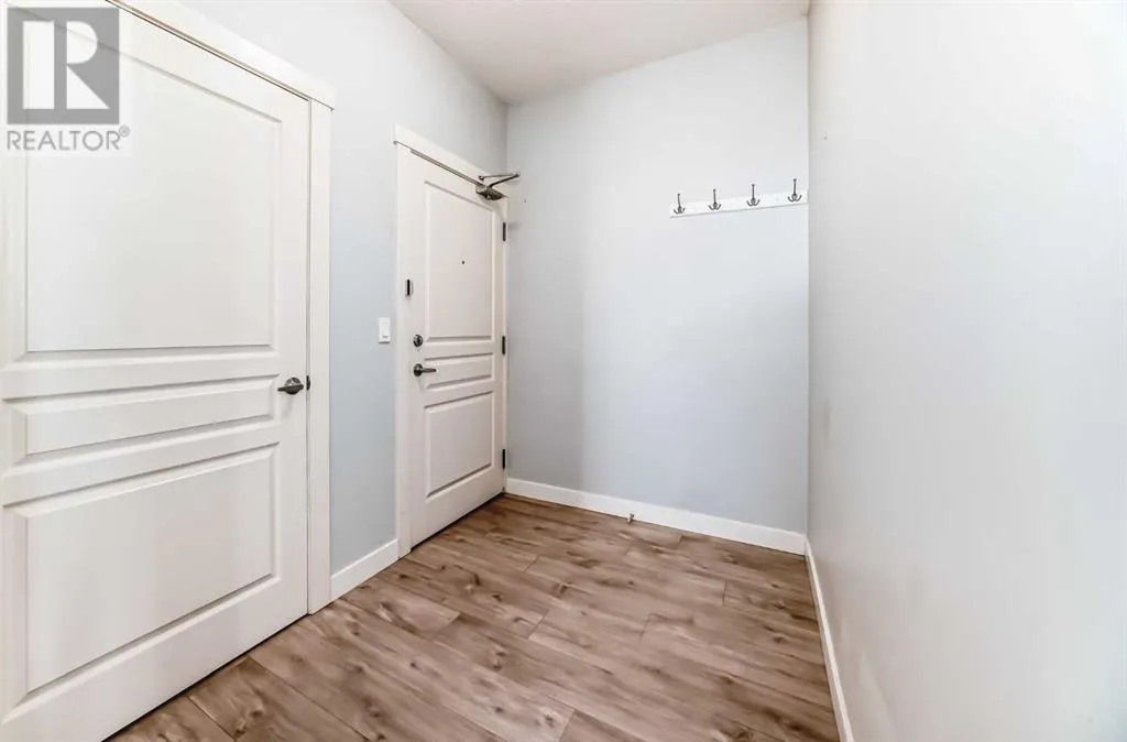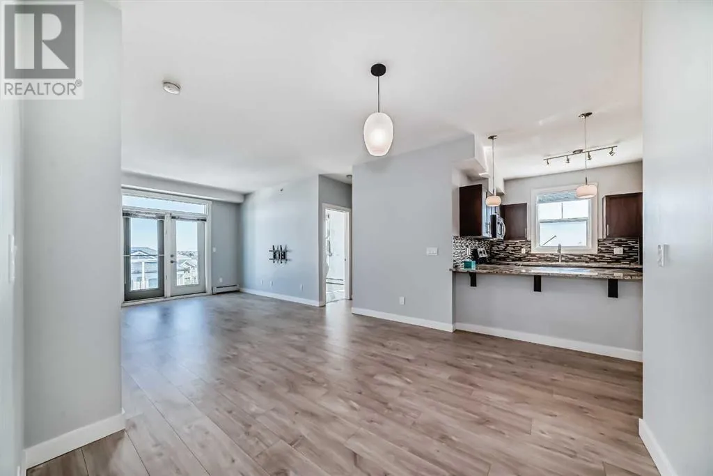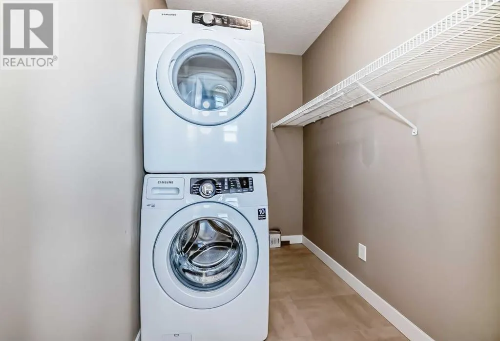 Top floor, corner, huge 2 bedroom and 2 bathrooms apartment in well maintained Evanston Square. Great layout. Barely any space wasted on hallways Barely any space wasted on hallways. Space enough for a dedicated dining area. Natural light bathed living room looks out to the patio and beyond without obstruction. Good size patio with glass panels and natural gas outlet for barbecue. Ample size primary bedroom comes with a walk-in closet, and a four piece bathroom with shower stall. The second bedroom is just as spacious as the primary bedroom. The kitchen comes with stainless steel appliances and most of them were replaced recently. The quart countertop, and breakfast bar complete the kitchen. The laundry room doubles as a storage room, room enough to store and forget. If this is not enough there is an assigned external storage unit. This home was painted about 3 years ago with bright and lively colour. The floor was levelled and flooring replaced.The size of the titled underground parking stall will provide added incentives to own this home. The width of the stall is 13.5 with a pillar on one side and the wall on the other. It is almost like having your own garage. It is pet friendly too. Two major shopping centres, Creekside and Sagehill Crossings and minutes away. Major retailers like Walmart, T & T superstore, banks and other amenities are within easy reach. You are never far away from anywhere with easy access to Stoney and Shaganappi Trail. Come, visit and make this your place. (id:27476)