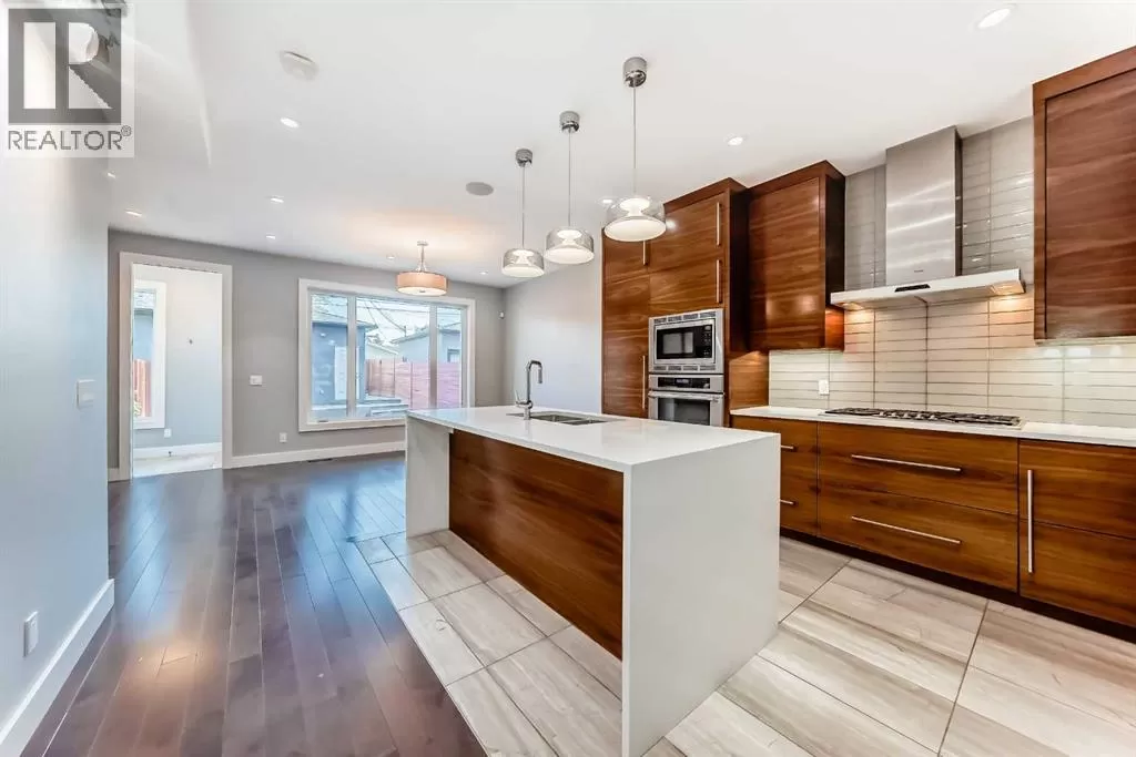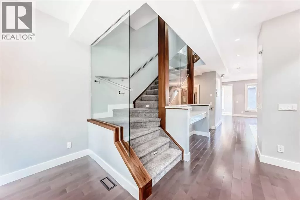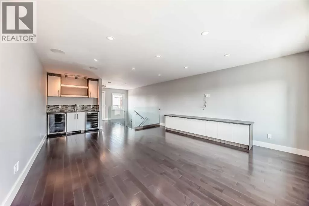 Price per square foot is way below todays replacement cost!!!! Welcome to an extraordinary, fully upgraded, original-owner luxury infill nestled in the heart of Richmondâone of Calgaryâs most vibrant and sought-after inner-city communities. This stunning three-story masterpiece seamlessly blends modern architecture with timeless design, offering over 3,000 square feet of refined living space across four beautifully finished levels.Boasting an enviable Walk Score, youâre just steps away from the cityâs trendiest restaurants, boutique shops, artisan cafés, fitness studios, and everyday amenitiesâmaking this the ultimate lifestyle location for the urban dweller.From the moment you arrive, this home makes a statement. The elevated front patio offers a private and peaceful south-facing outdoor retreat, perfect for morning coffee or evening wine, all while subtly removed from street level for added privacy.Step inside to a warm and contemporary interior featuring an open concept layout, soaring ceilings, wide-plank hardwood flooring, and a stunning glass-railed staircase that lets natural light flow from top to bottom. The gourmet kitchen is a chefâs dreamâoutfitted with high-end appliances, sleek cabinetry, quartz countertops, and a spacious island perfect for entertaining.The crown jewel of this home is the impressive third-floor flex space, complete with its own bar area and sun-soaked rooftop deck. Whether used as a home office, personal gym, theatre room, art studio, or even a guest bedroom, this versatile space is as functional as it is inspiring.Upstairs, the serene primary suite includes a large walk-in closet and a spa-inspired ensuite with heated floors, double vanities, soaker tub, and a walk-in glass shower. Two additional bedrooms, a full bath, and laundry complete the second level.The fully developed basement offers even more flexibility, with a spacious bedroom and full bathroomâideal for visiting guests, in-laws, or live-in help. There's also plenty of space for a rec room or home gym.Every inch of this home has been meticulously curated and maintained by its original owner, showcasing the highest level of care and pride. With central air, built-in sound, and high-end finishes throughout, this property is move-in ready and offers a truly elevated inner-city lifestyle.Donât miss your chance to own one of the finest infills in Richmondâwhere luxury, location, and lifestyle come together. (id:27476)