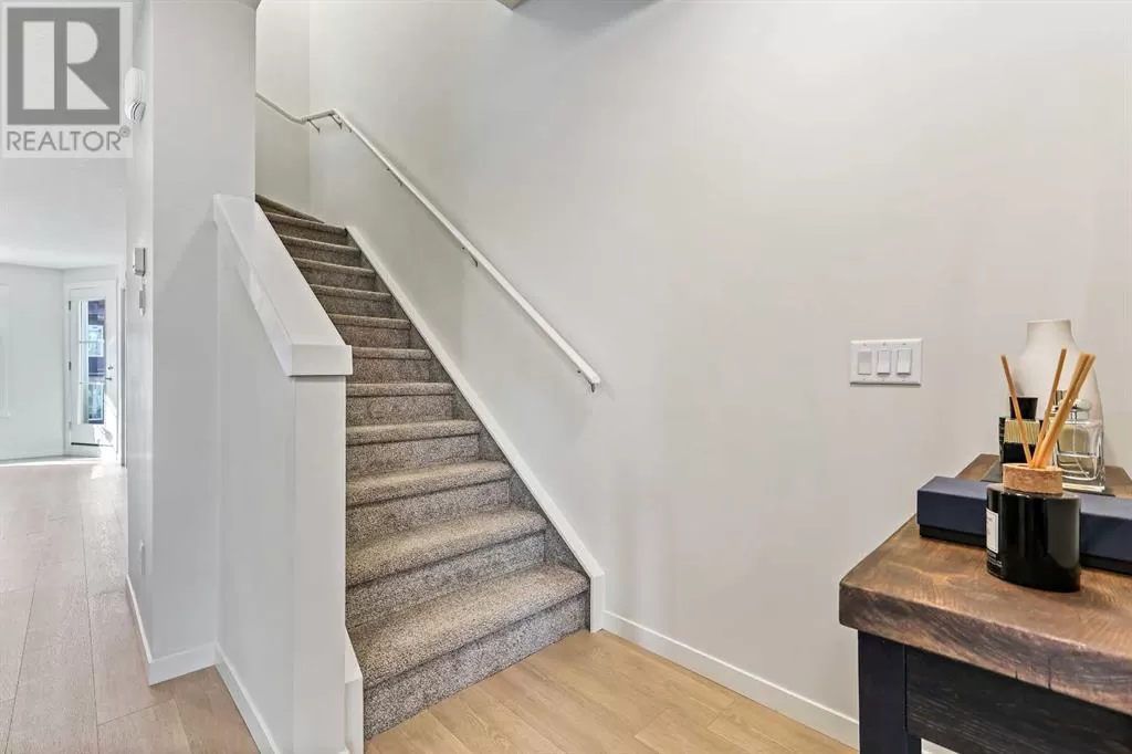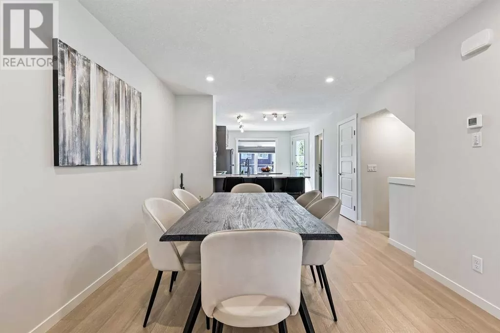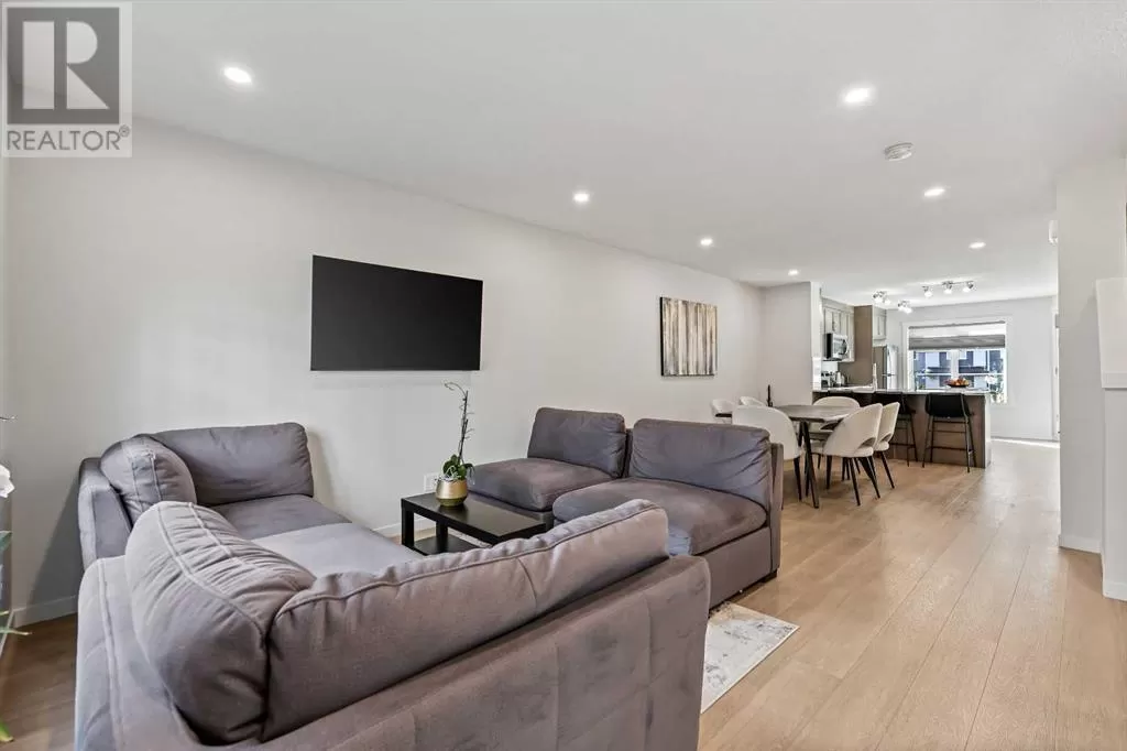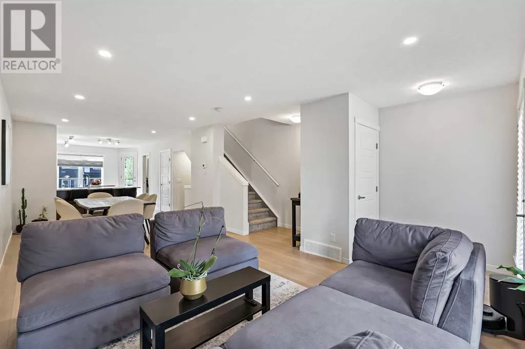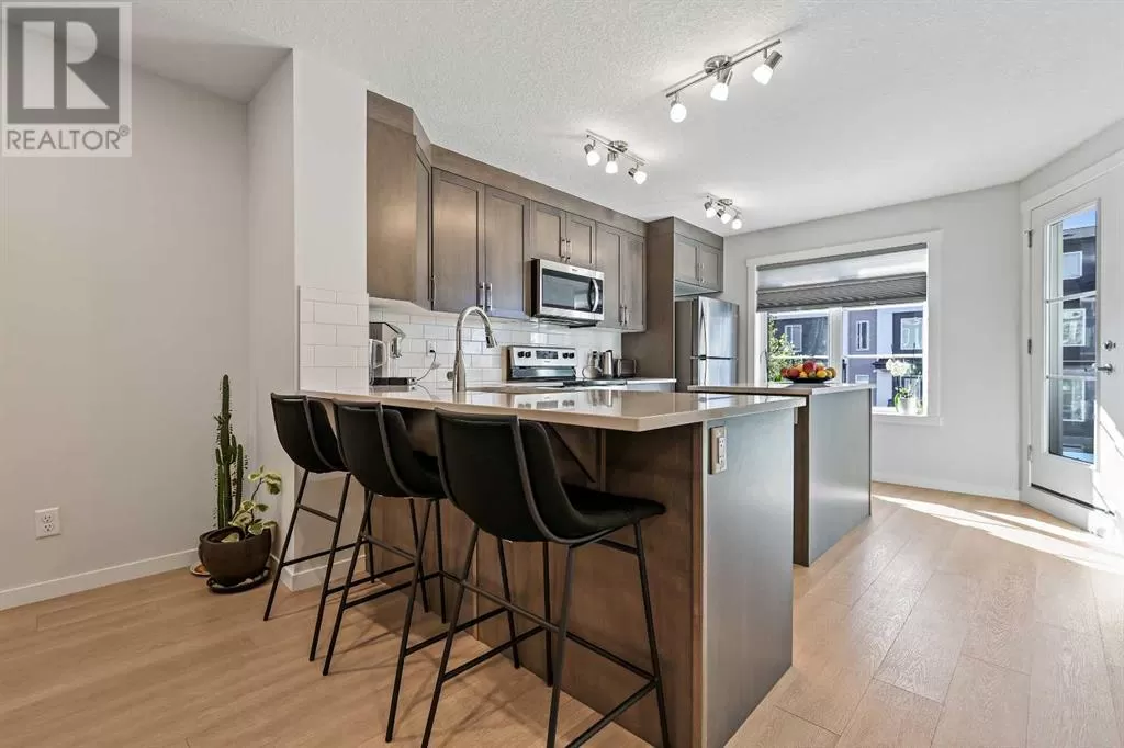 Welcome to your dream townhome in vibrant and walkable Setonâa master-planned urban community where lifestyle and convenience come together. Offering over 1,600 square feet of thoughtfully designed living space, this stunning 3-storey home with a double attached tandem garage is perfectly situated just steps from greenspaces, shops, restaurants, and some of Calgaryâs best amenities. From the moment you enter the complex, youâre greeted by a charming tree-lined pathway, accented by soft lighting and manicured greenspace, leading to your front entrance. A raised cement porch with classic wrought iron railing provides a warm welcome to this beautifully elevated residence. Inside, youâll discover a spacious open-concept main floor that balances both comfort and style. The inviting living room flows effortlessly into the designated dining space, creating a perfect setting for family dinners and entertaining guests. Adjacent to the dining area is a casual breakfast bar for quick meals or cozy conversations over coffee. The chef-inspired kitchen showcases stunning quartz countertops, rich cabinetry, stainless steel appliances, and a functional pantry to keep everything within reach., while a stylish 2-piece powder room is tucked away at the rear, along with a quaint balconyâideal for your morning coffee or evening wind-down. Upstairs, you'll find two generous bedrooms strategically located on opposite ends for privacy and enhanced natural light. The Primary Suite is a peaceful sanctuary featuring a walk-in closet and a private 4-piece ensuite and the second bedroom is equally spacious, bright, and invitingâperfect for family, guests, or a home office. Custom blinds by Blindsgalore add privacy and light control throughout the home. An additional full bathroom and upper laundry offer convenience and functionality. Saving the best for lastâthe top-level Bonus Room delivers a true wow factor. Featuring a custom bar area with built-in wine cooler, this flexible space is perfec t for entertaining, movie nights, or simply relaxing after a long day. From here, step out onto your private rooftop terraceâa rare and remarkable feature that transforms your home into a vacation-like getaway. Whether youâre hosting friends under the stars or enjoying a tranquil moment alone, this rooftop haven is the showstopper you never knew you needed. To complete this home the ground level offers access to your double tandem attached garage, providing secure parking for two vehicles and ample storage space. Located in the heart of Seton, this home is surrounded by everything you need: South Health Campus, Seton Urban District with restaurants, shops, cafés, and a movie theatre. The largest YMCA in North America, new parks, schools, and future LRT access. A community filled with vibrant energy and ever-growing amenities. A park and playground are mere steps from your front door. Donât miss your chance to live in a townhome that offers the space, style, and rooftop luxury youâve been dreaming of! (id:27476)