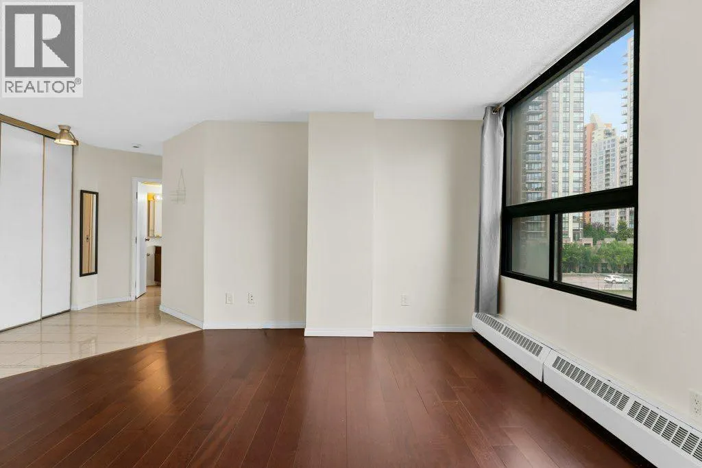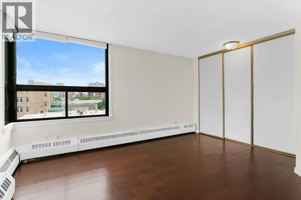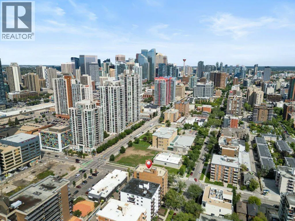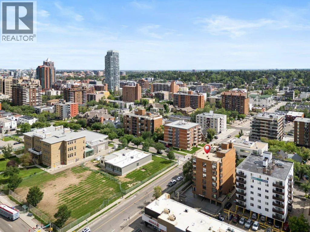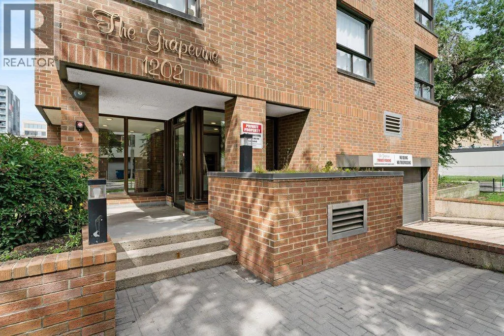 Come view the Quiet one bedroom apartment in reinforced concrete building adjacent park. Good open view of downtown Calgary and school park. Close to downtown (5-10 minutes walking distance), Schools, daycare and Safeway and Coop are all blocks away. Very quiet. Well managed building, Handyman Special but interior with porcelain mosaic tile and Brazilian Cherry Engineered hardwood flooring. Washer/dryer machine in unit. Breakfast bar, Storage room, (id:27476)