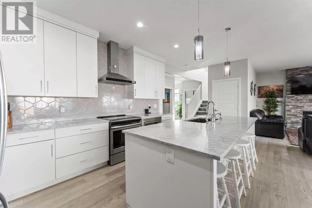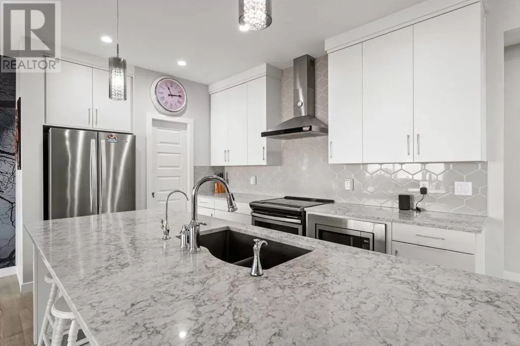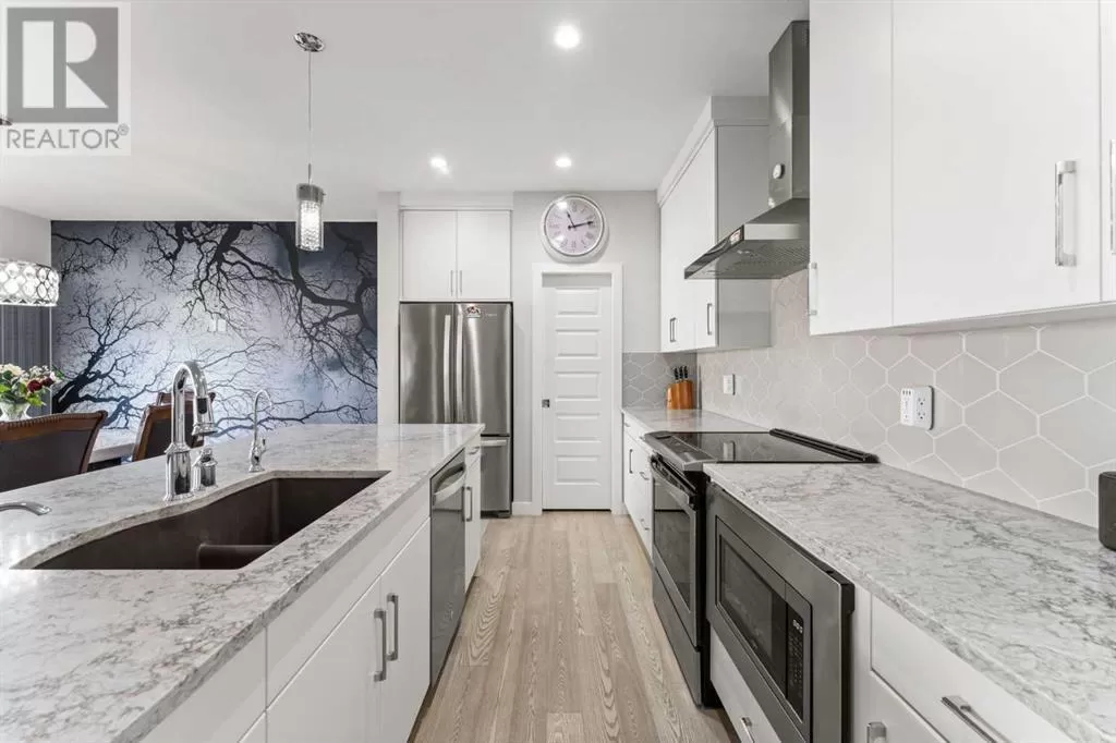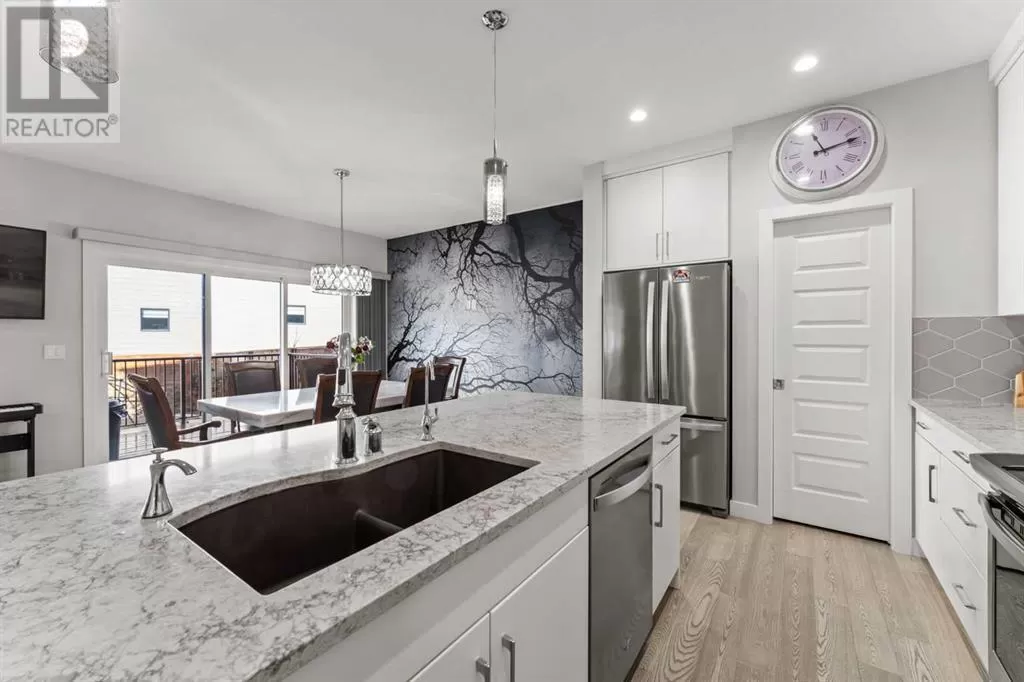Nestled in the picturesque community of Shawnee Slopes, this stunning 2021-built residence offers over 2,500 sq. ft. of above-grade living space, exuding a modern, light, and airy ambiance. The home features approximately $80,000 worth of upgrades with four spacious bedrooms, 2.5 well-appointed baths, and an expansive triple garage enhanced with an extra foot of space on each side. The kitchen living room combo features a literal wall of windows opening to the West facing backyard for loads of natural light to flood in! Speaking of the kitchen - the granite counter tops and ample cabinet space and pantry are the centerpiece of this stunning home. Notable upgrades include triple-glazed aluminum-framed windows ($20k upgrade), larger windows throughout for abundant natural light, and additional wall insulation between bedrooms for noise reduction. The triple car heated garage, equipped with a gas furnace and Nest thermostat, boasts a dedicated 100 Amp circuit suitable for charging two electric vehicles, complemented by an upgraded 200 Amp main panel and 20 Amp outlets in the garage and exterior. Inside, enjoy the comfort of an upgraded furnace with MERV 13 filters (can filter out forest fire smoke), central air conditioning, and Nest thermostats in both zones. The main floor showcases beautiful hardwood flooring, while the upper level features luxury vinyl, all within a pet-free and smoke-free environment. A huge primary bedroom with a stunning ensuite bathroom completes the upper level retreat. Cordless light-filtering honeycomb shades adorn the main floor windows, enhancing privacy and style. The exterior is equally impressive, with a zero-maintenance front yard featuring artificial grass and underground irrigation for plants, a professionally built fence, and one of the largest backyards in Shawnee Slopes, complete with a firepit, gravel walkways, and evergreen trees along the perimeter. Modern CCTV system with 4K cameras. The unfinished basement features large wind ows and 9 foot high ceilings. A Radon mitigation system has already been installed as well. Situated adjacent to Fish Creek Provincial Park, Shawnee Slopes offers residents unparalleled access to nature, with numerous trails for cycling, walking, and running. The community is conveniently located near the Fish Creek-Lacombe C-Train Station, providing swift access to downtown Calgary. Nearby amenities include the Shawnessy Shopping Centre, featuring a variety of retail and dining options, and the Shawnee-Evergreen Community Association, which hosts events and programs fostering a strong sense of community. Experience the perfect blend of modern luxury and natural beauty in this exceptional Shawnee Slopes home. (id:27476)