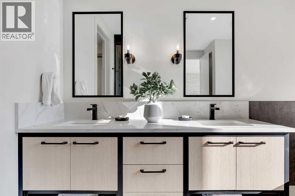 Welcome to NORDIC NOOK III. Inspired by the principles of Scandinavian Architecture , Designed by PHASE ONE DESIGN and built by DOMINIUM RESIDENTIAL. This gem is Nestled in the highly sought-after community of Currie. NORDIC NOOK III Offers not only a beautiful home but also access to a vibrant neighbourhood know for its charm and amenities. Situated 7 minutes to Downtown Calgary, this residence has been meticulously crafted with great passion and professional design, standing as a quintessential monument to fine luxury living.As you approach, you'll be welcomed by an uber contemporary elevation and curb appeal, setting the tone for the elegance that lies within. With 3321 SQ FT ABOVE GRADE and over 4,400 SQ FT of developed living area, this home offers an abundance of space for modern living.The kitchen radiates affluence, featuring a one-of-a-kind design with a WATERFALL island, THROUGH SINK,FISHER & PAYKEL BUILT IN PANEL COVERED FRIDGE & FREEZER, a NATURAL GAS STOVE & POT FILLER, a built-in convection oven and a speed oven/microwave. The contemporary two-tone custom cabinetry is finished with under-cabinet lighting, making it a chefâs dream. The SPACIOUS LIVING ROOM is tastefully finished with built-ins, a cozy fireplace, and a STRIKING LIGHTING FIXTURE that complements the space like jewelry. Enjoy views of the beautiful streetscape from this inviting living area. The stairway is equipped with STAIRWAY LIGHTING ensuring additional safety at night. The DOUBLE CAR GARAGE features a CHARGING POINT for your electric vehicle and is fully finished with paint and EPOXY FLOORING, providing a polished and functional space for your vehicles.This home is roughed in for advanced technologies such as Alexa voice commands, and includes wiring for CAMERAS, FOUR -TWO SPEAKER ZONES, INDOOR-CEILING SPEAKERS with woofers, OUTDOOR SPEAKERS FOR THE DECK area, and myQ garage door openers that allow remote access from your phone, along with a Wi-Fi irrigation system. FUL LY LANDSCAPED and fenced with PREMIUM VINYL FENCE.The elegant ensuite embraces you with the touch of WARM HEATED FLOORS, featuring a large double vanity with custom mirrors, and a distinguished freestanding tub . The upper floor boasts a laundry room, a storage closet, a bathroom, and two generous-sized bedrooms. The breathtaking lower level is the perfect spot for entertaining or relaxation, featuring CUSTOM BUILT-INS, A GRAND WET BAR, and an abundance of natural light. It also includes a large flex room and an additional bedroom. OTHER UPGRADES INCLUDE LEVEL 5 CEILINGS FINISH, A/C, HARDWOOD ON STAIRSSituated in Currie, one of Calgaryâs finest inner-city communities, youâll enjoy access to parks, dog parks, walking/bike trails, and access to over 12 schools accommodating children from pre-school to senior high school. This exceptional home combines elegant design and modern conveniences, making it a must-see for any discerning buyer. Donât miss your chance to make this luxury residence your own! (id:27476)