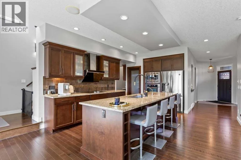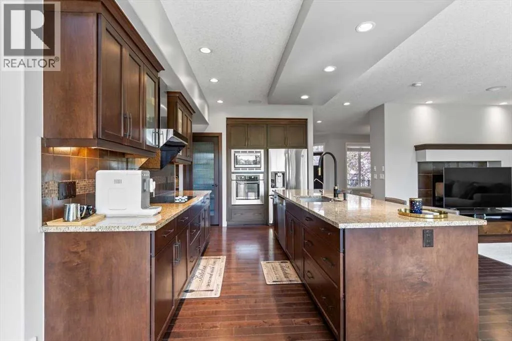Priced to sell! One of a kind home exudes pride of ownership & backs WEST ONTO RAVINE, pristine and manicured back & front yards with stone patio and lush green lawn. Main floor living room has beautiful stone double sided fireplace that peeks into formal family room. Large open kitchen with huge centre island and a large nook/dining area, half bath and functional mud room and desk area perfect for children's homework or weekend computer work. 2nd floor boasts open loft area & laundry room. Master bedroom/ ensuite are luxurious, with a cozy sitting area, double sinks, corner soaker tub, glass glass-enclosed shower & private water closet. Your master retreat overlooks views of the ravine. Two other good-sized bedrooms have walk-in closets & share a 4-piece bath. Fully finished basement with laminate flooring, in-floor heating , corner gas fireplace, 4th bedroom, den and a full 4-piece bathroom and this home has the Raininstant hot water system. Triple pain windows and ceiling speakers further the upgrades. And Also SMART HOME SYSTEM! CALL TODAY FOR A PRIVATE SHOWING (id:27476)