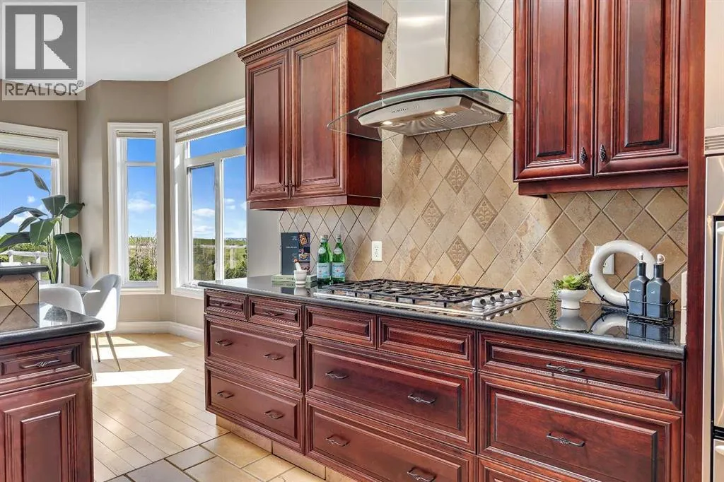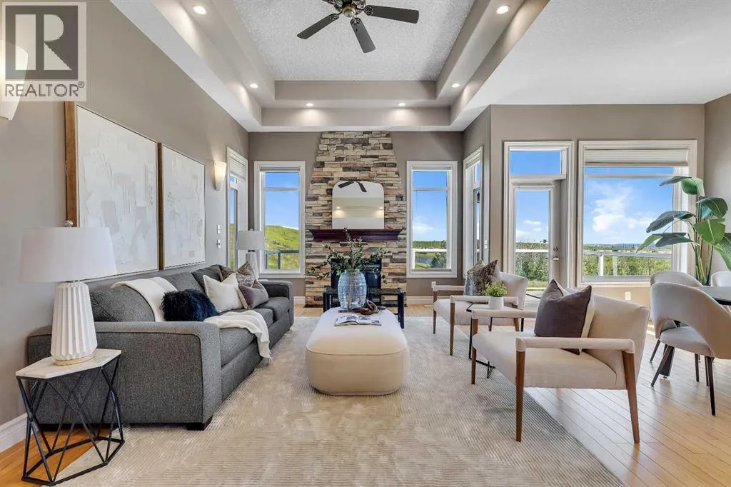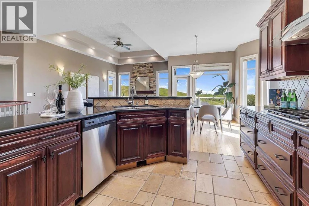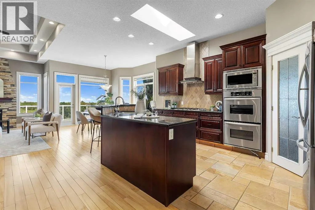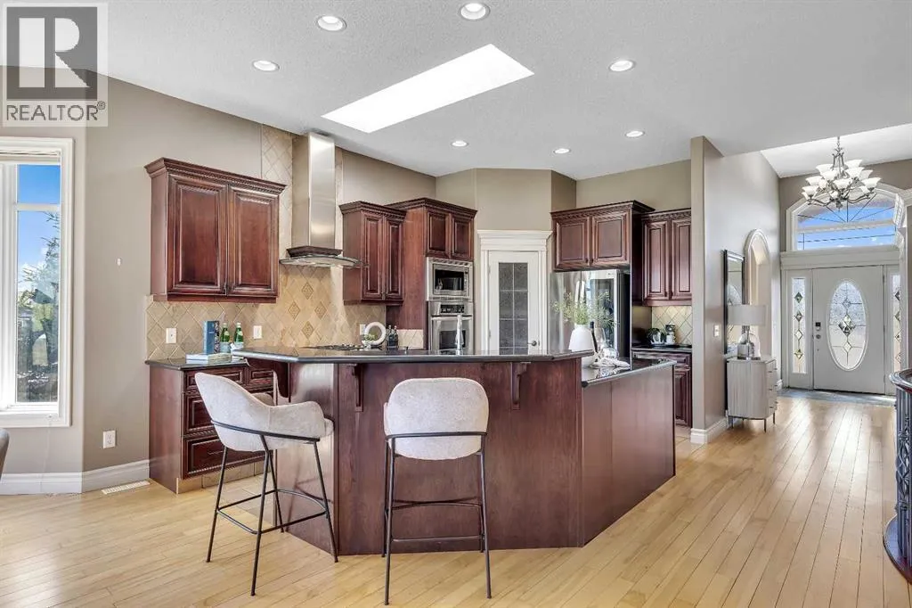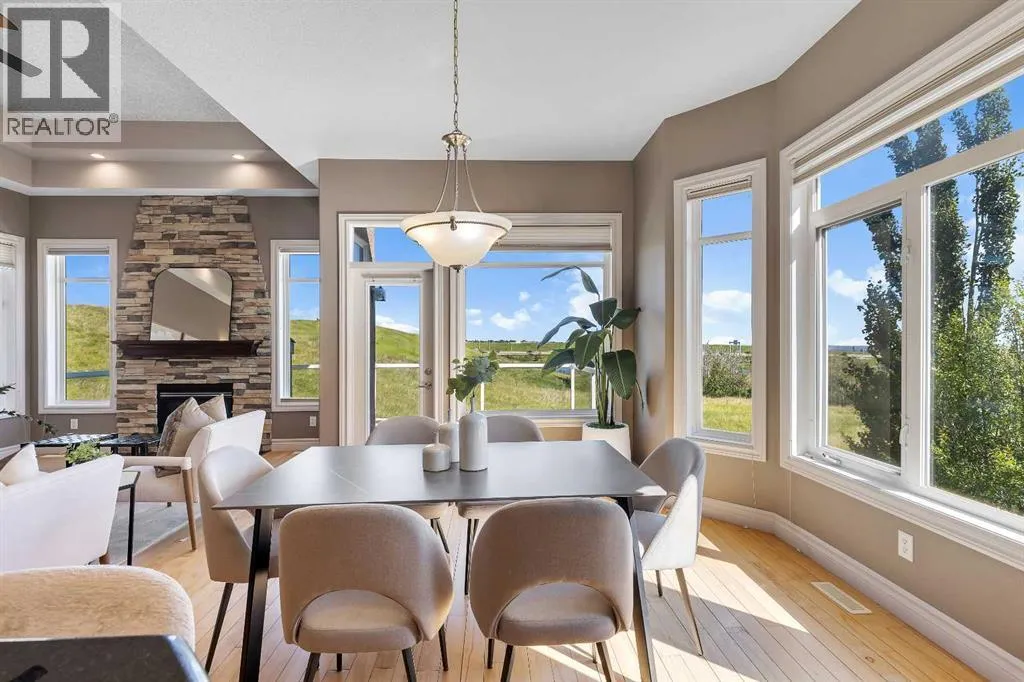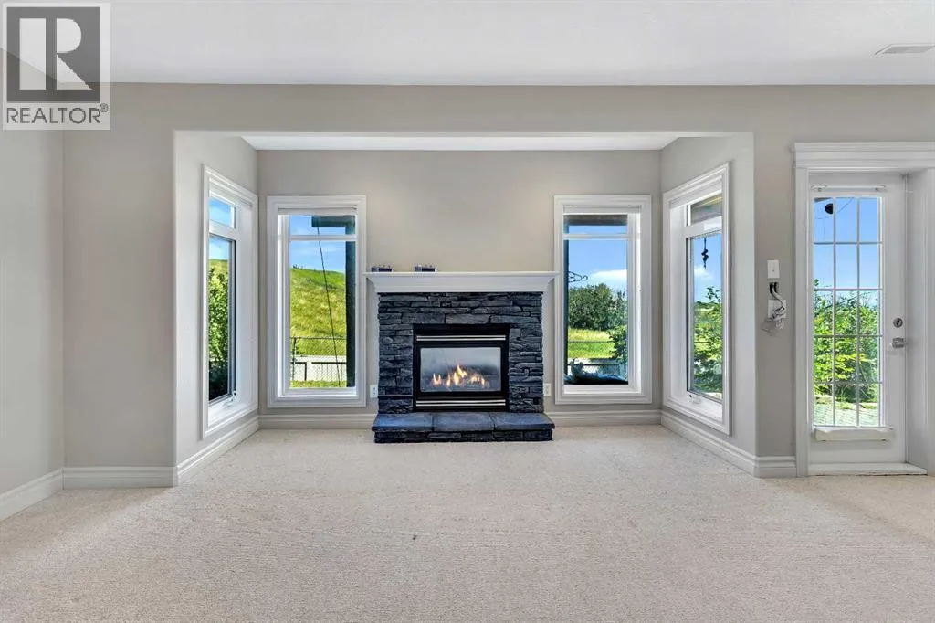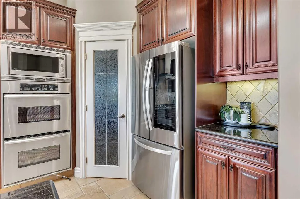 Welcome to this stunning home nestled in a tranquil cul-de-sac, backing onto a lush green space, offering unmatched privacy and serenity. Situated on a spacious lot of over 7,100 sqft, this residence seamlessly combines comfort with elegance, flooded with abundant natural light throughout. The inviting entryway features a beautiful arched front door with decorative stained glass windows, leading into a welcoming space with a transition from a tiled foyer to warm, honey-tone hardwood flooring that enhances the home's natural lighting.The interior boasts a modern open-concept living area centered around a stunning fireplace set against a stylish stone accent wallâideal for cozy gatherings. Decorative recessed lighting in the ceiling and elegant wall sconces along the side walls provide warm ambient illumination, creating a cozy and inviting atmosphere. Large windows throughout flood the space with sunlight and showcase scenic views of the surrounding greenery. The sleek kitchen is a chefâs dream, featuring a gas stove with two ovens, rich, dark wood cabinetry, black granite countertops, and stainless steel appliances, including a side-by-side refrigeratorâperfect for cooking and entertaining.Designed for year-round comfort, the home features in-floor heating. The walkout basement offers two spacious bedrooms, each bright and large with ample closet space, and large windows that flood the space with natural light, along with a decorative fireplace that adds warmth and charm. The main floor features a generous master bedroom designed as a peaceful retreat. An elegant curved staircase with a polished wooden handrail and decorative metal balusters adds a sophisticated touch and connects the lower level to the upper.Additional large windows throughout the home fill the space with natural sunlight, creating a lively, cheerful ambiance. This property offers an ideal blend of spaciousness, natural beauty, and stylish finishesâmaking it perfect for families, downsizers, or investors seeking a move-in-ready home in a peaceful, green setting. (id:27476)