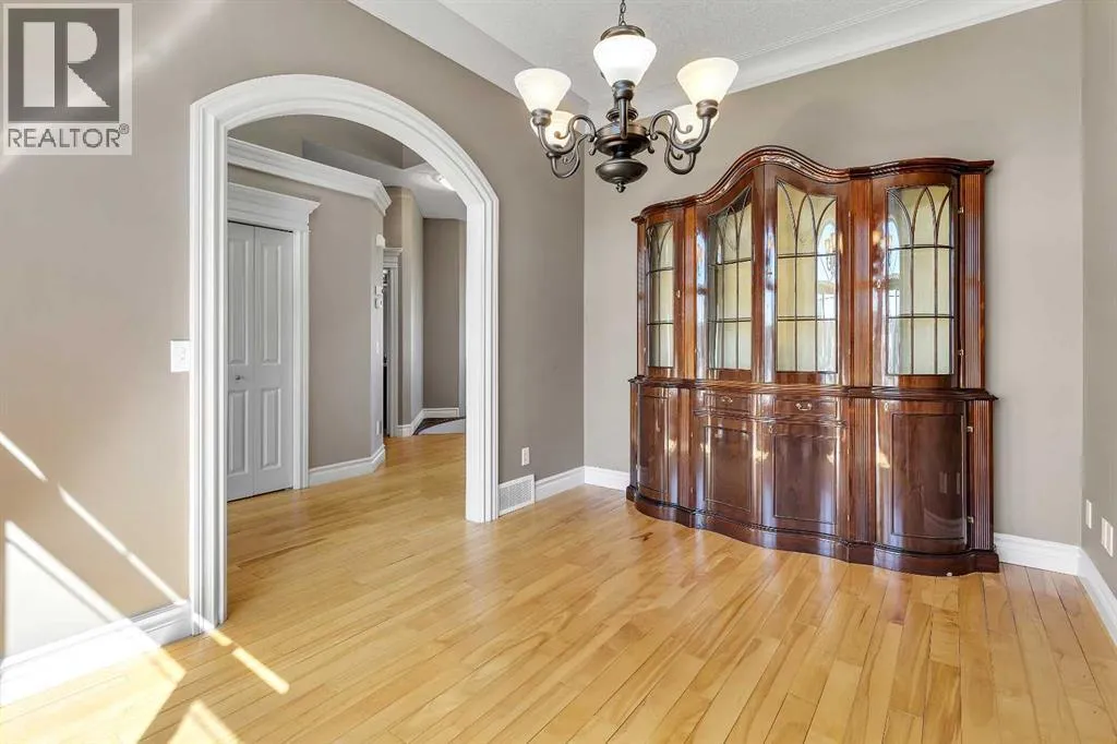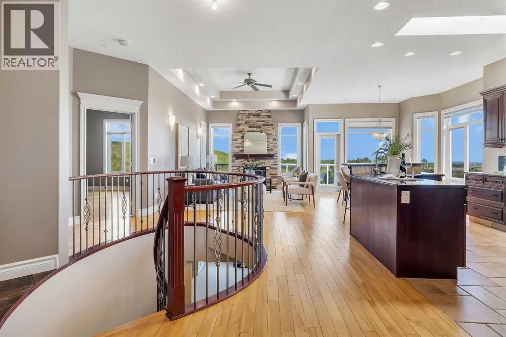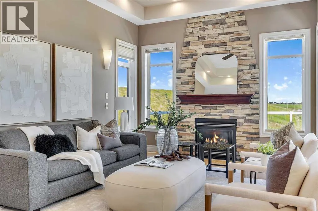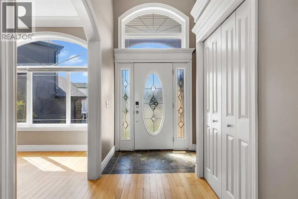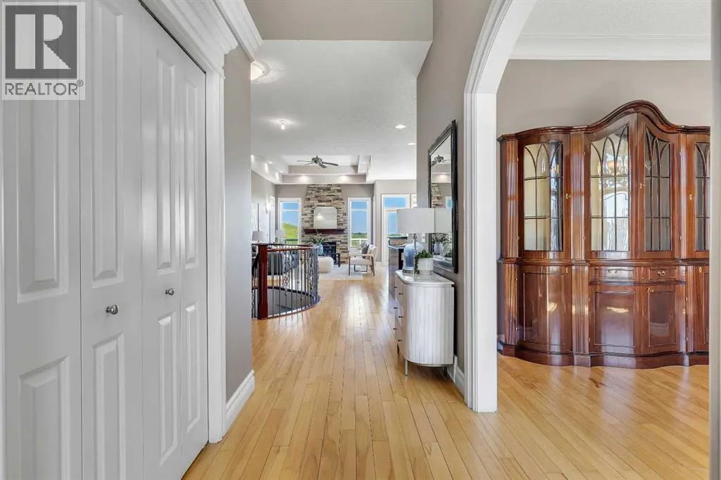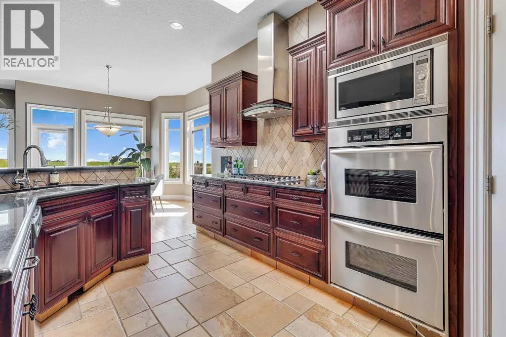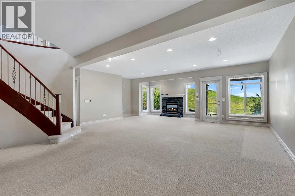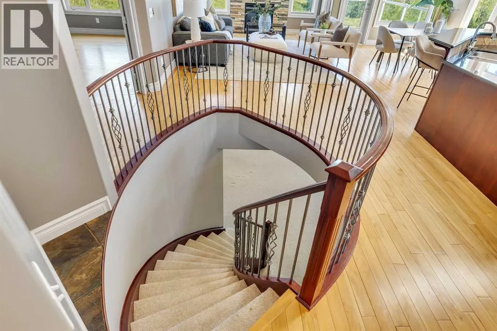 Welcome to this stunning home nestled in a tranquil cul-de-sac, backing onto a lush green space, offering unmatched privacy and serenity. Situated on a spacious lot of over 7,100 sqft, this residence seamlessly combines comfort with elegance, flooded with abundant natural light throughout. The inviting entryway features a beautiful arched front door with decorative stained glass windows, leading into a welcoming space with a transition from a tiled foyer to warm, honey-tone hardwood flooring that enhances the home's natural lighting.The interior boasts a modern open-concept living area centered around a stunning fireplace set against a stylish stone accent wallâideal for cozy gatherings. Decorative recessed lighting in the ceiling and elegant wall sconces along the side walls provide warm ambient illumination, creating a cozy and inviting atmosphere. Large windows throughout flood the space with sunlight and showcase scenic views of the surrounding greenery. The sleek kitchen is a chefâs dream, featuring a gas stove with two ovens, rich, dark wood cabinetry, black granite countertops, and stainless steel appliances, including a side-by-side refrigeratorâperfect for cooking and entertaining.Designed for year-round comfort, the home features in-floor heating. The walkout basement offers two spacious bedrooms, each bright and large with ample closet space, and large windows that flood the space with natural light, along with a decorative fireplace that adds warmth and charm. The main floor features a generous master bedroom designed as a peaceful retreat. An elegant curved staircase with a polished wooden handrail and decorative metal balusters adds a sophisticated touch and connects the lower level to the upper.Additional large windows throughout the home fill the space with natural sunlight, creating a lively, cheerful ambiance. This property offers an ideal blend of spaciousness, natural beauty, and stylish finishesâmaking it perfect for families, downsizers, or investors seeking a move-in-ready home in a peaceful, green setting. (id:27476)