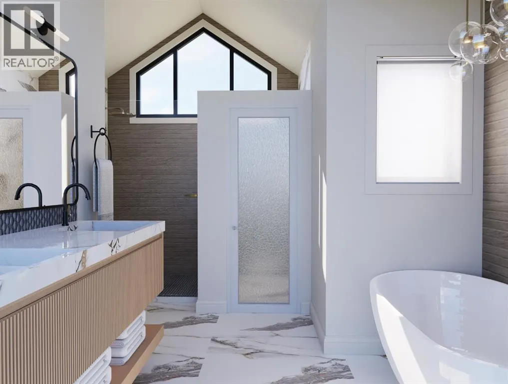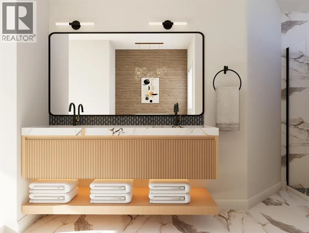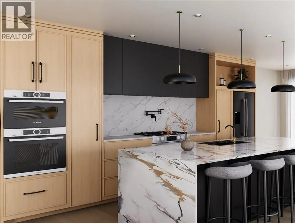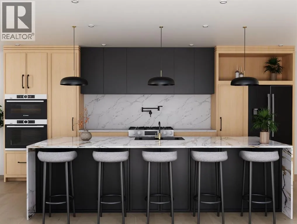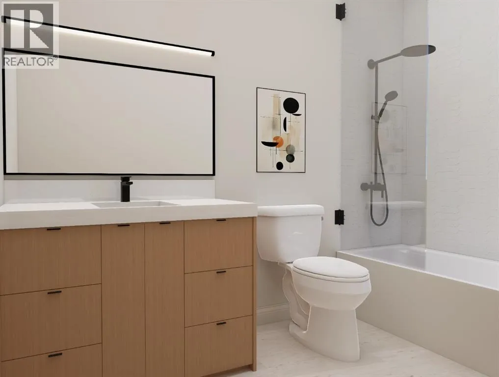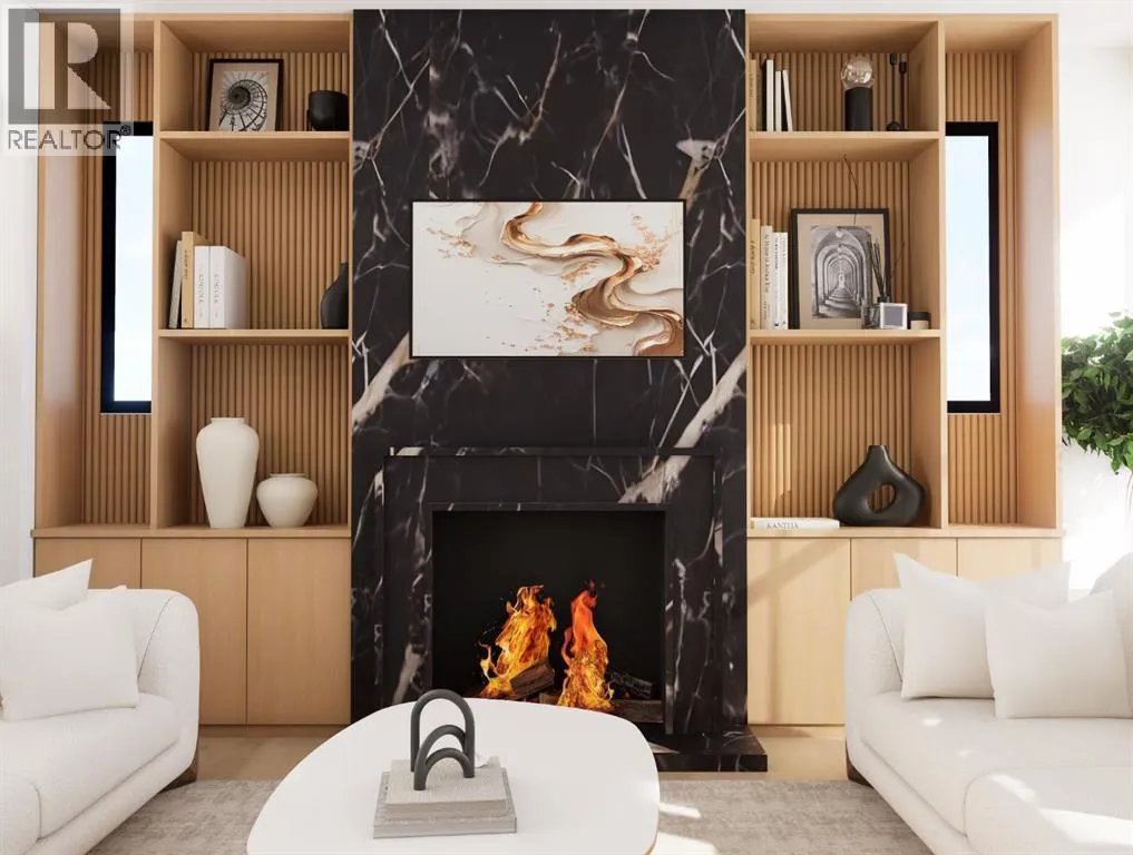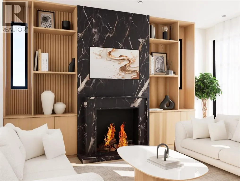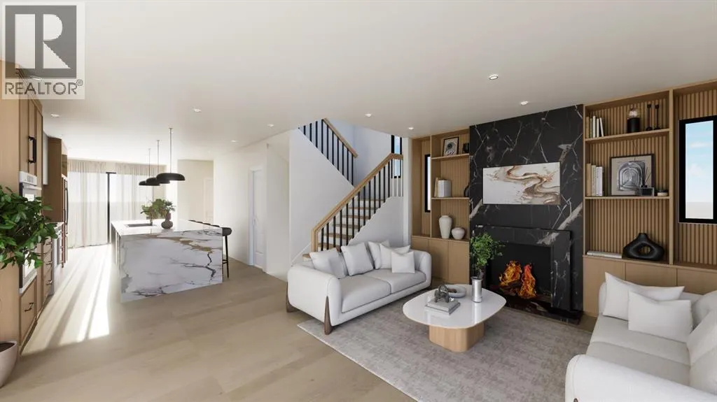 BIRCH HILL CUSTOM HOMES PRESENTS | MODERN LUXURY DUPLEX IN KILLARNEY | SPRING 2026 POSSESSION | 2,800+ SQFT OF DEVELOPED SPACE | 4 BEDROOMS | 3.5 BATHROOMS | EXTRA-DEEP 125â LOT WITH EXPANSIVE WEST-FACING BACKYARD | Brand New Designer Duplex in Killarney â Modern Elegance Meets Timeless Craftsmanship. Experience the pinnacle of inner-city living with this exquisite, newly constructed side-by-side duplex in the highly sought-after community of Killarney. Spanning over 2,800 sq ft of impeccably designed space, this residence offers 4 spacious bedrooms and 3.5 bathrooms, blending architectural sophistication with a warm, inviting palette inspired by modern luxury design. The exterior makes an unforgettable first impression with its striking board-and-batten Hardie Plank siding in Timber Bark, accented by Castlewood brick and sleek black trim. Designer lighting and rich textural details complete the curb appeal, setting the stage for the elegance that awaits inside. Step into a bright, open-concept main floor where natural light dances across wide-plank Nouveau Prelude Snow hardwood floors. A stunning floor-to-ceiling fireplace with custom millwork anchors the living space, complemented by clean architectural lines and contemporary lighting. The chefâs kitchen is a showpiece, featuring custom cabinetry in soft, neutral tones, a waterfall quartz island adorned with champagne bronze fixtures, designer pendants, and a full-height backsplash that elevates the entire room. Upstairs, retreat to a private primary suite that feels like a boutique hotel, complete with a wall-mounted fireplace, custom walk-in closet, and a spa-inspired ensuite. This serene escape showcases oversized porcelain tile, a freestanding soaker tub illuminated by a chandelier, dual quartz-topped vanities, and a frameless glass shower with luxury fixtures. Secondary bedrooms offer abundant space and style, paired with a beautifully appointed main bathroom. The fully finished basement continues the refined design with a spacious family lounge, a sophisticated wet bar with quartz counters and designer backsplash, an additional bedroom, and a full bathroom perfect for hosting guests or creating a private home office. Every detail has been carefully curated, from the powder roomâs console sink with fluted paneling and terrazzo tile flooring to the designer laundry room with custom cabinetry and chic patterned tile. A landscaped west backyard and detached double garage complete the home, offering both beauty and practicality. Located minutes from boutique shops, top-rated schools, lush parks, and Calgaryâs downtown core, this home perfectly balances high-end finishes with everyday functionality. Indulge in the artistry of modern living. This brand-new luxury duplex in Killarney is move-in ready and designed to exceed expectations. (id:27476)