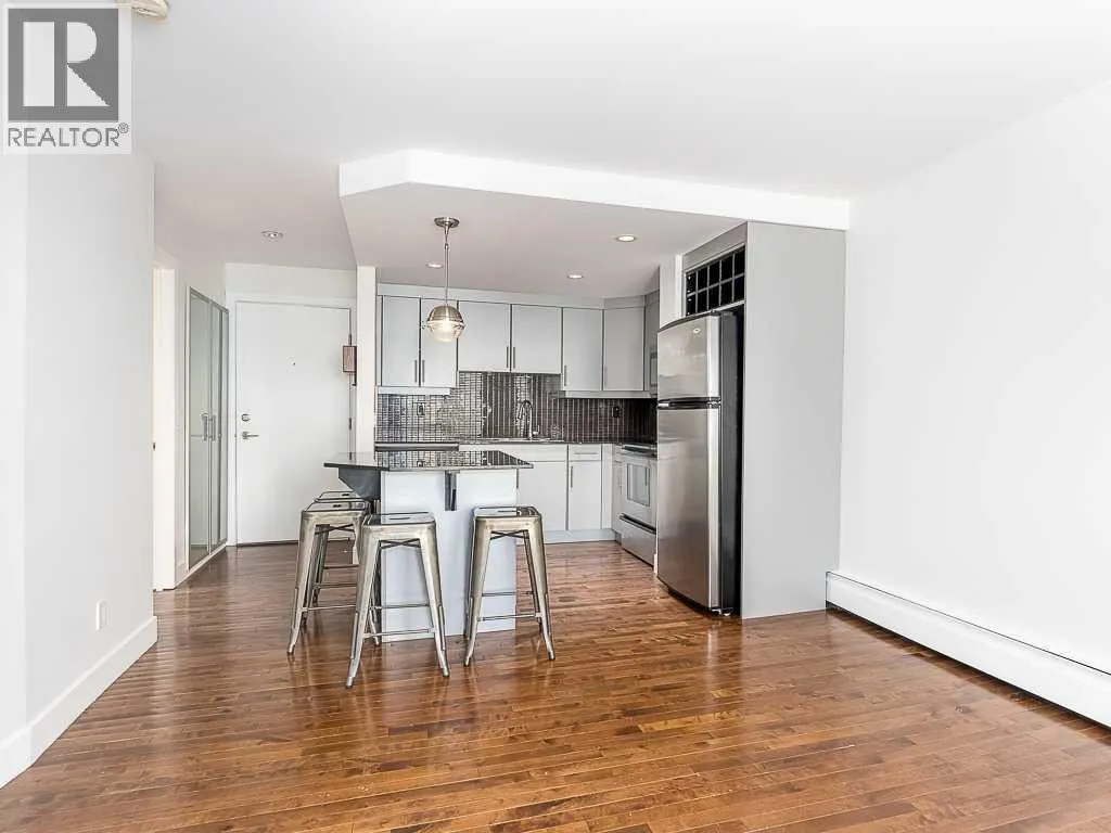 Welcome to the vibrant and walkable inner city community of Crescent Heights. This well-appointed one-bedroom condo offers an exceptional opportunity for affordable inner-city living without compromising on style or location. Nestled on a quiet street just moments from the downtown core, this home is ideal for professionals, first-time buyers, or investors. Step inside to discover a bright and open-concept layout featuring rich hardwood flooring throughout the main living space and new carpet in the bedroom for added comfort. The spacious kitchen is designed for both functionality and style, boasting stainless steel appliances, a modern glass tile backsplash, ample cabinetry, and plenty of counter space, perfect for cooking and entertaining. The living area is warm and welcoming, with room to relax or host friends, and patio doors leading to a balcony let in plenty of natural light. The bedroom is generously sized with good closet space, and the bathroom is clean and modern. Additional features include in-suite storage and in-suite laundry. Enjoy the unbeatable location, just steps from the shops, cafes, and restaurants of Bridgeland, the Bow River pathways, public transit, and downtown Calgary. Whether you are looking to live in or rent out, this is a fantastic opportunity to own in one of Calgaryâs most sought after communities. (id:27476)