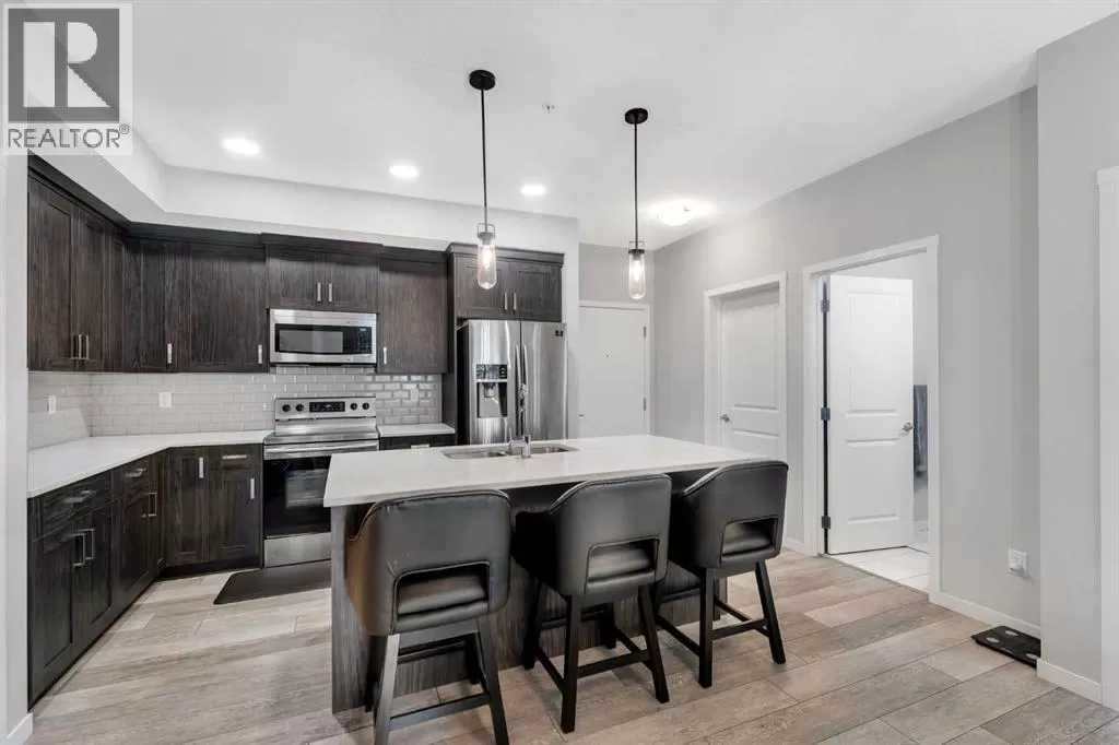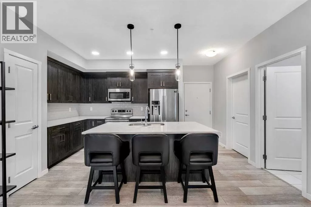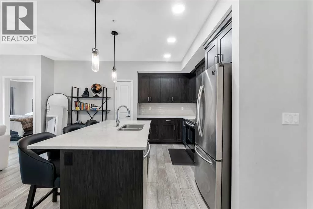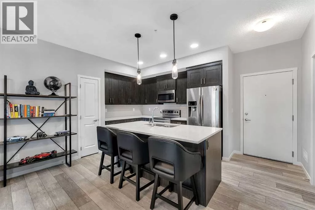 This beautifully designed 2-bedroom, 2-bathroom condo offers upscale living in one of Calgaryâs most sought-after and established communities. Built in 2019, this modern unit features high-end finishes throughout, including quartz countertops, ceiling-height kitchen cabinetry, sleek stainless steel appliances, designer tile flooring, and an elegant tray ceiling that adds architectural charm and sophistication. Nestled in Harvest Hills, youâll love the communityâs blend of tranquility and accessibility. Enjoy walking paths, green spaces, and nearby ponds, all while being just minutes away from schools, shopping, restaurants, recreational facilities, public transit, and major roadways including Deerfoot and Stoney Trail. Calgary International Airport is also just a short drive away.Whether youâre a first-time buyer, downsizing, or investor, this exceptional condo checks all the boxes for style, comfort, and location. Book your showing today and experience upscale living in a vibrant community! (id:27476)