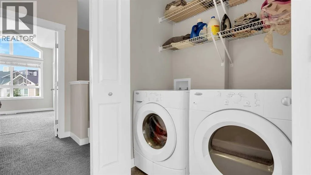 Welcome to Your New Home in Skyview Ranch â Where Comfort Meets Convenience. Nestled in the family-friendly community of Skyview Ranch, this upgraded corner unit isnât just a house; itâs a lifestyle choice! Think of it as the Swiss Army knife of living spacesâversatile, stylish, and sure to impress your in-laws. Step inside to a tastefully decorated open-concept layout on the second floor, filled with natural light and laminate flooring that keeps your family game nights from turning into slip-and-slide competitions. Cozy up to the natural gas fireplace, surrounded by built-in shelving for your collection of questionable figurines. The kitchen is a culinary dream! With stainless steel appliances, a microwave hood fan, and an oversized breakfast bar, youâll be whipping up gourmet meals that even Gordon Ramsay would admire. And for the grill masters, the large south-facing deck, overlooking the playground, is your new BBQ paradise with a natural gas hookup. On the third floor, the master bedroom is a serene sanctuary with a 5-piece ensuite and his and her closets (because sharing isnât always caring). Plus, thereâs a convenient laundry room to avoid those dreaded laundry-hauling trips. With a second bedroom, an office space, and a 2-piece bathroom, this unit truly has it all! Skyview Ranch Gardens is close to major highways and within walking distance to transit, cafes, restaurants, parks, schools, and shopping. Why wait? Embrace the chance to call this charming corner unit your home, where comfort meets convenience, and laughter is always welcome! (id:27476)