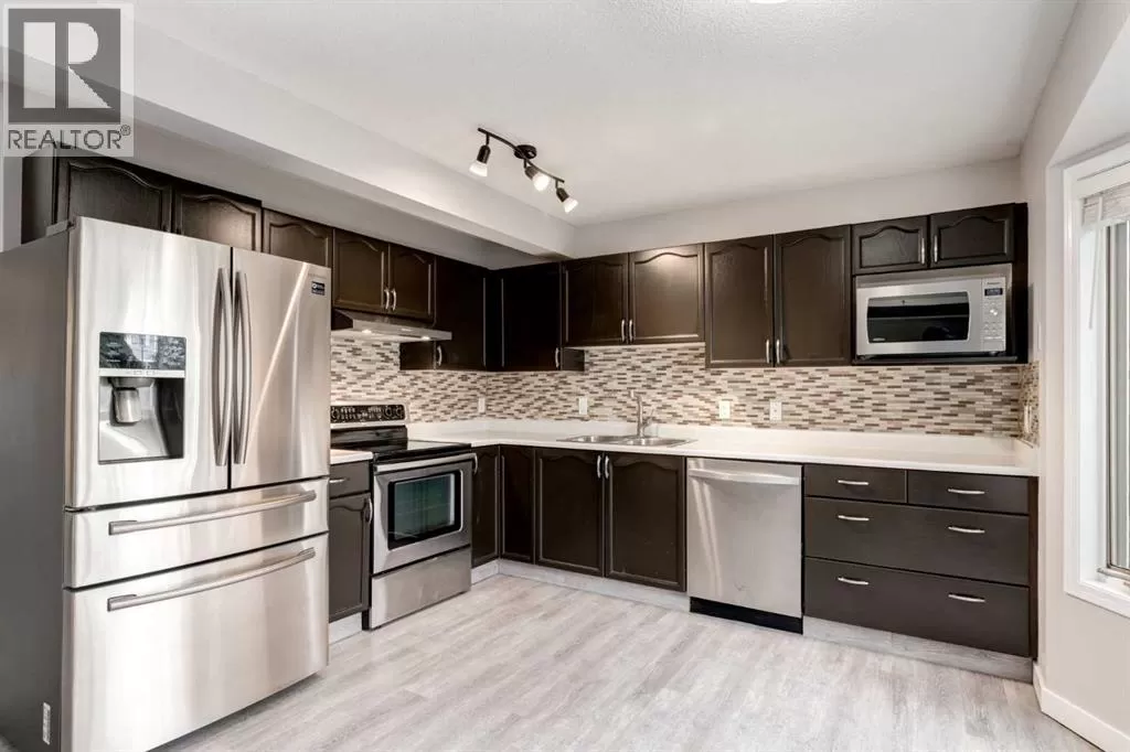 Charming and lovingly cared for, this family friendly townhouse is situated in a well-managed complex in the sought-after community of Cedarbrae. Updated with modern flooring and neutral tones, you are welcomed into a spacious living room with a cozy wood-burning fireplace leading to the well equipped eat-in kitchen ample cabinetry, mosaic tile backsplash, stainless steel appliances and access to the SOUTH facing deck surrounded by mature trees for privacy. A powder room and conveniently located laundry completes the main level. Upstairs, you'll find a generously sized primary bedroom featuring his-and-hers closets and an abundance of natural light. The 2nd beroom, den/bonus room and a 4-piece bathroom are also on this level. The basement offers future development for more living space with room for a family room or 3rd bedroom as well as a bathroom. The assigned parking stall is ideally located right in front of the unit entrance. Additional parking stalls can be rented on a monthly basis. Don't overlook the visitor parking and quick access to the ring road, as well as close proximity to parks, schools, shopping, public transit and Southland Leisure Centre. Fantastic opportunity...don't miss out! (id:27476)