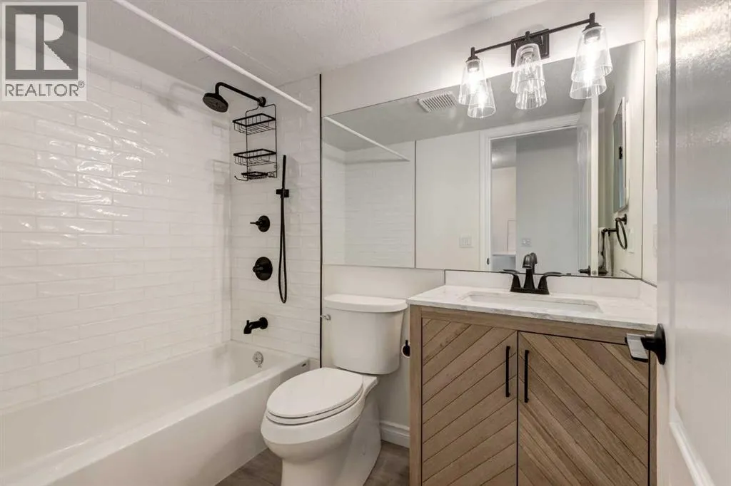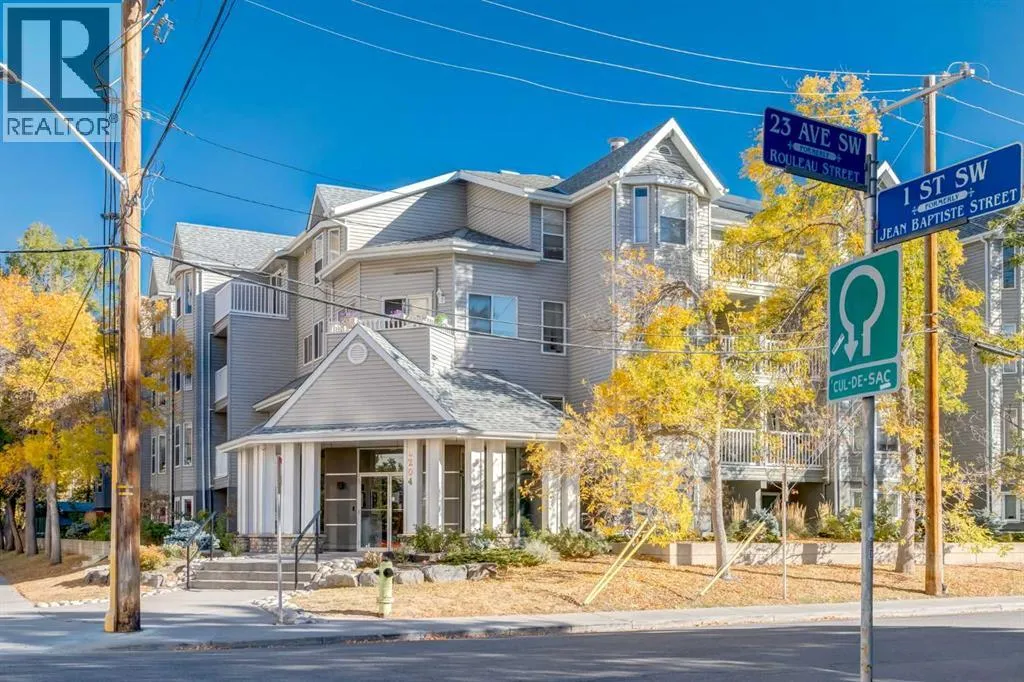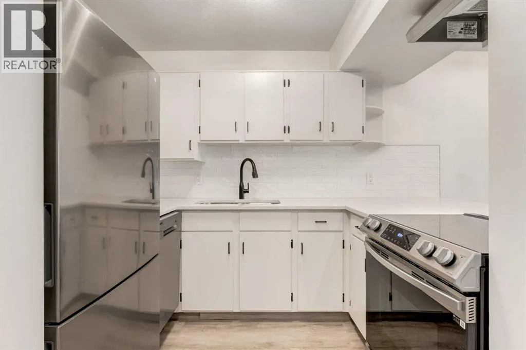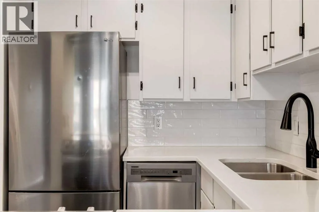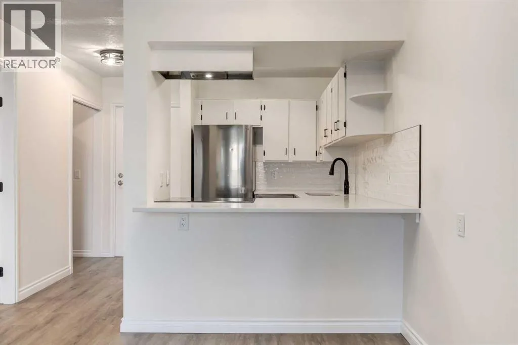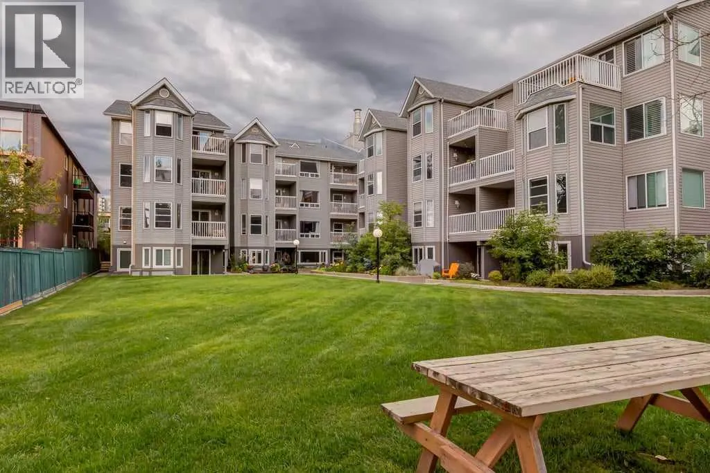 Live your best inner-city life in this fully renovated, move-in-ready 2-bedroom condo, perfectly perched on the Bow River in the heart of Missionâone of Calgaryâs most walkable and vibrant neighbourhoods.Set on the second floor with serene views of the courtyard and river from every window, this 613 sq ft home has been thoughtfully updated from top to bottom. The popcorn ceilings have been flattened, brand new flooring runs throughout, and the entire space is freshly painted in crisp white. The kitchen has been refreshed with a new counter, painted cabinetry, stylish new backsplash, and a full suite of brand-new appliancesâincluding washer, dryer, fridge, electric stove, dishwasher, and range hood.The open-concept living area features a breakfast bar and opens to a spacious balconyâideal for your morning coffee or unwinding with a view. Updated lighting inside and out (including the balcony), plus refinished railings, elevate the space even further.The primary bedroom offers generous closet space with sleek new mirrored sliding doors, while the second bedroom or den includes a charming refinished window seat and tranquil river views. The fully renovated 4-piece bath features new tile, a new vanity, and a brand new tub.Extras include in-suite laundry, added storage, a heated underground parking stall, bike storage, and even a car wash bay. The building is professionally managed with reasonable condo fees.Nothing left to do but move in! (id:27476)