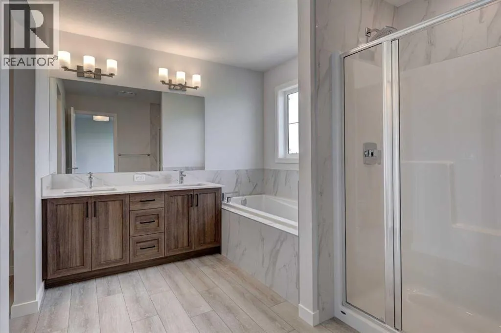 Uncover the charm of Silver Spruce; nestled in the sought-after community of Silverado w/easy access to major routes, shopping, schools & amenities. Welcome to the COLLINGWOOD â a BRAND-NEW home built by Excel homes. This amazing family home has it all â itâs loaded with upgrades â SEPARATE ENTRANCE TO FULLY DEVELOPED, TWO BEDROOM LEGAL BASEMENT SUITE!!! This home offers over 2200 sf & is delivered in an open plan, designed for families & entertainment. Main floor boasts a spacious entry, ½ bath & front flex room. The impressive kitchen is open to the great room & dining nook. Youâll notice the back of the house is almost entirely windows, flooding this home w/natural daylight. Exit to your backyard thru the oversized patio doors, to your âalready builtâ deck! Your Impressive kitchen features loads of cabinets & drawers, SS appliances incl chimney fan & BI microwave. Youâll love the large island & huge walk-in pantry! The family room & dining area are connected & offer huge family / entertaining potential. 9â ceilings & gorgeous luxury vinyl plank flooring make this space airy & bright. Upstairs youâll find FOUR spacious bedrooms! The primary suite is separated from the 3 others by a huge bonus room that offers vaulted ceilings & pot lighting. The primary suite also features a spa like ensuite & walk in closet. Your laundry room & family bathroom complete this level. THE BASEMENT is fully developed & has a PRIVATE / SEPARATE side entry that leads to your 2-bedroom LEGAL suite, perfect for rental income, extended family or a live-in nanny! This level is built to upstairs standards & featuring TWO BEDROOMS, a FULL KITCHEN (w/SS appliances), FAMILY ROOM, laundry & 4 PCE BATH. All utilities are separate from the main floor â 2 furnaces & hot water tanks & laundry. This is a must-see home w/the perfect location. (id:27476)