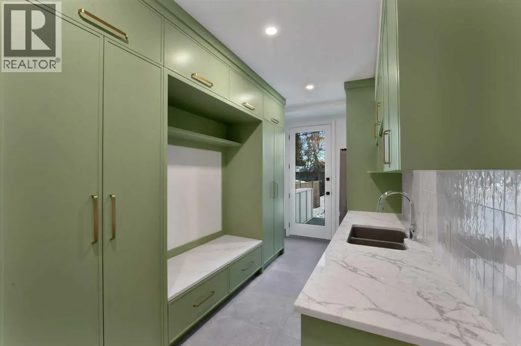 Nestled on a quiet cul-de-sac, this stunning home in the highly desirable community of Rutland Park offers your family the luxury of a custom home without the wait. You'll immediately feel at home, as you enter from your heated double attached garage with an additional tandem spot for a 3rd vehicle, but perfect for trucks. Step inside to discover a thoughtfully designed main floor featuring an office, spacious living room, and a convenient mudroom/pantry. The gourmet custom kitchen, equipped with Miele and Dacor appliances, boasts three ovens and a six-burner range, making it ideal for hosting large family gatherings. The dining room, with its impressive 19-foot ceilings and double sided fireplace, adds a touch of grandeur to every meal. Ascend the uniquely designed staircase to the second floor where you will be greeted by an open, bright and spacious bonus room. The bonus room is complimented with 4 generously sized bedrooms upstairs. The expansive primary suite spans the full width of the home and includes a lavish bedroom, a six-piece ensuite with a steam shower, and a walk-through closet with direct access to the spacious and custom laundry room. Two of the secondary bedrooms share a Jack-and-Jill bathroom, and the 3rd has a private ensuite, and each is equipped with walk-in closets. Bedrooms are large enough to support a king sized bed. The basement is an entertainer's dream, featuring a spacious open area with a full bar and peninsula island, a fifth bedroom, a three-piece bathroom, and an expansive theater room perfect for movie nights. There's also an area for a gym. The fully landscaped exterior showcases a large, private south-facing backyard with a covered deck, perfect for outdoor gatherings. This home is crafted with premium materials and is equipped with modern amenities such as an Alexa-powered smart home system, wired speakers, in-floor heating in the basement and attached garage, and triple-glazed Lux Windows. Don't miss the opportunity to make thi s exquisite property your forever home. This home is registered with the New Home Warranty program. (id:27476)