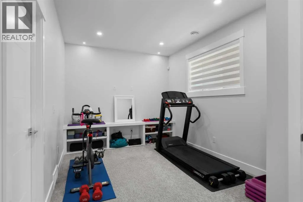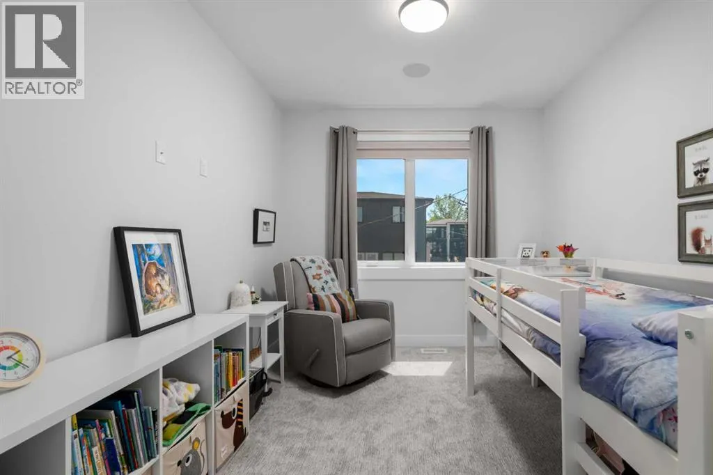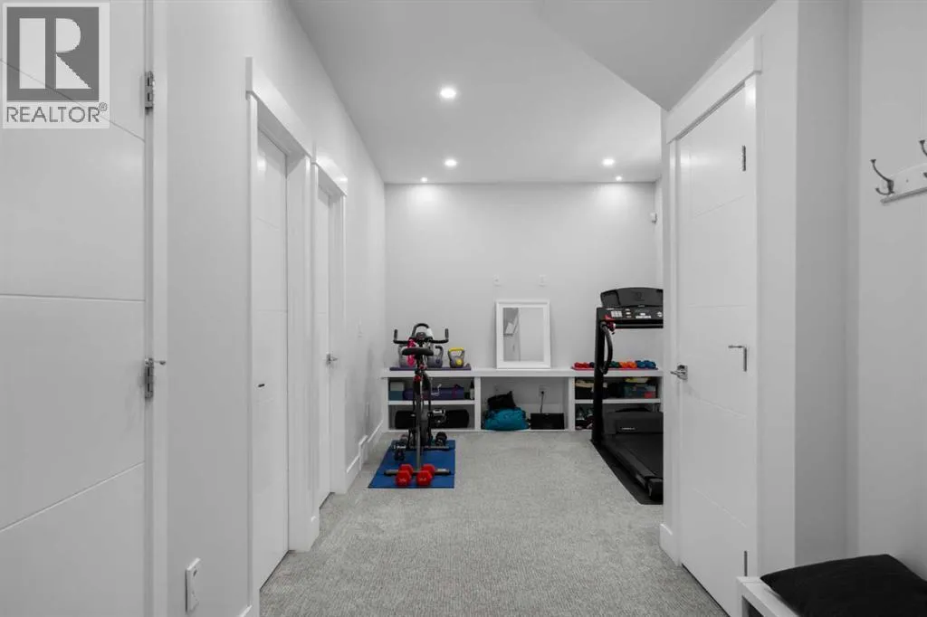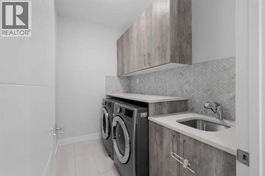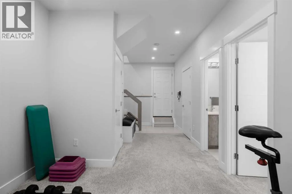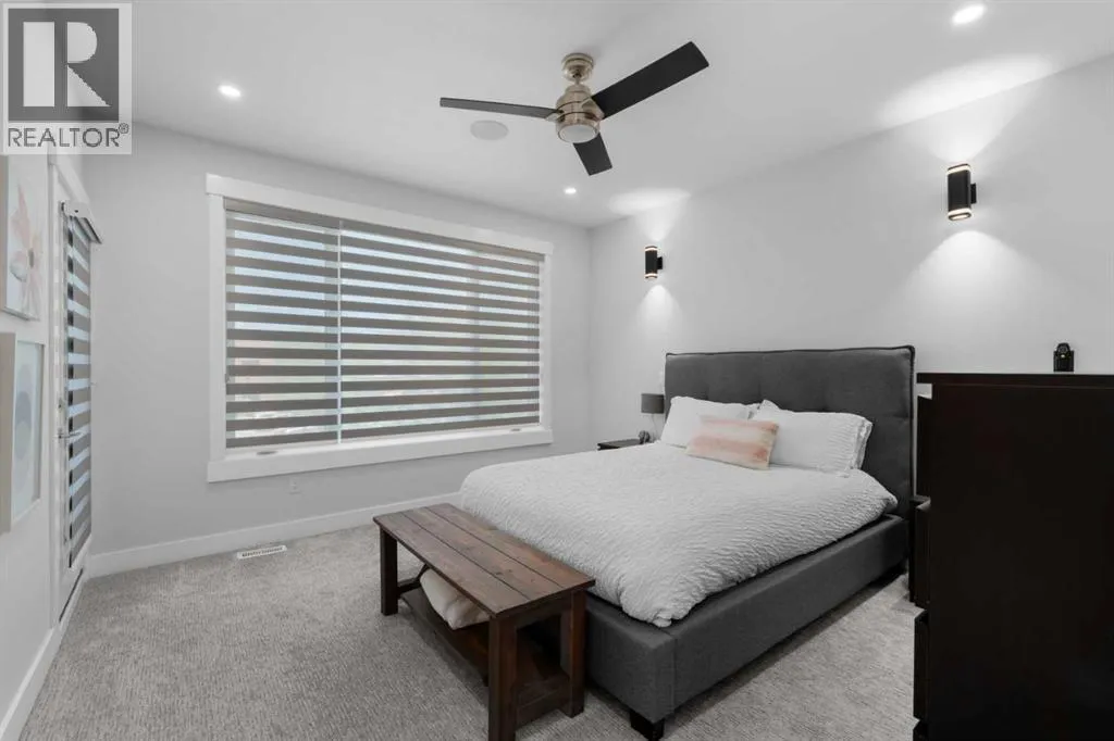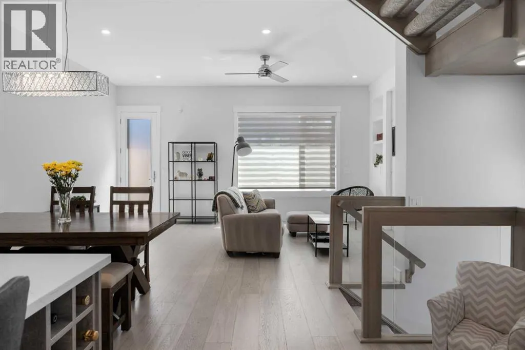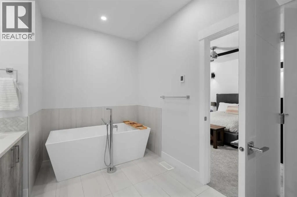 Discover modern living at its finest in this stunning two-storey semi-detached home, offering a rare under drive double attached garage and a stylish front veranda. Designed with exceptional attention to detail, this home boasts 4 bedrooms, 3.5 bathrooms, and air conditioning, ensuring year-round comfort. With heated floors in the primary ensuite, basement and even the garage giving you extra warmth. Step inside to a bright, open layout adorned with hardwood and tile flooring on the main level. The front office with French doors provides the perfect work-from-home space. The gourmet kitchen is a chefâs dream, featuring a large center island with quartz countertops, full-height high-gloss cabinets, a built-in stainless steel appliance package including a gas cooktop stove and chimney hood fan. Entertain effortlessly in the central dining room and rear living room, complete with a center gas fireplace with tile surround and built-ins, with seamless access to the backyard.Upstairs, retreat to the luxurious primary suite, boasting a private balcony with captivating city views. The spa-like 5-piece ensuite includes a dual vanity, a freestanding tub, and a custom glass shower, while the massive walk-in closet offers custom organizers and drawers. Two additional bedrooms, a 4-piece bathroom, and a convenient laundry room with a sink complete the upper level.The fully developed basement extends your living space with a cozy rec room, an additional bedroom, and a 4-piece bathroomâperfect for guests or family.The backyard is a true oasis, featuring an upper deck with stairs leading to a lower patio, a pergola, beautifully maintained gardens with a built-in planter, and a dedicated dog run.Situated on a corner lot next to an alley, this property shares only one attached neighbor and offers easy access to 17th Avenue and major roads, ensuring a quick commute in and out of the city. Make sure to click on the video tour icon! (id:27476)