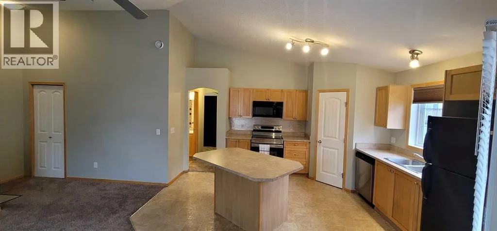 Welcome to #206 80 Panatella Landing NW!Step into comfort and convenience with this charming stacked townhouse condo, ideally located in the well-managed, PET-FRIENDLY (with condo board consent) Panatella Landing complex. This TOP FLOOR bright and spacious 1-bedroom plus large den CORNER UNIT offers enhanced privacy with NO ONE LIVING ABOVE YOU and features an open-concept layout with vaulted ceilings and large windows that fill the space with natural light. The inviting living and dining area flows seamlessly into the kitchen, which includes ample counter space, a pantry, stainless steel fridge and stove, built-in dishwasher, and a functional island with breakfast bar making it perfect for casual dining or entertaining. Stay cozy year-round with efficient in-floor heating, and enjoy peace of mind knowing the HEATING SYSTEM WAS REPLACED IN SEPTEMBER 2023. A unique bonus is the EXTRA STORAGE SPACE located above the stairs just off the living room is ideal for seasonal items or additional household storage. In addition to a large bedroom there is a spacious den with skylight offers flexibility as a home office, guest room, or second living area. A well-appointed 4-piece bathroom features in-suite laundry area with MORE STORAGE.Step outside onto your covered balcony to relax or entertain. The unit comes with an assigned parking stall, plus ample visitor parking. Families will appreciate the on-site playground, and pet lovers will be pleased to know pets are welcome (with condo board approval). (id:27476)