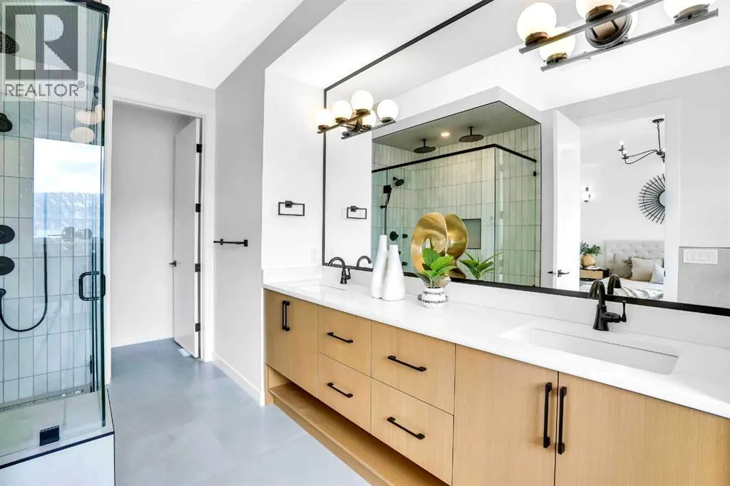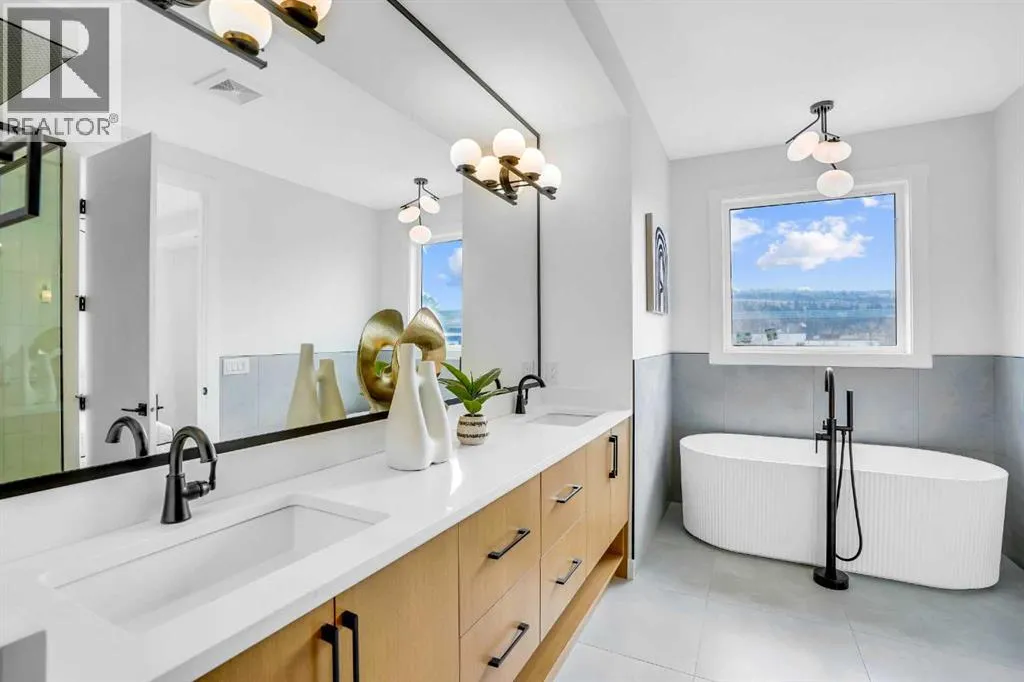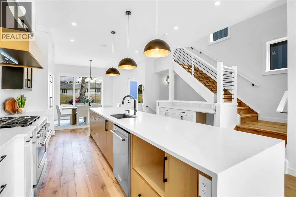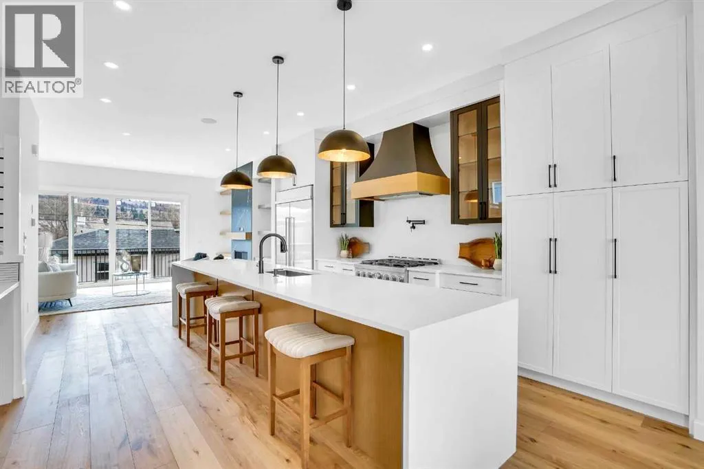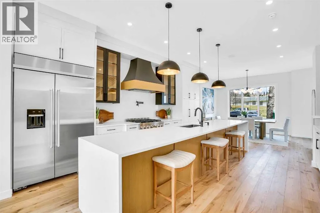 This BRAND NEW, MOVE-IN READY infill in MONTGOMERY checks all the boxes for stylish, functional inner-city livingâwith the added bonus of a fully private 1-BED WALKOUT SUITE (approved with permits and subject to final inspection). Whether you're looking for extra income, space for guests, or a little more flexibility in your day-to-day, this one delivers. Step inside to a bright, welcoming foyer with a full coat closetâsimple, clean, and easy to come home to. At the front of the home, the dining area offers space for a full-size table and flows naturally into the heart of the home: the kitchen. The kitchen brings a timeless feel with classic SHAKER-STYLE CABINETS, a custom-built hood fan with oak accents, glass display shelves with LED lighting, and a quartz-topped island with waterfall edges. Youâll also find an upgraded KITCHENAID APPLIANCE PACKAGE, including a gas range with pot filler and a large KitchenAid French door fridge. Thereâs also a convenient coffee or beverage station, complete with room for a beverage fridge. The living room is warm and elevated, featuring an INSET GAS FIREPLACE with full-height tile surround and built-in display shelving with closed cabinetry for extra storage. Natural light pours in through large rear sliders, leading out to the sunny SOUTHWEST-facing back deck with privacy screens already installed. Off the rear entry, the mudroom includes built-in shelving, a bench, and cubbies, with access to the powder roomâprivate, polished, and finished with a skirted quartz counter and decorative framed mirror. Upstairs, the primary suite is a calm retreat with a tray ceiling, spacious walk-in closet, and a stunning ensuite that includes a freestanding soaker tub, walk-in shower with DUAL RAIN HEADS, and double vanity. Two more bedrooms, a full bath with attractive STACKED HORIZONTAL TILE, and a laundry room with designer tile flooring complete the upper level. Downstairs, the WALKOUT SUITE (approved, subject to final inspection) is bright, smartly designed, and full of quality finishes. The living room has a BUILT-IN FLOATING MEDIA CENTRE, and the full kitchen mirrors the same modern style as upstairs, with warm oak flat panel cabinetry and quartz countertop. Thereâs a full bathroom, stacked laundry, and a large bedroom with walk-in closetâplus its own separate entry for total independence. Set just off Home Road, this location offers easy access to main routes like 16th Ave and Memorial Drive while keeping you steps from nature. Walk to Shouldice Park, Bowmont Park, and the Bow River Pathway system for daily runs, dog walks, or weekend bike rides. You're minutes from Montalcino Ristorante, NOtaBLE, and lots of local coffee shops, restaurants, and bars for food and coffee favoUrites. Groceries, schools, Market Mall, U of C, and Foothills Hospital are all close by, making this one of Calgaryâs most livable and up-and-coming inner-city communities. Photos and Room Size are from Showsuite. Call today to view! (id:27476)