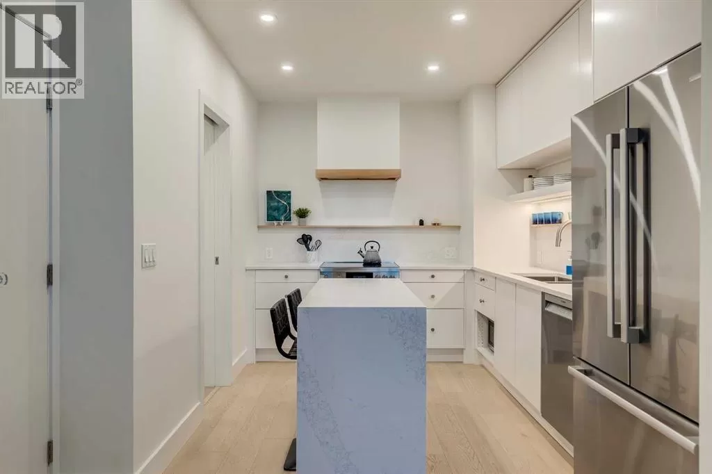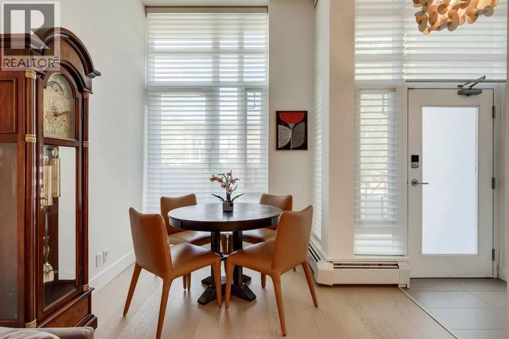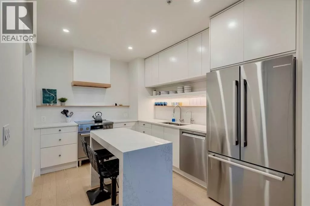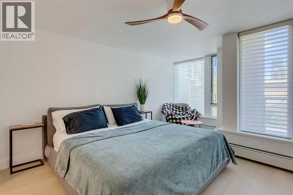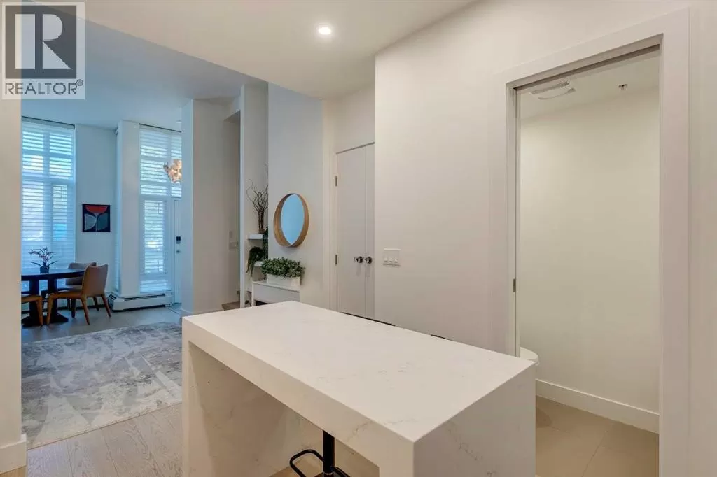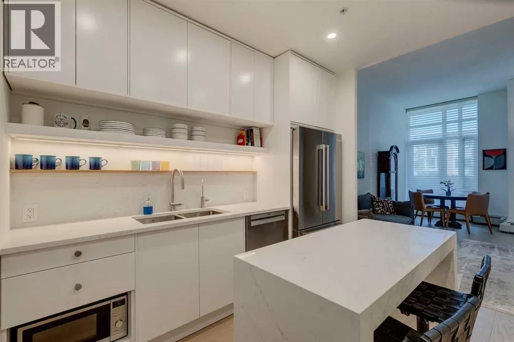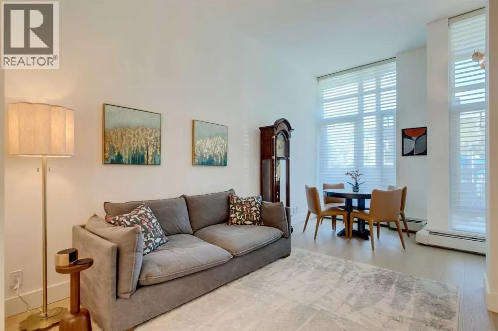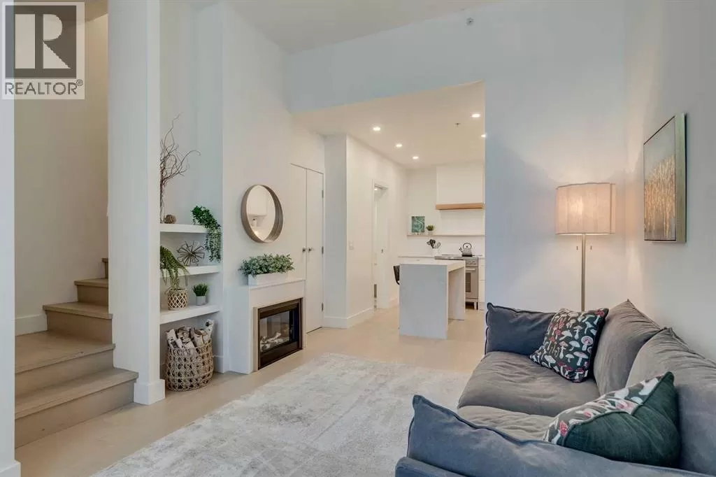 This beautifully redesigned 1 BED PLUS DEN, walk-up 2 level apartment is nestled just off Calgaryâs iconic 17th Avenue in the heart of the Beltline. With its private entrance, this rare gem offers the perfect blend of urban energy and modern serenity, all under $500,000 and $75,000 below the City assessment. Fully gutted and professionally renovated Spring 2024, every inch of this home was reimagined with elevated design and premium finishes.Soaring 11-foot ceilings and oversized floor-to-ceiling windows flood the space with natural light, complemented by new sheer silhouette blinds, wide plank brushed oak hardwood floors, and designer lighting throughout. The main floor boasts an open-concept layout ideal for entertaining, with a sleek chefâs kitchen featuring top-of-the-line Bosch appliances, quartz countertops, open shelving, and soft-close cabinetry with timeless Emtek hardware. Step outside to your private front patio facing a quiet, tree-lined street, perfect for BBQs and morning coffee.A powder room and walk-in pantry/storage with custom shelving add thoughtful functionality. Upstairs, youâll find a flexible den/lounge area, a generous primary suite with balcony, and a stunning spa-inspired ensuite with Riobel fixtures, freestanding soaker tub, and separate glass shower. In-suite laundry (Bosch), titled underground parking, and a secure storage locker complete the package.This pet-friendly building offers unbeatable walkability to Calgaryâs best cafés, bars, and restaurants including Lulu Bar, UNA Pizza, Porch, Analog, Made by Marcus, and more. Immediate possession available, your inner-city lifestyle upgrade awaits. Don't forget to check the video link to get the full viewing experience and book your in person appointment today! (id:27476)