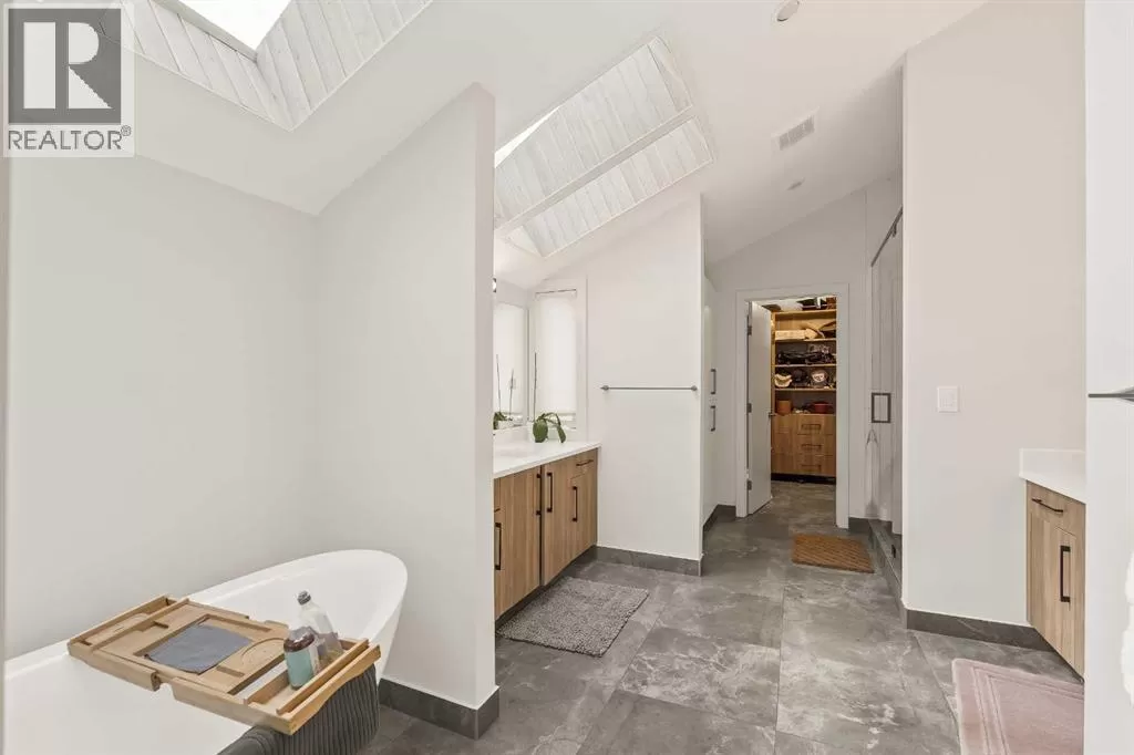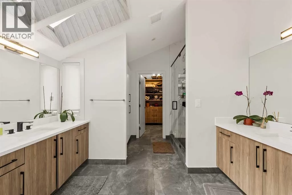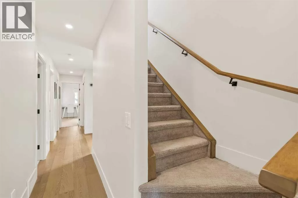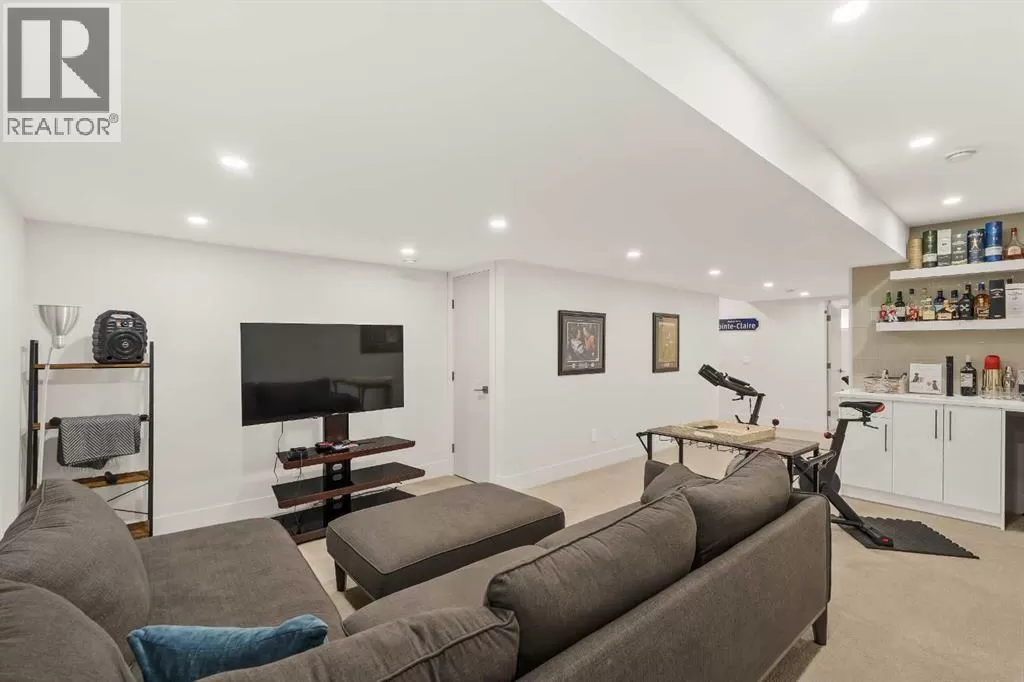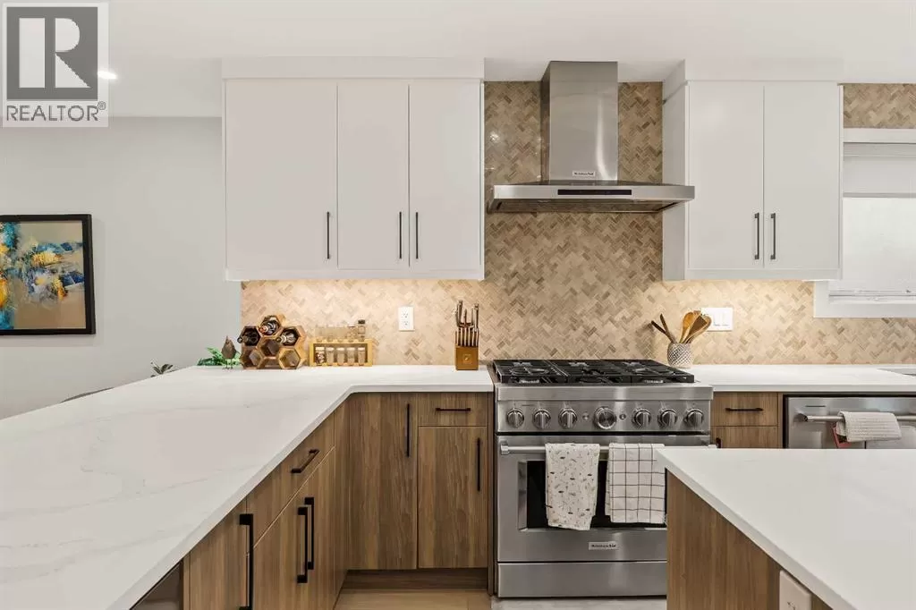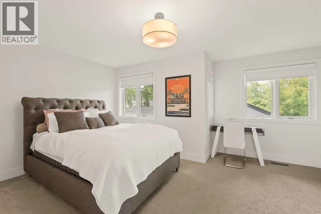 Completely reimagined from the studs up, this luxurious 3-storey residence in the prestigious inner-city community of Parkhill offers nearly 3,000 sq ft of refined living above grade, where timeless elegance meets modern sophistication. Every detail has been thoughtfully curatedâfrom wide-plank hardwood flooring to custom built-ins, designer lighting & premium finishes throughout. The open-concept main floor is anchored by a striking floor-to-ceiling marbled gas fireplace, creating a warm yet elevated focal point in the sun-filled living room. The expanded chefâs kitchen is a statement in style & function, featuring an oversized centre island, gas range, wine fridge, two-tone cabinetry, quartz countertops & a herringbone tile backsplashâpaired with an elegant dining area perfect for hosting. A designer powder room & custom mudroom with built-in storage complete the main level. The second level offers two generously sized bedrooms each with walk-in closets & their own private ensuites, while a full laundry room with sink & built-ins adds convenience. The top floor is a true retreatâdedicated entirely to the primary suite, complete with a gas fireplace, sunlit office nook with skylights, private rear deck with downtown views, a spa-worthy ensuite with freestanding soaker tub, dual vanities, oversized glass shower & an exquisite walk-in dressing room. The fully finished lower level continues to impress with a large rec/media room, bar with beverage fridge, 4th bedroom & full bathâoffering flexible space for family or guests. Outside, the low-maintenance backyard with composite decking is tailor-made for summer entertaining. A double detached garage rounds out this exceptional property. Set in a coveted location steps from the Elbow River pathway system, River Park, Missionâs vibrant 4th Street & cafés, top-rated schools & C-Train accessâthis home offers the perfect blend of luxury, lifestyle & inner-city connection. (id:27476)