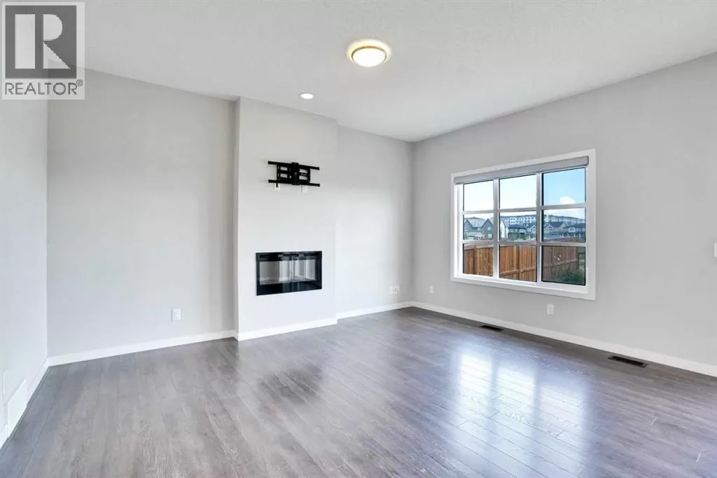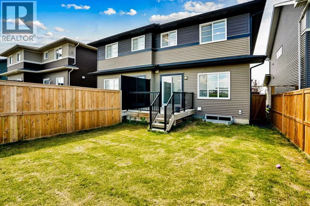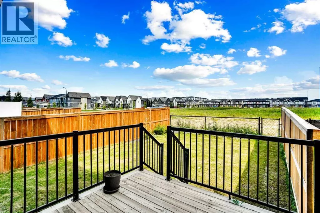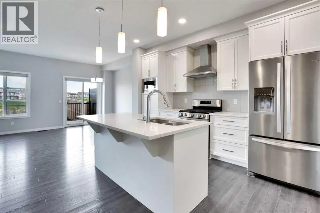 Welcome to this beautifully finished semi-detached home in the tranquil community of Carrington.Backed onto a serene green space, this recently built property offers over 2,301 sq. ft. of total livable space, thoughtfully designed for comfort, style, and everyday living. Impeccably maintained and tastefully upgraded, the home combines modern elegance with practical functionality.The main floor welcomes you with 9-ft ceilings and an abundance of natural light through large windows and patio doors. The newly added gourmet kitchen features a chimney hood fan, built-in microwave, crown-molded cabinetry, stylish tile backsplash, a spacious walk-in pantry, and a functional islandâperfect for both cooking and entertaining. The open-concept living and dining areas are enhanced by lovely laminate flooring, neutral grey tones with crisp white trim, and a cozy fireplace. A convenient half bath completes this level.Upstairs, the primary suite includes a generous walk-in closet and a luxurious 5-piece ensuite with a standing shower, double vanity, and soaker tub. Two additional bedrooms, a well-appointed 4-piece bathroom, and an upstairs laundry room offer both comfort and convenience for the whole family.The fully finished lower level expands your living options with a spacious multi-purpose room and a 4-piece bathroom - ideal as a home gym, media room, or guest space.Additional highlights include an oversized driveway, peaceful green space views, and a stylish, move-in-ready interior. Perfect for families seeking space, quality, and modern living, this home is ready to welcome its next chapter. (id:27476)