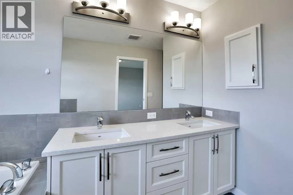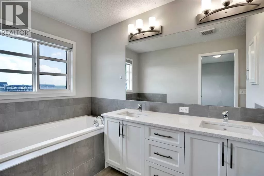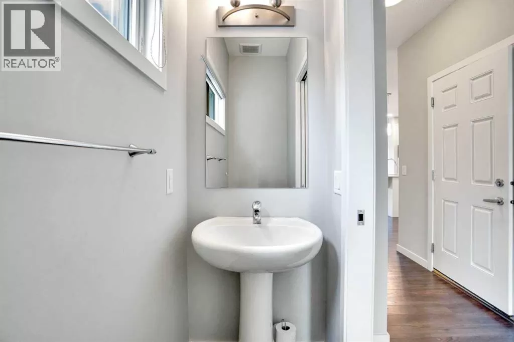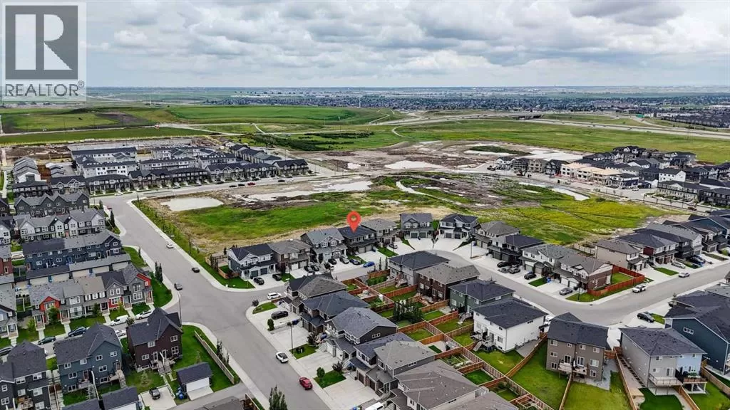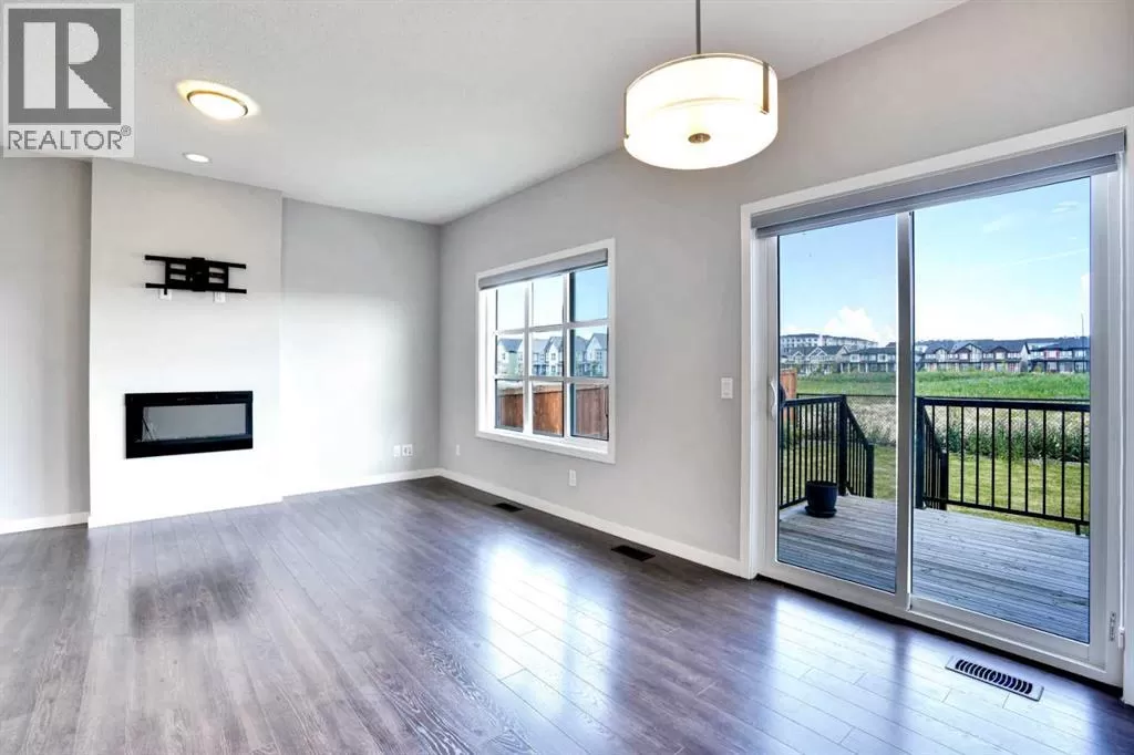 Welcome to this beautifully finished semi-detached home in the tranquil community of Carrington.Backed onto a serene green space, this recently built property offers over 2,301 sq. ft. of total livable space, thoughtfully designed for comfort, style, and everyday living. Impeccably maintained and tastefully upgraded, the home combines modern elegance with practical functionality.The main floor welcomes you with 9-ft ceilings and an abundance of natural light through large windows and patio doors. The newly added gourmet kitchen features a chimney hood fan, built-in microwave, crown-molded cabinetry, stylish tile backsplash, a spacious walk-in pantry, and a functional islandâperfect for both cooking and entertaining. The open-concept living and dining areas are enhanced by lovely laminate flooring, neutral grey tones with crisp white trim, and a cozy fireplace. A convenient half bath completes this level.Upstairs, the primary suite includes a generous walk-in closet and a luxurious 5-piece ensuite with a standing shower, double vanity, and soaker tub. Two additional bedrooms, a well-appointed 4-piece bathroom, and an upstairs laundry room offer both comfort and convenience for the whole family.The fully finished lower level expands your living options with a spacious multi-purpose room and a 4-piece bathroom - ideal as a home gym, media room, or guest space.Additional highlights include an oversized driveway, peaceful green space views, and a stylish, move-in-ready interior. Perfect for families seeking space, quality, and modern living, this home is ready to welcome its next chapter. (id:27476)