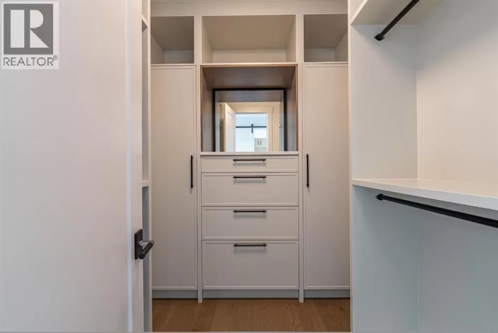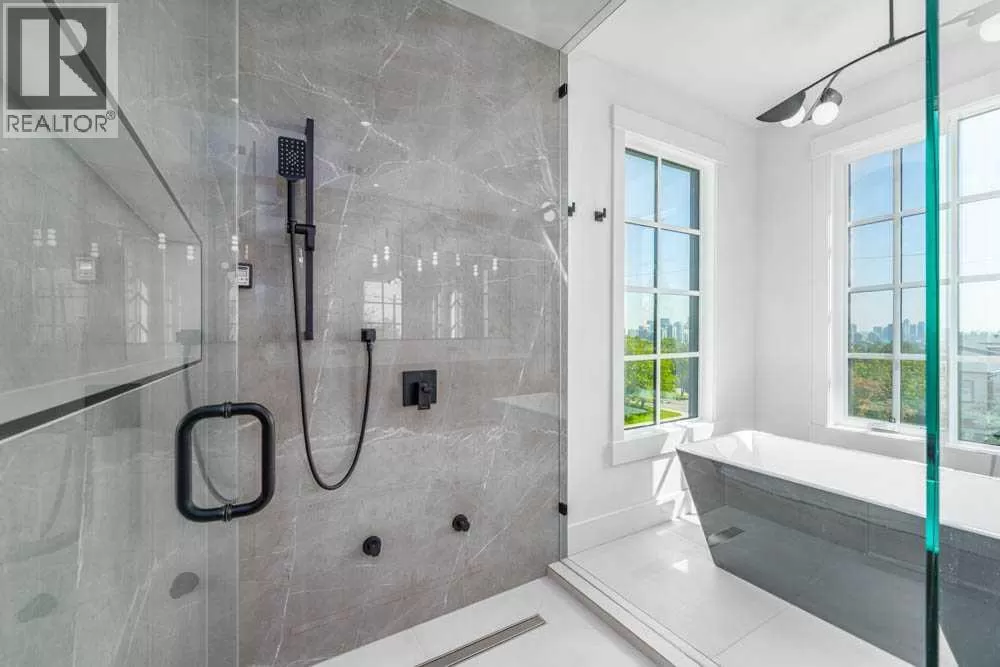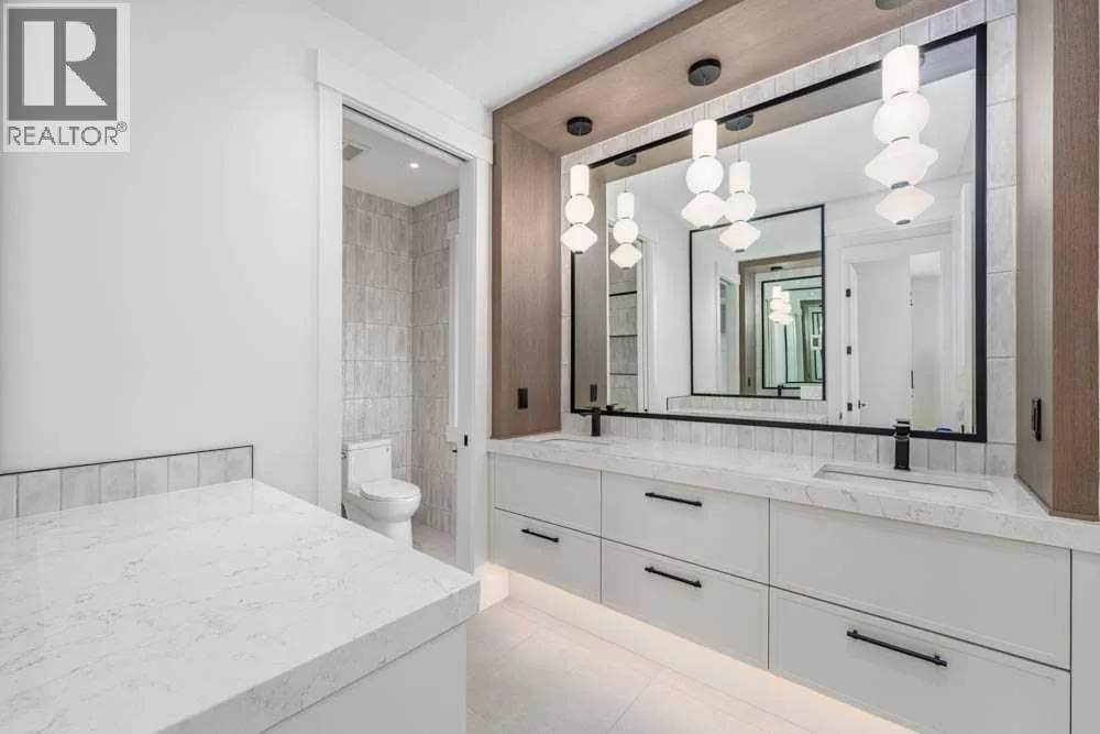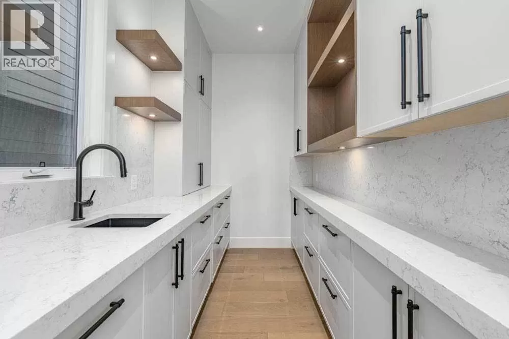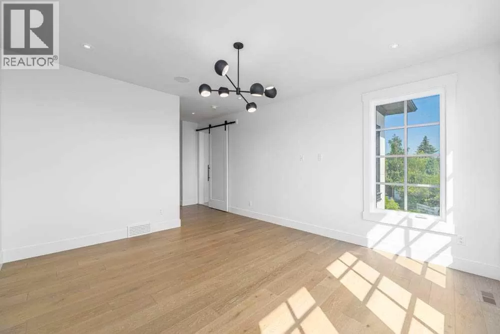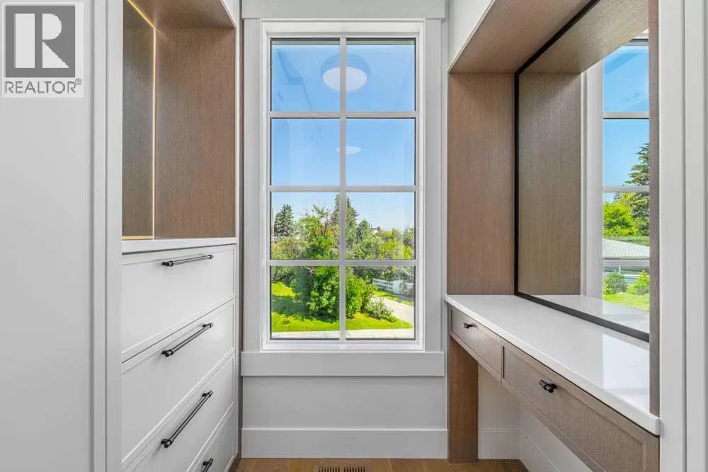 Luxury Living with Breathtaking Views in the Heart of Bankview. Discover an extraordinary modern home perched in one of Calgaryâs most desirable inner city locations. This striking corner property in Bankview combines bold architecture, refined interiors, and panoramic downtown views that elevate everyday living. From the moment you arrive, the home's clean modern lines, oversized windows, and meticulously landscaped yard make a strong first impression. The low-maintenance yard features an automatic irrigation system, so everything stays green and beautiful without the work. Step inside to soaring ceilings and sun filled spaces that create an immediate sense of openness. The formal dining room, surrounded by windows, is ideal for hosting gatherings both big and small. Nearby, a discreet powder room and custom wine storage add practical luxury. At the heart of the home is a stunning chefâs kitchen, equipped with premium Fisher & Paykel appliances, striking quartz counters, statement tile, and a butler pantry to keep everything organized. The oversized island is perfect for prepping, serving, or socializing, and the cozy breakfast nook opens onto a private terrace, blending indoor comfort with outdoor living. The family room is equally impressive, anchored by a dramatic floor-to-ceiling stone fireplace and seamless access to a second outdoor terrace with sweeping city views, ideal for evening cocktails or weekend lounging. A glass enclosed open staircase adds a striking architectural element and invites light to move freely through the home. Upstairs, the luxurious primary suite is your personal retreat. Enjoy dual custom closets, a built-in vanity, and a spa like ensuite featuring heated floors, a deep soaker tub, double sinks, a rainfall steam shower, and beautiful finishes throughout. Two additional bedrooms offer flexibility for kids, guests, or home offices, and the full bathroom also features in floor heat and generous storage. A laundry room with high end washe r/dryer and ample cabinetry makes daily tasks easier and more efficient. The lower level expands your living space with a spacious recreation room, custom wet bar with wine fridge and integrated dishwasher, perfect for entertaining. Radiant in floor heat keeps things cozy year round. A fourth bedroom and full bathroom provide extra space for guests or teens, while the oversized mudroom connects directly to the heated double garage and includes loads of smart storage. Additional features include central A/C, integrated lighting, thoughtful finishes throughout, and a location that puts the best of Calgaryâs inner city at your doorstep. This home is the perfect blend of luxury, function, and elevated design, ideal for buyers who value both luxury and everyday comfort. Please see video and 3D Tour. (id:27476)
