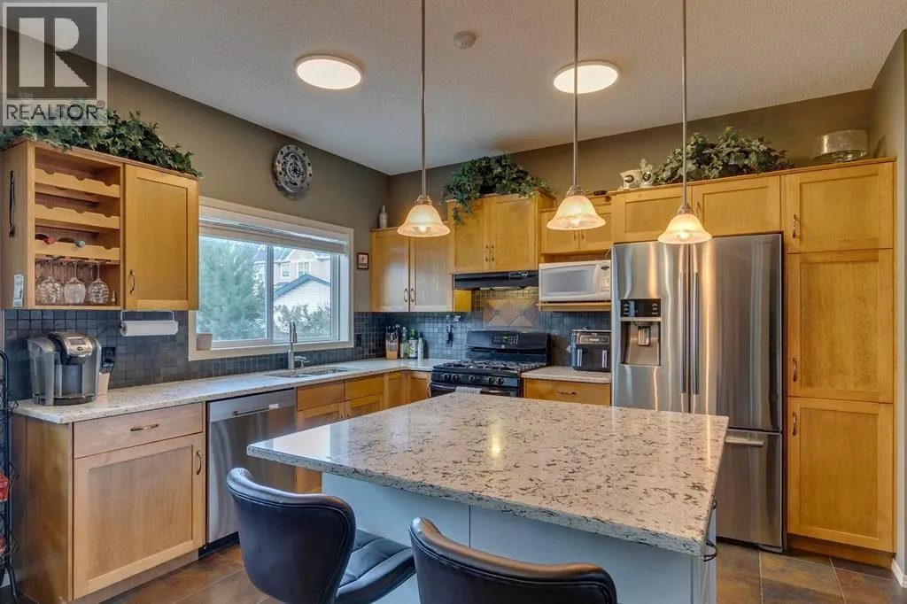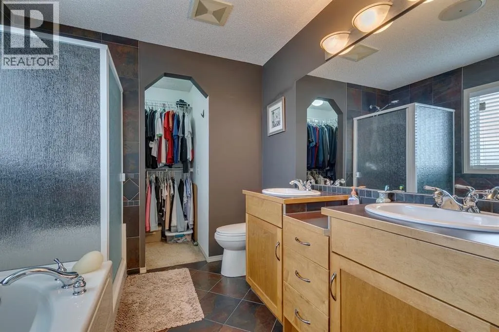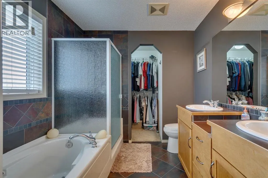 TRIPLE DETACHED GARAGE W/ LIFT (PARK 4 CARS!) MECHANICS DREAM- MEASURES 28' X 26' WITH A 14 FOOT CEILING. TOTALLY KITTED OUT. Must see to believe. GORGEOUS HOME LOADED WITH UPGRADES. 4 beds, 3.5 baths, fully finished basement. Soaring ceilings on the main floor makes the space to feel open and bright- Southeast and West light pours through. Expansive living room with lovely gas fireplace and built ins. Kitchen has plenty of storage space, gleaming granite counters and a convenient island. Huge window facing the yard makes it ideal for watching kids play while you work. Mud room at the back door is ideal for dogs and jackets. Upstairs you can enjoy the wonderful bonus room, with sunshine patio- put some chairs out for your morning cuppa! Primary bedroom is massive and connects to a 5 pc ensuite bath. 2 extra kids rooms on this level are a good size. Basement is fully developed with a brand new permitted bathroom, 4th bedroom and large rec room. CENTRAL AC (2016). Low maintenance backyard with AWESOME DECK, PERGOLA AND STAMPED CONCRETE is ideal for entertaining. CUSTOM GARAGE BUILD MEASURES 28'X26', 14' HIGH AT THE PEAK, HAS A LIFT (NEGOTIABLE) AND A HEATER. 6" thick high psi concrete with reinforced steel, roughed in second overhead door with lintel TO MAKE IT A TRUE TRIPLE GARAGE. This is an ideal workshop for the serious car enthusiast. $120,000+ to build (2017), fully permitted. This home is located near schools, transit and highways. Playgrounds, shopping and lifestyle. McKenzie Towne boasts water pathways and ponds. Spend your time inside or out, but come home to your own private oasis. (id:27476)