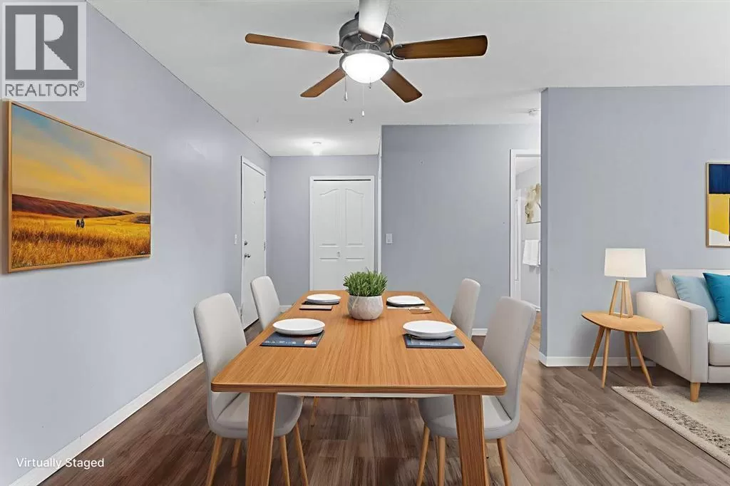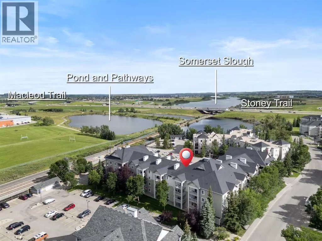 Welcome to Somerset Crossing! This spacious and well-maintained 2-bedroom, 2-bathroom end-unit condo offers over 844 sqft of comfortable living space, complete with titled underground heated parking and a titled storage space, a fantastic opportunity for first-time buyers, downsizers, or investors. The unit features an open-concept layout with a functional kitchen offering plenty of counter space, a generous dining area, and a cozy living room flooded with natural lights and access to a north-facing balcony, keeping the space bright yet cool during summer. The primary bedroom includes a walk-through closet and private 4-piece ensuite, while the second bedroom works perfectly as a guest room or home office. Additional highlights include newer flooring (2017), and a newer set washer & dryer (2021). Located just a 2-minute walk to the Somerset LRT station, and with quick access to MacLeod and Stoney Trail, the location is unbeatable. You're also close to YMCA, library, grocery stores, restaurants, shops, and schools. Condo fees include all utilities, making ownership both simple and affordable. Donât miss out, book your showing today and make Somerset Crossing your new home! (id:27476)