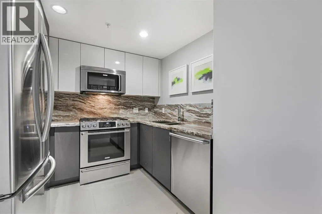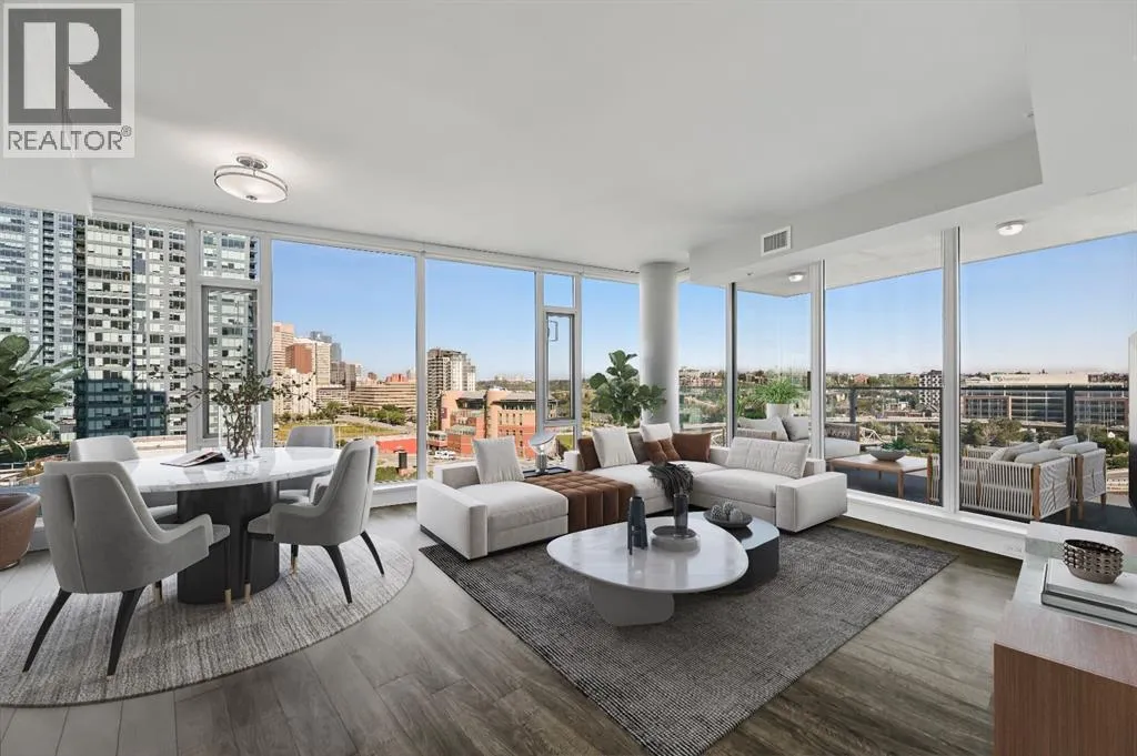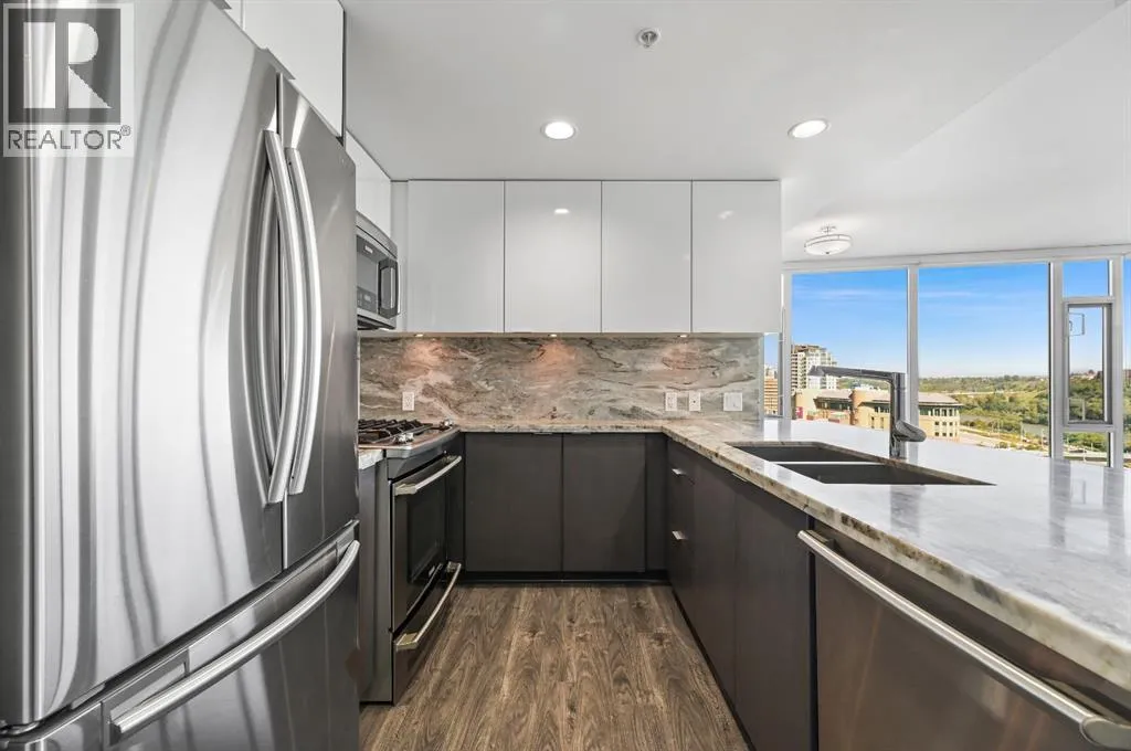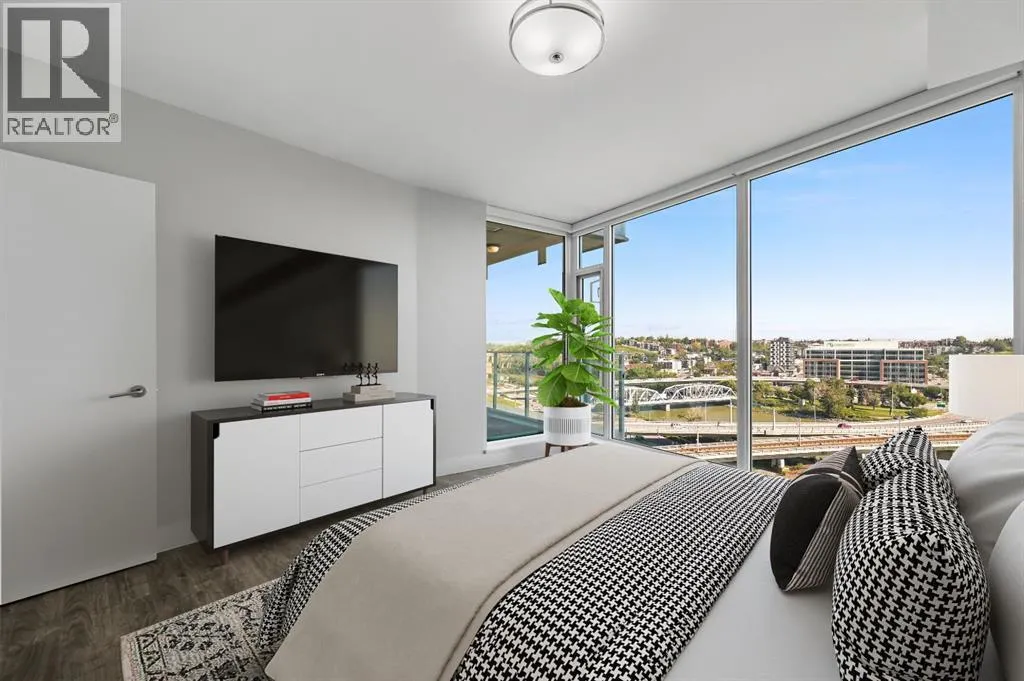 Tremendous value in this beautifully maintained and spacious 2-bedroom, 2 full bath unit with amazing river and NW Calgary views from the 11th floor! In the heart of Calgaryâs East Village, you can walk to everything including the walking and cycling paths along the Bow River, shopping, cafes and bakeries, top Calgary restaurants, the LRT, the Saddledome and Stampede Park, and Calgaryâs future entertainment district. You really are in the center of it all here! #1102 features luxury vinyl plank flooring, very modern and sleek white kitchen cabinets, gas range, granite counters throughout, a primary bedroom with ensuite including dual sinks, central A/C, in-floor heating in the bathrooms, and blackout blinds in the 2 bedrooms. You can even sit on the spacious balcony complete with gas line for cozy fire table and BBQ and watch the river just float on by. Located in the well run Evolution complex, you will enjoy one of the very best oversized parking stalls (#281-extra wide, with no other cars beside you and just steps to the elevator and your very own storage locker), security and concierge service, visitor parking in the parkade, 2 well-appointed fitness rooms, steam and sauna rooms, owners lounge with pool table and kitchen, and central courtyard with BBQâs and sitting areas to entertain friends and family. Monthly condo fee includes, gas, heat, water, sewer, trash and all amenities! This really is the one you have been waiting for. Experience and enjoy the best of Calgaryâs urban lifestyle, today! (id:27476)