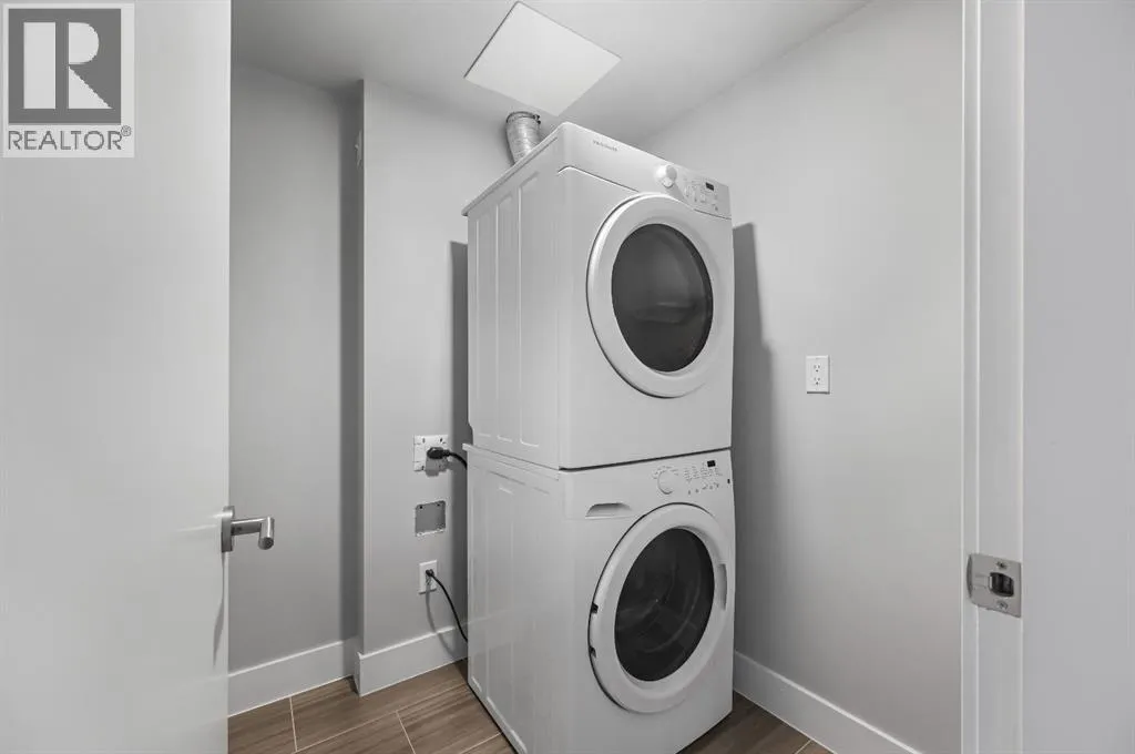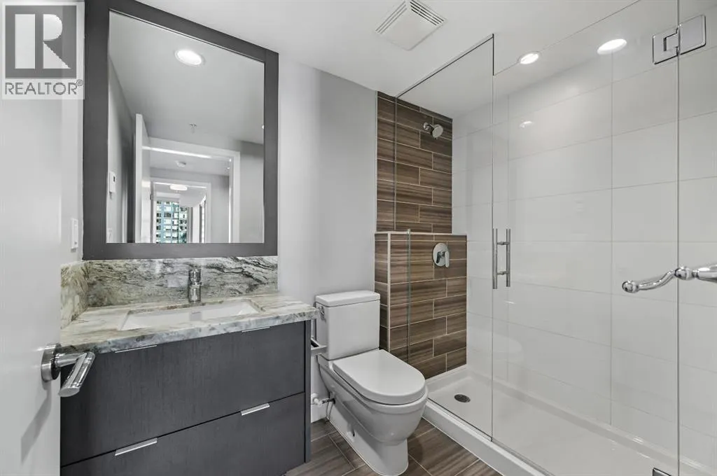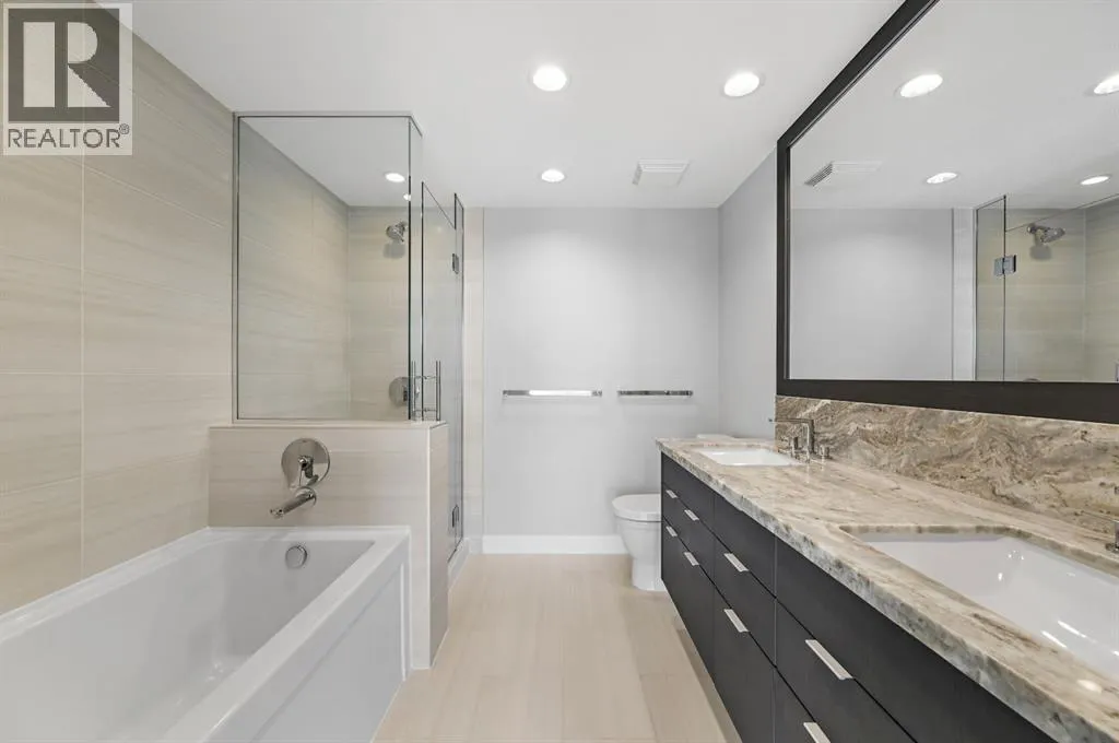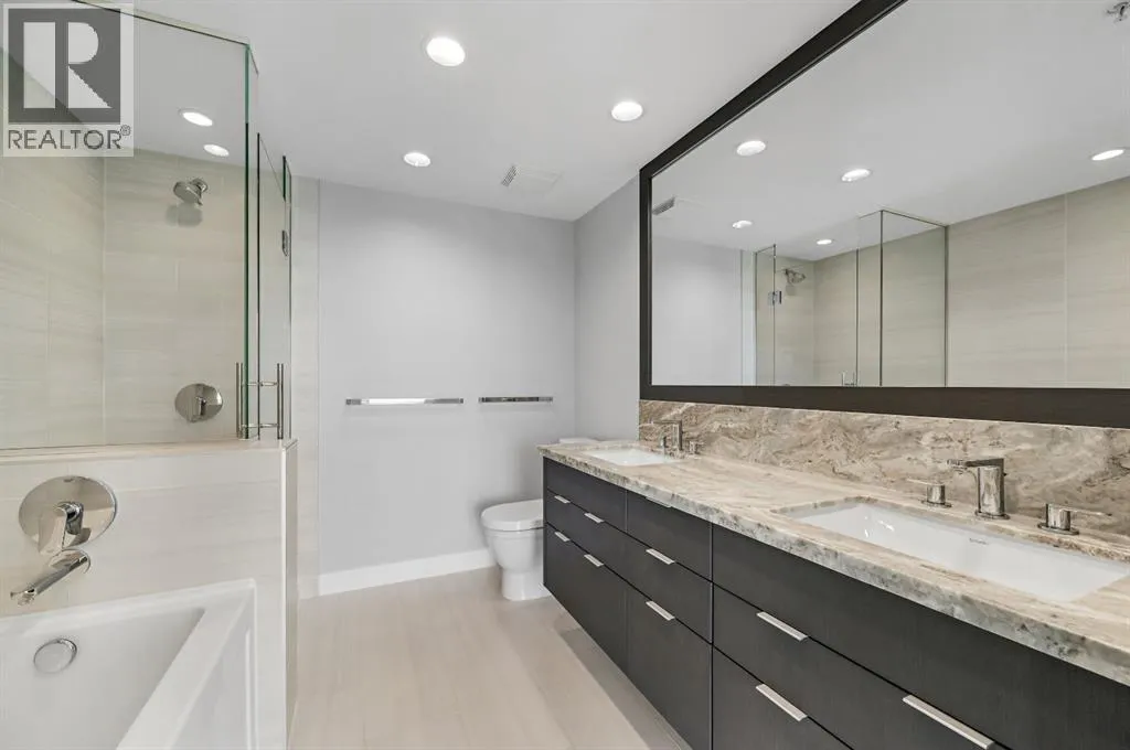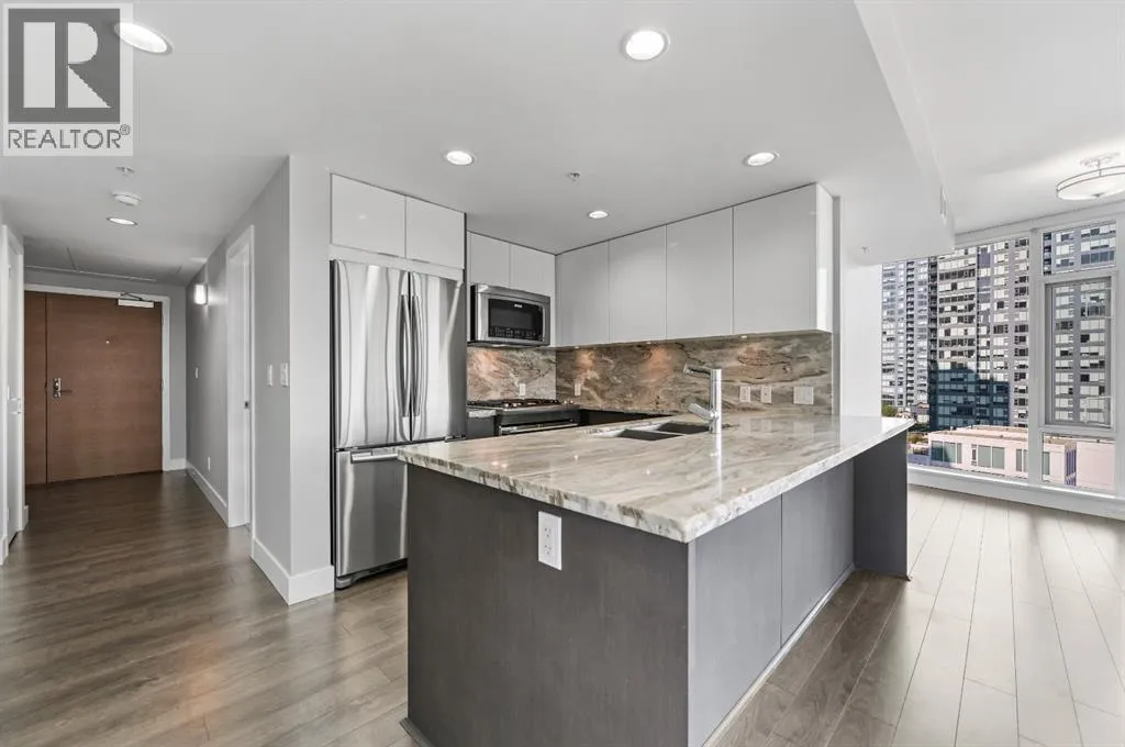 Tremendous value in this beautifully maintained and spacious 2-bedroom, 2 full bath unit with amazing river and NW Calgary views from the 11th floor! In the heart of Calgaryâs East Village, you can walk to everything including the walking and cycling paths along the Bow River, shopping, cafes and bakeries, top Calgary restaurants, the LRT, the Saddledome and Stampede Park, and Calgaryâs future entertainment district. You really are in the center of it all here! #1102 features luxury vinyl plank flooring, very modern and sleek white kitchen cabinets, gas range, granite counters throughout, a primary bedroom with ensuite including dual sinks, central A/C, in-floor heating in the bathrooms, and blackout blinds in the 2 bedrooms. You can even sit on the spacious balcony complete with gas line for cozy fire table and BBQ and watch the river just float on by. Located in the well run Evolution complex, you will enjoy one of the very best oversized parking stalls (#281-extra wide, with no other cars beside you and just steps to the elevator and your very own storage locker), security and concierge service, visitor parking in the parkade, 2 well-appointed fitness rooms, steam and sauna rooms, owners lounge with pool table and kitchen, and central courtyard with BBQâs and sitting areas to entertain friends and family. Monthly condo fee includes, gas, heat, water, sewer, trash and all amenities! This really is the one you have been waiting for. Experience and enjoy the best of Calgaryâs urban lifestyle, today! (id:27476)