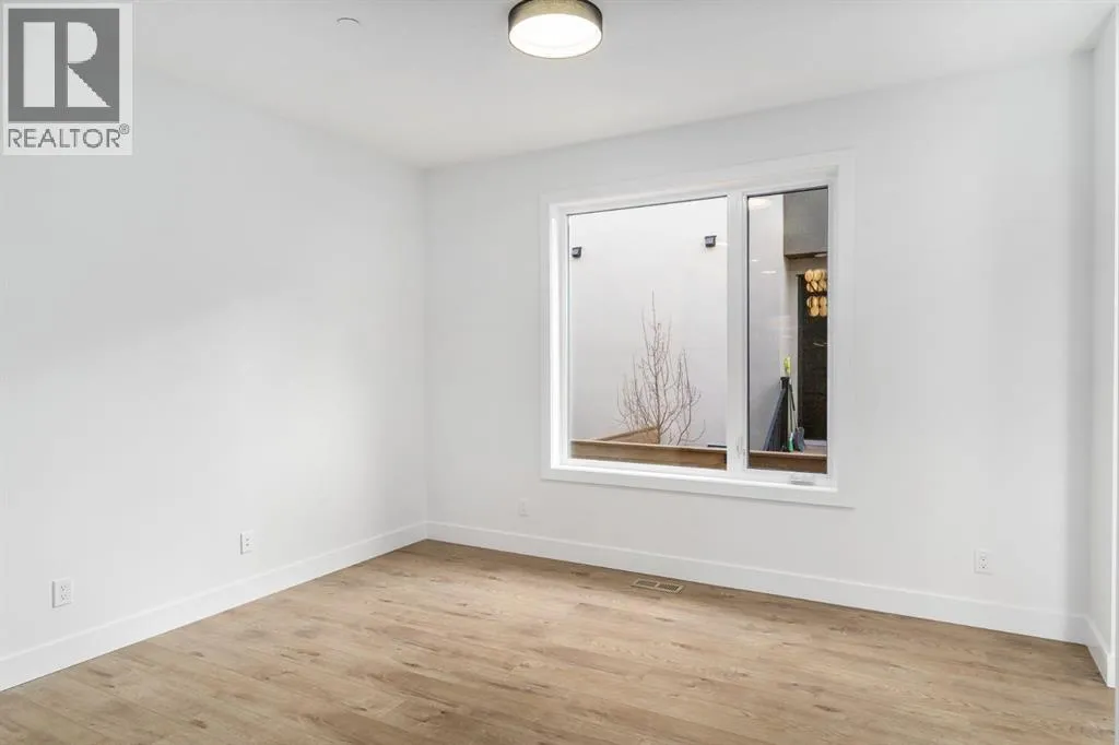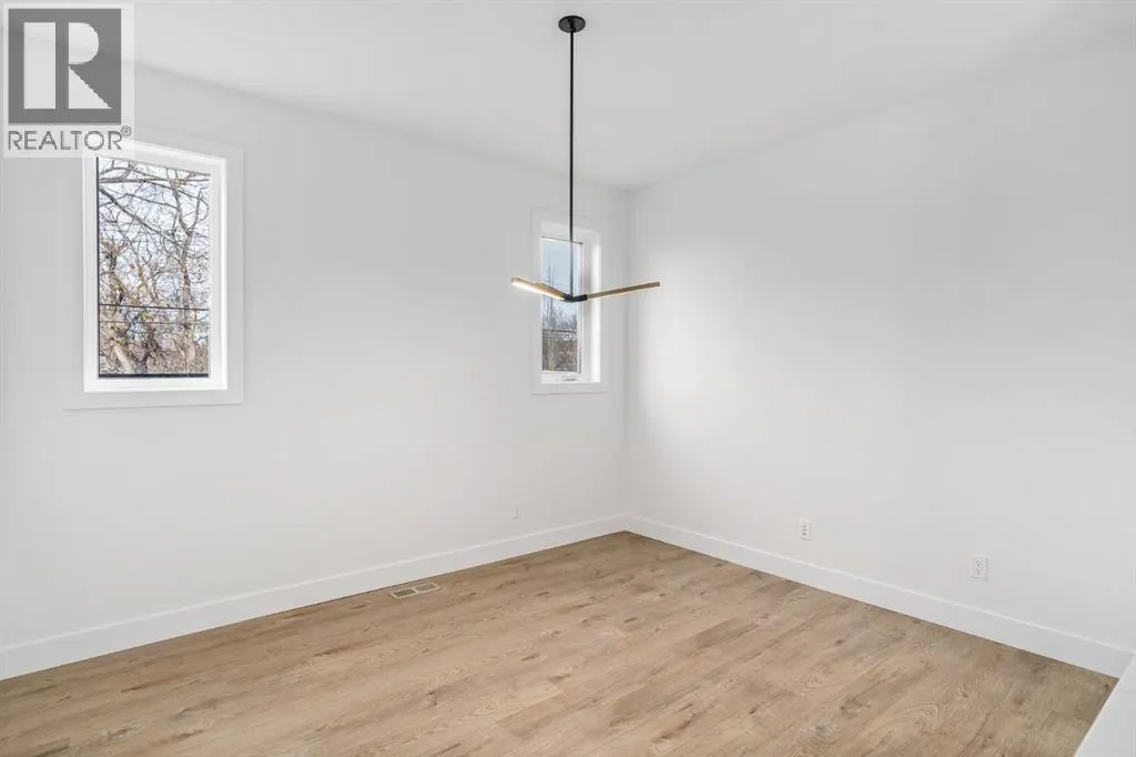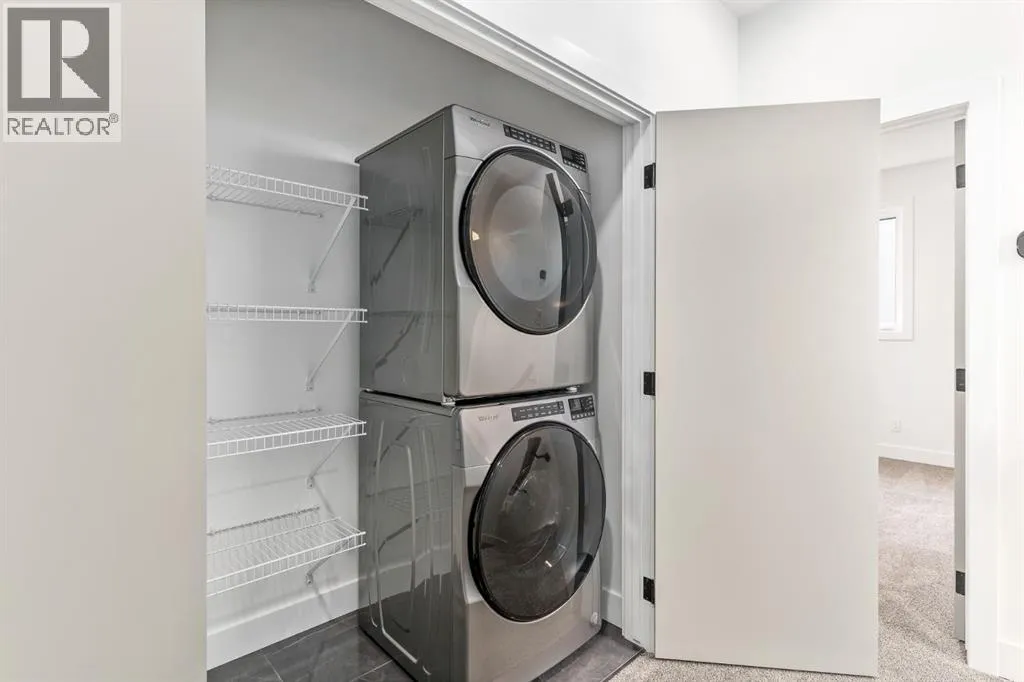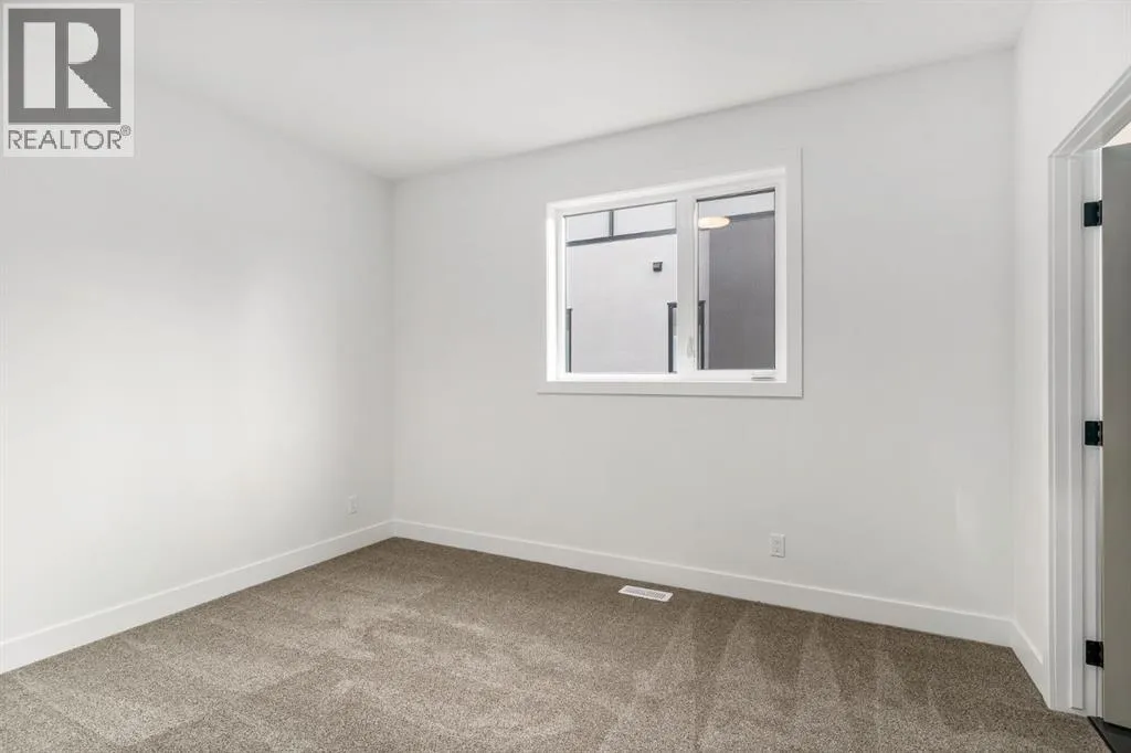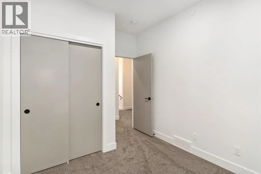 *Builder Incentive to cover all condo fees for first year* This modern townhouse embodies the ideal inner city lifestyle. Constructed by highly acclaimed builder Crystal Creek Homes, this meticulous residence is a testament to keen craftsmanship and spares no details. Luxury vinyl plank flooring, knockdown textured ceilings, and designer light fixtures are merely a few of the elements embedded throughout that truly elevate this home. Enter the impressive foyer and into expansive 9' ceilings, with huge south facing triple-glazed argon fill windows illuminating the living room and adjacent dining area. An open layout leads into the beautifully adorned kitchen, equipped with black stainless steel appliances, complementing black hardware, and geometric tiled backsplash. Quartz countertops, sleek dark cabinetry and a waterfall island with a Blanco Silgranit undermount sink seamlessly create the perfect environment for gastronomy enthusiasts looking to refine their technique, and host intimate gatherings with loved ones. A backyard outdoor amenity space is the opportune addition for summer evening BBQs or to simply enjoy a moment of fresh air. Tucked at the rear is the polished powder room with a highly efficient WaterSense toilet and undermount sink. Ascend the black metal spindled staircase with a durable shaker oak handrail and explore two palatial bedrooms, each with their own four piece ensuite bathrooms embellished with elegant quartz countertops, undermount sinks and wall tile detailing on the bathtub/shower surround all the way up to the ceiling. The primary bedroom includes a spacious walk-in-closet, the perfect accompaniment to the conveniently located stackable front load steam washer and dryer, injecting practicality and comfort into this luxurious offering. Escape to the third level loft, a thoughtfully curated ambience to unwind or entertain. With a unique multi-use area that can be easily converted into a family room, office, or bar/lounge, additional powde r room, and exclusive rooftop patio that offers peeks of the mountains to the west. The undeveloped basement is as spacious as it is versatile, awaiting your personal customizations and individual flare to transform it from the existing sweeping storage space and executing your creative vision. Intricate upgrades include a High Efficiency Two-Stage furnace, Ecobee5 Smart Thermostat, active HRV system, as well as spray foaming of all cantilevers, rim joists and window openings for enhanced insulation. Enjoy all of the perks that come with an inner city townhome lifestyle, including the favourably located garage steps away from your front door, quick commuting times, along with the bonus of having exterior maintenance taken care of for you. Set against the vibrant amenities and attractions found within Marda Loop, this home provides a remarkable opportunity to pamper yourself daily, all while living in a desirable and energetic community centrally positioned with quick access the rest of the city. (id:27476)