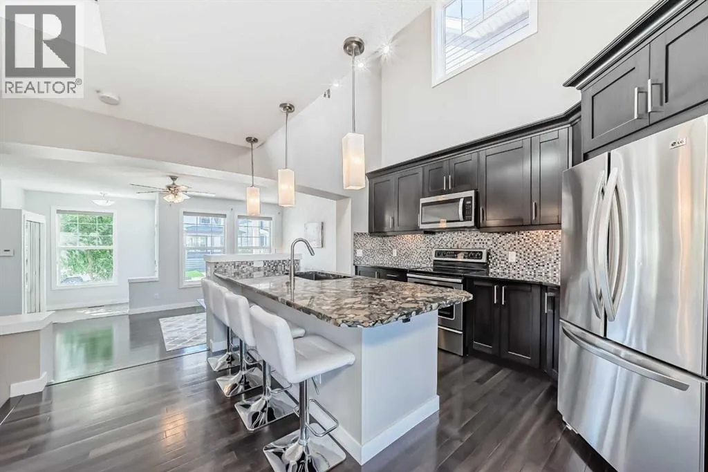 STUNNING HOME in Auburn Bay with FULLY DEVELOPED BASEMENT, TOTAL OF 4 BEDROOMS 4 BATHS. OVERSIZED GARAGE, dry-walled, insulated, WIRED 220V. HIGH-END FINISHINGS; HARDWOOD floors, CERAMIC TILE, LARGE CENTRAL ISLAND with GRANITE countertops, dark maple cabinets, tiled backsplash, crown mouldings & trims, window coverings and STAINLESS STEEL appliances. SPACIOUS living areas with functional, bright & open concept. OPEN STAIRCASE with SKYLIGHT & SPINDLE RAILINGS . Generous sized bedrooms, bathrooms with GRANITE countertops and under mount sinks. MASTER BEDROOM with WALK-IN CLOSET & 3 PC ENSUITE. 2ND BEDROOM can be converted back to a bedroom or you can enjoy the large dressing room with elegant cabinetry & finishings, GOOD SIZED 3RD BEDROOM and a FULL BATH completes the upper level. FINISHED BASEMENT is complete with HUGE REC ROOM , 4TH BEDROOM , BATHROOM & LAUNDRY ROOM. Great backyard with cedar deck, pergola with hot tub ready connections and stamped concrete patio. Nice front yard landscaping with artificial turf and amazing stone paved walk paths. Auburn Bay offers year-round activities including Lake access and playgrounds, steps away to the pond & walking paths, close to all amenities, hospital and schools ! CALL NOW to VIEW !!! MAKE THIS WONDERFUL FAMILY HOME YOUR OWN TODAY ! (id:27476)