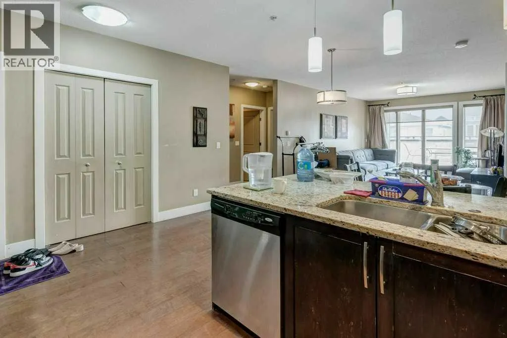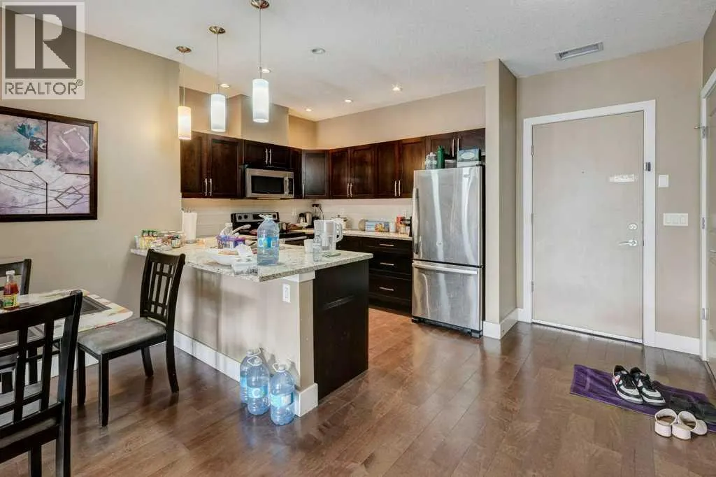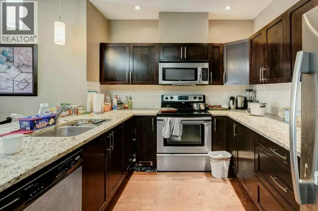 Welcome to Montgomery, one of Calgaryâs most vibrant and growing communities, known for its trendy local shops, cozy cafés, scenic walking paths, and quick access to downtown. This rare 2-bedroom plus a den unit in Montgomery Place offers an open-concept layout with hardwood floors, a spacious kitchen featuring stainless steel appliances, granite countertops, and a convenient breakfast bar. The kitchen flows into a bright dining and living area, leading to a massive private balconyâperfect for relaxing or entertaining. The primary bedroom includes a walk-through closet and 4-piece ensuite, while an additional bedroom, a den, a full main bath, and in-suite laundry provide both comfort and functionality. This unit also comes with a titled underground parking stall for added security and convenience. Steps from schools, parks, transit, and everything Montgomery has to offerâthis is unbeatable value in a fantastic location. (id:27476)