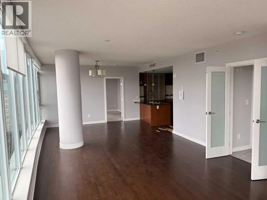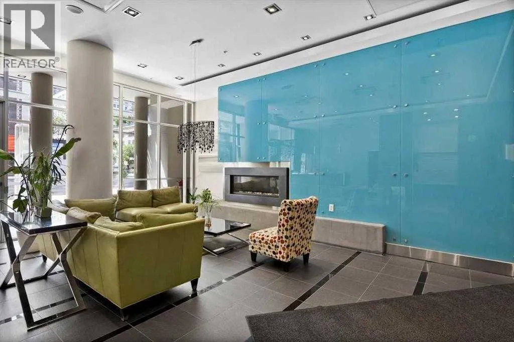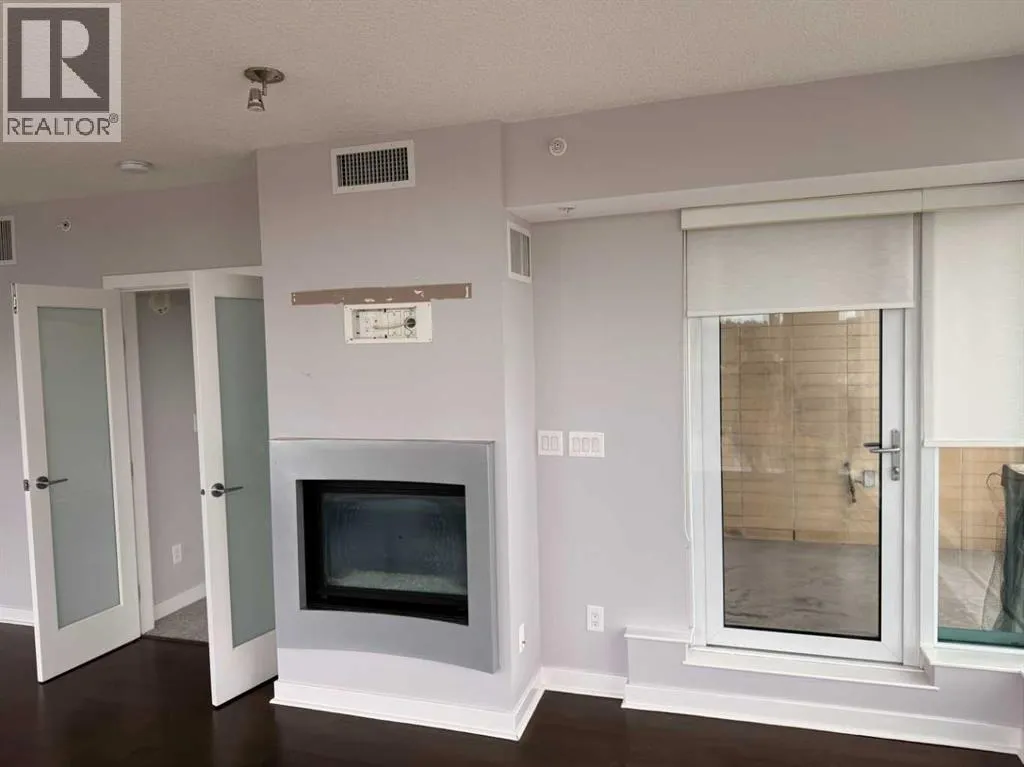 Downtown Condo with Stunning Bow River & Mountain Views Step into this executive 2-bedroom condo that offers the best of urban living with panoramic views of the Bow River and the majestic mountains. Located just steps from Eau Claire, Princeâs Island Park, and the vibrant downtown core, this home puts you within walking distance of top-tier restaurants, shopping, and the scenic Bow River Pathway.Inside, the open-concept floor plan maximizes space and functionality, complemented by premium finishes throughout. Features include sleek modern slab cabinets, engineered hardwood floors, chic glass tile accents. Cozy up by the gas fireplace with its unique lit glass crystals, or enjoy the breathtaking views from floor-to-ceiling commercial-grade windows. The granite countertops, acoustic underlay for extra soundproofing, and heated underground parking ensure both style and comfort.Residents of this exclusive building enjoy concierge services, including dry cleaning pick-up, access to a well-equipped fitness center, and plenty of visitor parking for guests.This condo truly offers the ultimate in convenience, and itâs move-in ready! Condo comes "as-is, where-is". Donât miss outâschedule your private showing today and experience downtown Calgary living at its finest! (id:27476)