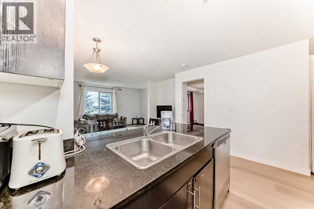 *** NEW PRICE *** Presenting a Bright and Spacious 2-Bedroom, 2-Bathroom Apartment with Flex Room and Serene Green Space Views. This 2-bedroom, 2-bathroom home, complete with a flex room/den, is ideal for a variety of lifestylesâwhether you're a first-time buyer, downsizing, or looking for an investment property.Step into a bright and airy open-concept layout that effortlessly combines functionality with comfort. Large windows invite an abundance of natural light into the living area, creating a warm and inviting atmosphere throughout the day. Step outside onto the spacious balcony overlooking a lush green spaceâa peaceful and private spot perfect for enjoying your morning coffee or hosting guests for summer barbecues. The balcony is roomy enough to fit your patio furniture and BBQ, truly extending your living space outdoors.The modern kitchen is equipped with granite countertops, sleek cabinetry, and a breakfast bar, ideal for casual dining or entertaining. The kitchen flows seamlessly into the dining area and living room, making it easy to host friends and family or enjoy quiet evenings at home.The primary bedroom is a tranquil retreat, complete with a walk-through closet that leads into a stylishly upgraded 3-piece ensuite bathroom. The second bedroom is generously sized and situated conveniently near the main 4-piece bathroom, offering privacy and flexibility for guests, family members, or roommates.The flex room/den adds exceptional versatilityâwhether you need a dedicated home office, a personal gym, a playroom, or a cozy reading nook, this space adapts to your needs. Additionally, the in-unit laundry room includes extra storage space, making everyday living even more convenient.This home also includes titled underground parking, ensuring your vehicle is safe and warm during Albertaâs cold winter months.Nestled in a welcoming and family-friendly community, the building backs onto a tranquil green space and is ideally located close to everything you needâ schools, grocery stores, public transit, and a variety of shopping and dining options. With easy access to Stoney Trail, commuting and getting around the city is a breeze.Whether you're looking for your next home or a smart investment opportunity, this move-in-ready unit offers a blend of style, space, and convenience thatâs hard to beat. (id:27476)