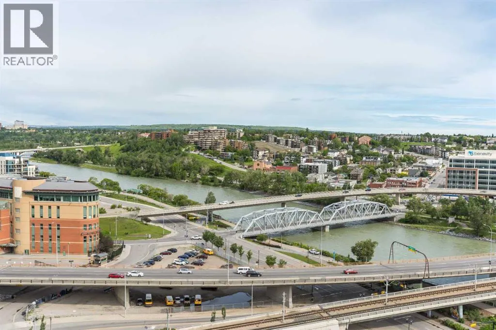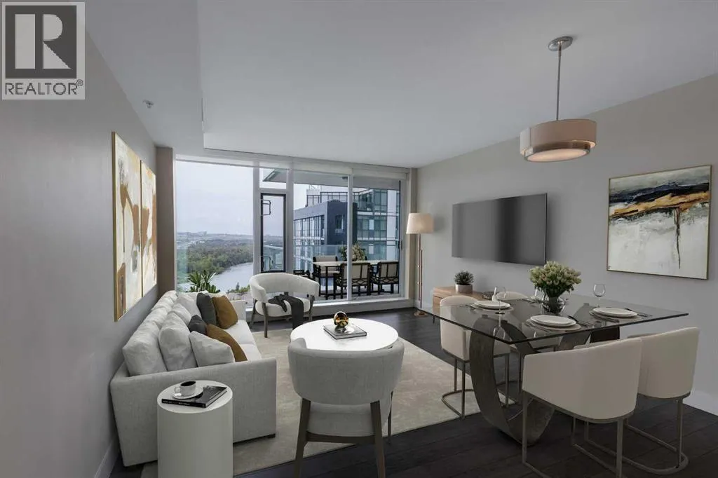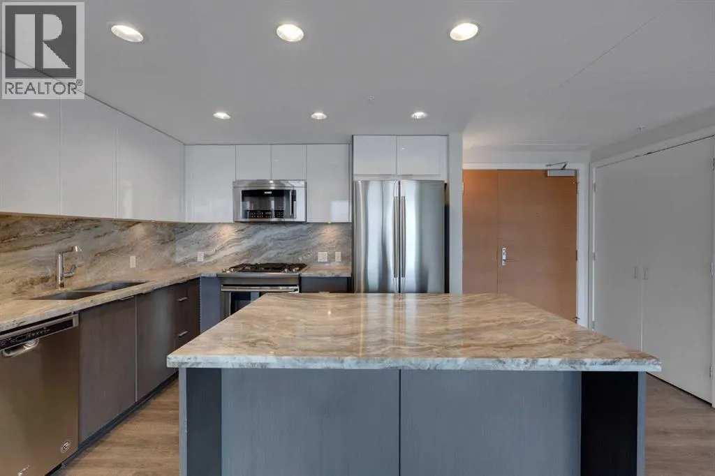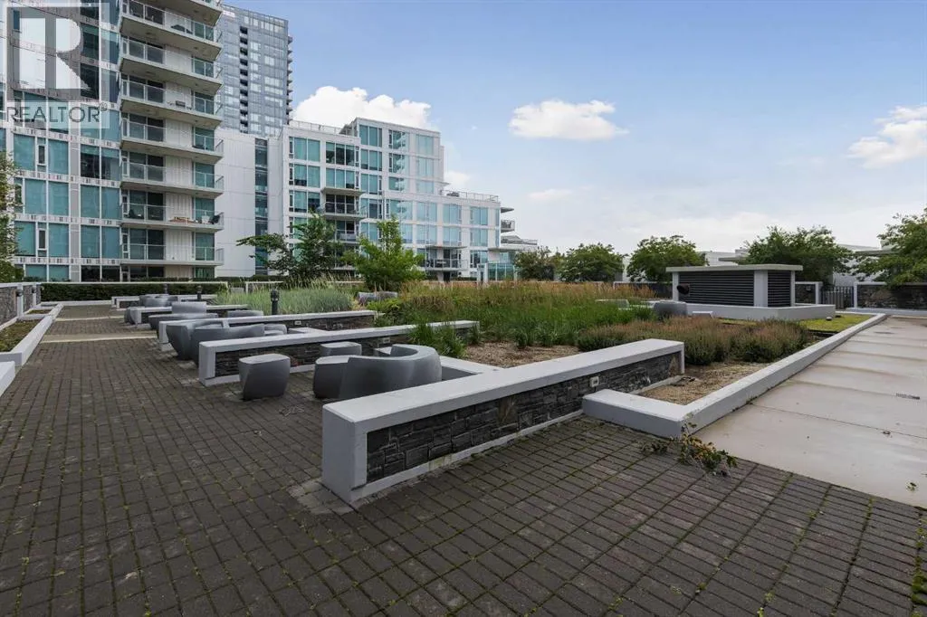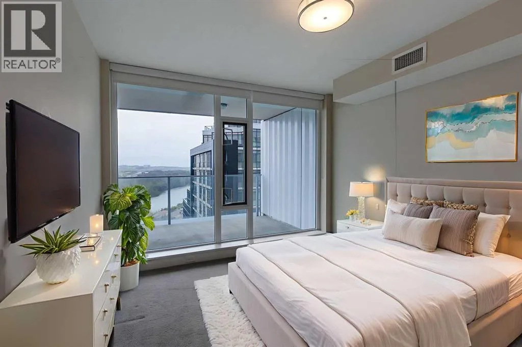 HOME SWEET HOME! Indulge in luxurious, trendy condo living with UNBEATABLE and UNOBSTRUCTED VIEWS of Bow River and St. Patrick Island in the popular Evolution building in sought-after East Village! This magnificently modern unit offers the ultimate in maintenance free living with 2 bedrooms, 2 bathrooms and 879+ SQFT of executive, stylish living space. Heading inside you will instantly fall in love with the sophisticated finishing's including gleaming luxury laminate flooring, granite countertops, in-floor heating, floor to ceiling windows to bask in your spectacular river and city views and CENTRAL AC. The open concept layout features a sun-drenched living room with huge windows showcasing your dream views, a spacious dining area/breakfast nook and the gourmet chefâs kitchen complete with premium stainless steel appliances, a center granite island with an eating bar, granite countertops, granite backsplash and tons of cabinet space. Completing the inside of the unit is a laundry closet with storage space, a wonderful 3 piece bathroom, a generous sized bedroom, the stunning primary retreat with a walk through closet and a spa-like lavish 5 piece ensuite with dual vanity sinks, a private glass surround shower and a cozy tub. The huge covered balcony with a gas hookup for the BBQ offers you an outdoor oasis to enjoy hosting guests or having a drink while basking in your breathtaking river views. Additional features include an assigned, heated, secured, underground parking stall (situated directly beside elevator doors) and an assigned storage locker. You get exclusive access to amenities such as a fitness center with a sauna and a steam room, concierge, party room and an incredible rooftop patio/garden area. Pets allowed(Dog or 2cats). Steps from unrivaled amenities and Downtown Calgary hot spots, desirable restaurants, coffee shops, Bow River pathways, Central Library, Studio Bell, Fort Calgary, a shopping centre with a Superstore, major roadways and much more! Pet f riendly with board approval. This condo is a MUST VIEW! Book your private viewing today! (id:27476)