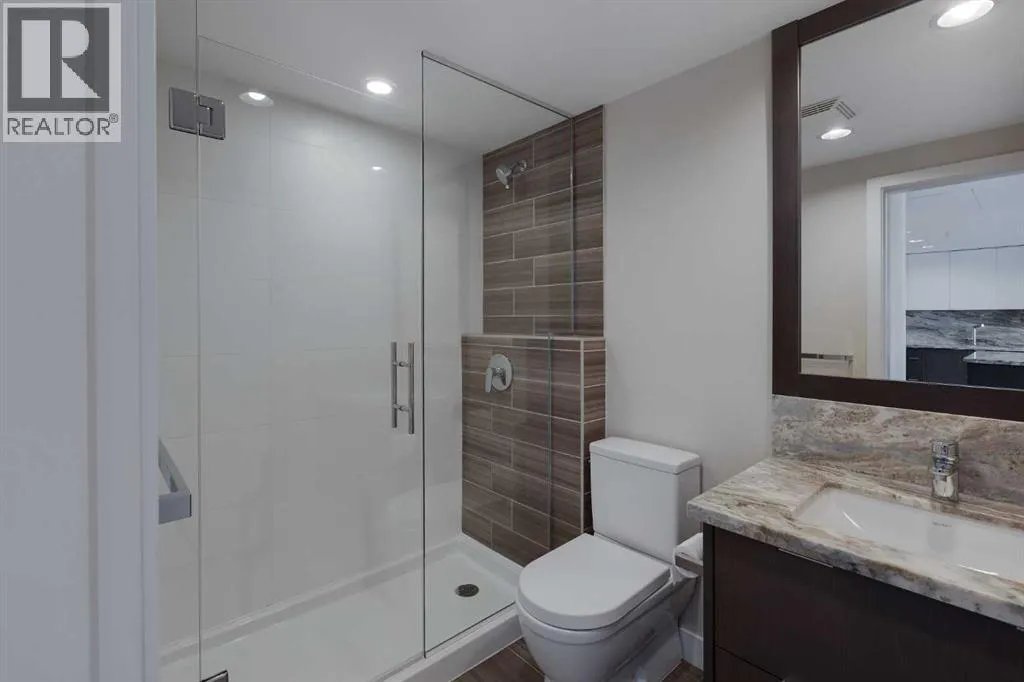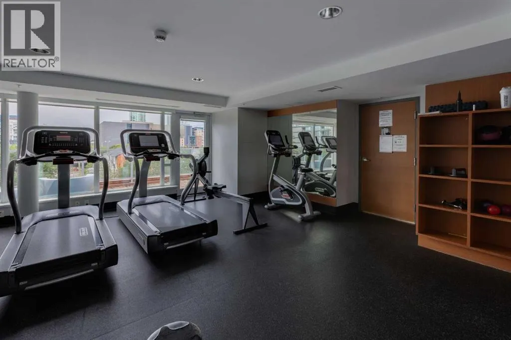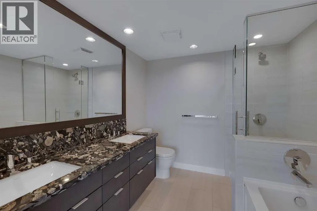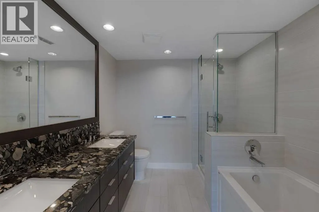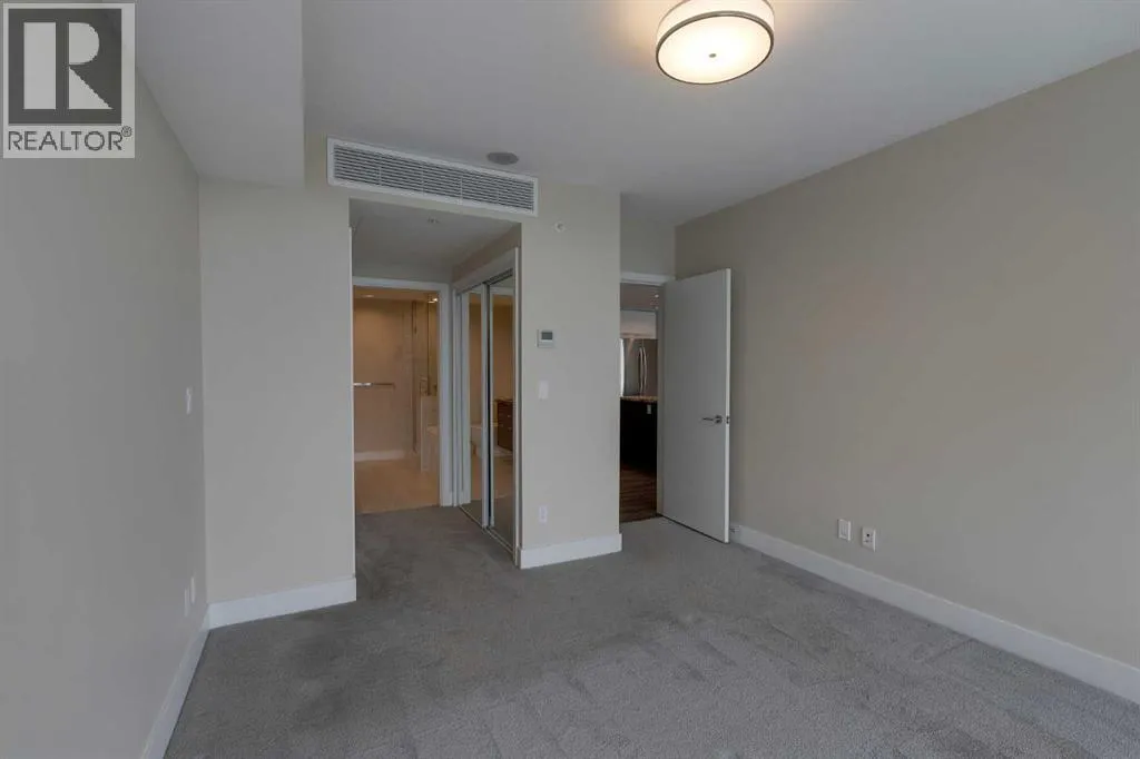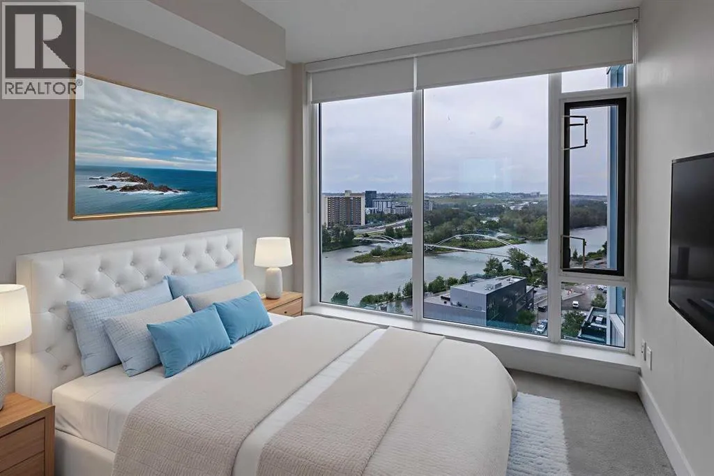 HOME SWEET HOME! Indulge in luxurious, trendy condo living with UNBEATABLE and UNOBSTRUCTED VIEWS of Bow River and St. Patrick Island in the popular Evolution building in sought-after East Village! This magnificently modern unit offers the ultimate in maintenance free living with 2 bedrooms, 2 bathrooms and 879+ SQFT of executive, stylish living space. Heading inside you will instantly fall in love with the sophisticated finishing's including gleaming luxury laminate flooring, granite countertops, in-floor heating, floor to ceiling windows to bask in your spectacular river and city views and CENTRAL AC. The open concept layout features a sun-drenched living room with huge windows showcasing your dream views, a spacious dining area/breakfast nook and the gourmet chefâs kitchen complete with premium stainless steel appliances, a center granite island with an eating bar, granite countertops, granite backsplash and tons of cabinet space. Completing the inside of the unit is a laundry closet with storage space, a wonderful 3 piece bathroom, a generous sized bedroom, the stunning primary retreat with a walk through closet and a spa-like lavish 5 piece ensuite with dual vanity sinks, a private glass surround shower and a cozy tub. The huge covered balcony with a gas hookup for the BBQ offers you an outdoor oasis to enjoy hosting guests or having a drink while basking in your breathtaking river views. Additional features include an assigned, heated, secured, underground parking stall (situated directly beside elevator doors) and an assigned storage locker. You get exclusive access to amenities such as a fitness center with a sauna and a steam room, concierge, party room and an incredible rooftop patio/garden area. Pets allowed(Dog or 2cats). Steps from unrivaled amenities and Downtown Calgary hot spots, desirable restaurants, coffee shops, Bow River pathways, Central Library, Studio Bell, Fort Calgary, a shopping centre with a Superstore, major roadways and much more! Pet f riendly with board approval. This condo is a MUST VIEW! Book your private viewing today! (id:27476)