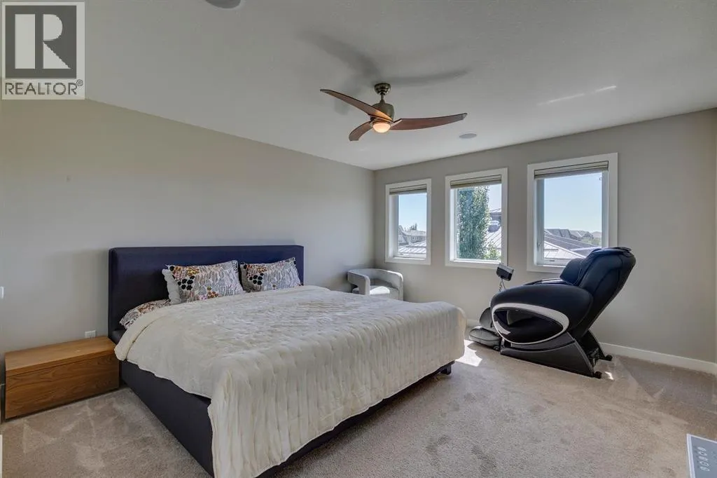 TRANQUIL VIEWS OF THE POND | FULLY DEVELOPED 5 BDRM HOME WITH AN ABUNDANCE OF UPGRADES | NO NEIGHBOURS BEHIND YOU | This gorgeous home is nicely located on a quiet street, featuring a south backyard with no neighbours behind you & has a long list of fabulous upgrades! The main level, bright with an abundance of natural light, welcomes you in to a large foyer with oversized tile flooring & opens to a spacious & inviting floorplan. The gourmet kitchen showcases a ceiling detail bulkhead, full height cabinetry in a rich dark tone that is contrasted with the soft, neutral arabesque custom tile backsplash & elegant granite countertops. The stainless steel appliances include a sleek ceramic cooktop & built-in oven & microwave; there is a central island as well as a peninsula style island making this kitchen not only stunning but also highly functionalâ¦plus there is a walk-through pantry! The peninsula island offers an eating bar & overlooks the large dining area that opens to the sunny backyard. Finished with beautiful hand-scraped hardwood flooring throughout the living & dining areas, while the living room features a stylish gas fireplace with raised hearthâ¦this space is warm & inviting, creating a perfect atmosphere for quiet family time or entertaining guests, offering views of green belt & pond! Completing this main level is a private den with sliding pocket doors. Upstairs is sure to please as wellâ¦there is a generous sized bonus room with built-in dry bar with beverage fridge; the sliding barn door creates an ideal separation for the âkidâs areaâ where you will find 3 bedrooms, separated by a 5pc bathroom with dual sinks, as well as a built-in homework station! The Master bedroom, located at the rear of the home, offers fantastic views of the pond & has a lovely spa-like ensuiteâ¦freestanding bathtub with a modern full height subway tile feature wall, dual vessel sinks, & custom tiled shower with 10mm glassâ¦plus a walk-in closet with custom built-in organi zers! You will enjoy the convenience of the upper laundry room with expansive counter space & lower cabinets! The lower level, professionally finished, is host to a huge open family/rec room, 5th bedroom & full bathroom. This home is also wired with in-ceiling speakers on all 3 levels, central A/Câ¦plus it is pet-free & smoke-free! The south backyard can become your private oasisâ¦fully fenced & landscaped with a full-width skirted deckâ¦and no neighbours behind! Enjoy this amazing home in a desirable 4 season community that offers great access, endless shops, restaurants & servicesâ¦plus nearby community schools! (id:27476)