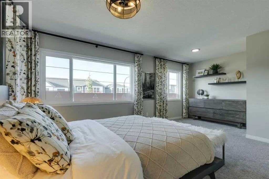 This Sandalwood Zll showhome leaseback offers 1,818 sq ft of well-designed living. The main floor features a versatile flex room and full bath, anchored by a spacious kitchen ideal for cooking and entertaining. Upstairs, the large primary bedroom includes a 4pc ensuite, joined by two additional bedrooms, a secondary full bath, laundry, and a central loft for family gathering space. Complete with a double detached garage, this home blends functionality with style. Located in Glacier Ridge, a prestigious Northwest community with mature tree-lined streets, resort-style lighting, and easy access to established amenities. Located in Glacier Ridge, a prestigious Northwest community with mature tree-lined streets, resort-style lighting, and easy access to established amenities. Photos are representative. (id:27476)