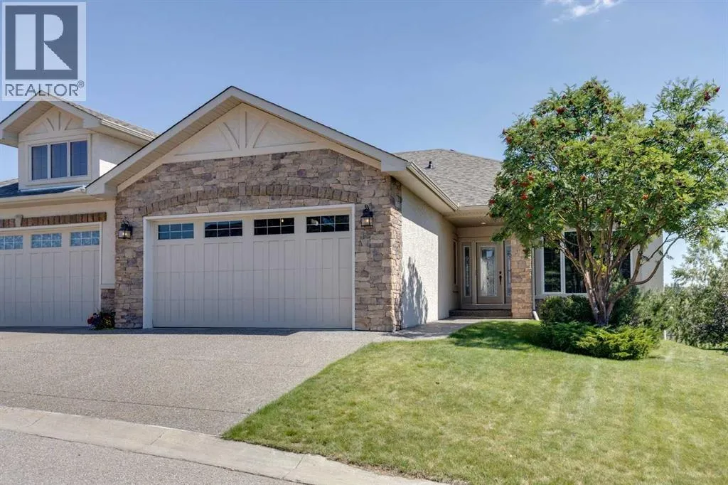 Experience luxury living in this expansive 3200+ square feet walk out villa backing onto a picturesque ravine with breathtaking views from the upper balcony off the kitchen, and lower level covered patio. Designed for comfort and style, it features an open concept layout, chefs kitchen, diningroom, office and primary suite with a 5piece ensuite complete with walkin closet all on the main floor. The finished walkout lower level offers a family room with wet bar and fireplace, media room, 2 bedrooms. A true turnkey, low maintenance home - move in and start living the lifestyle you deserve. (id:27476)