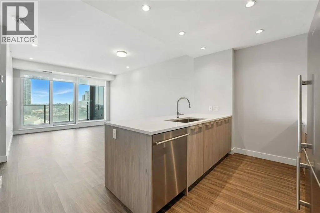 Welcome to this virtually brand-new 1-bedroom plus den condo in the prestigious Arris Residences, ideally located in the heart of Calgaryâs vibrant East Village. This south-facing 1-bedroom + Den, 1-bathroom unit offers 635 sq. ft. of thoughtfully designed living space, featuring floor-to-ceiling windows that flood the interior with natural light and offer unobstructed views of the downtown skyline from your private balcony. The modern kitchen is outfitted with quartz countertops, premium stainless steel appliances, and sleek contemporary cabinetry, making it both stylish and functional. The versatile den provides the perfect space for a home office, guest area, or reading nook, while central air conditioning ensures year-round comfort.Residents of Arris enjoy access to a wide range of luxury amenities, including 24/7 concierge service, a fully equipped fitness centre, yoga studio, indoor swimming pool, hot tub, and sauna. The pet-friendly outdoor courtyard, secure bike storage with a maintenance station, and elegant private dining room with a chefâs kitchen for hosting gatherings all contribute to an exceptional urban living experience. Additional features of this unit include heated underground parking, a spacious storage locker, and access to an on-site car wash bay. Convenience is truly at your doorstep with direct indoor access to Superstore, TD Bank, and Winners, and youâre just steps from the C-Train, Central Library, Studio Bell, river pathways, and Calgaryâs downtown core.Whether youâre a professional seeking refined city living, an investor looking for a turnkey property, or someone ready to enjoy the best of downtown Calgary, this move-in-ready condo offers unmatched value, luxury, and location. (id:27476)