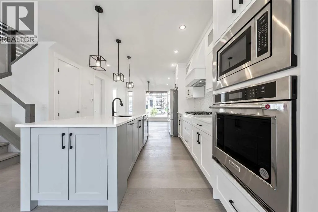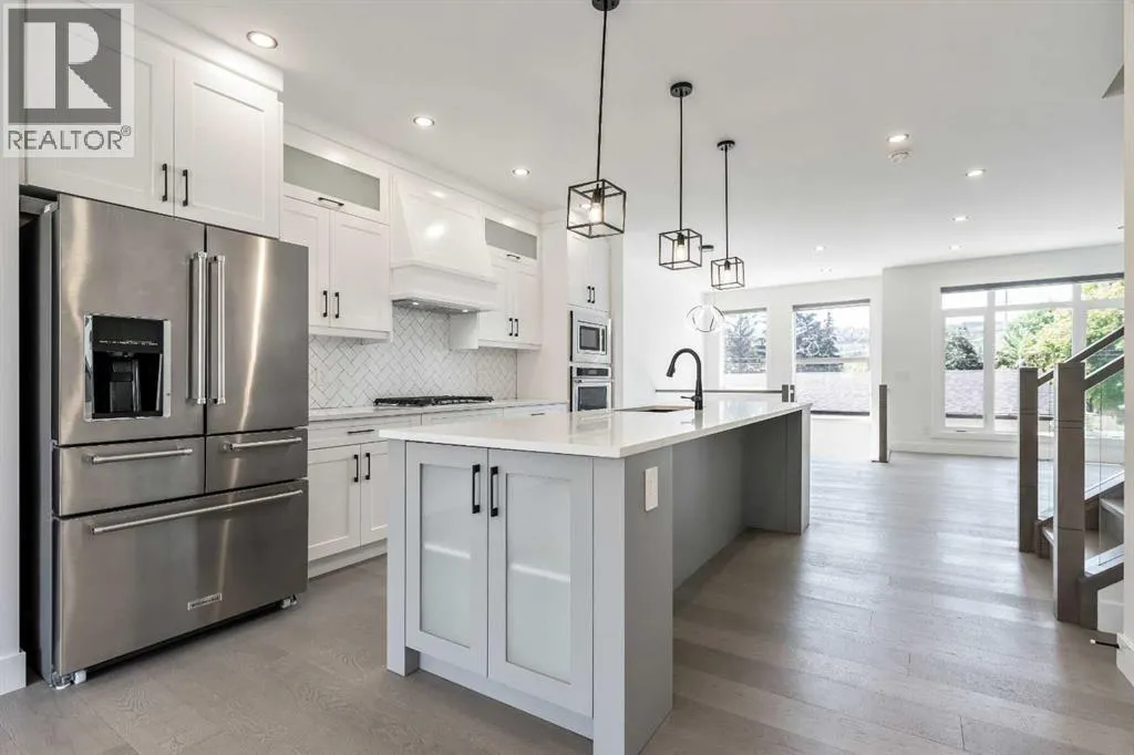 OPEN HOUSE SUNDAY November 1 | 1 PM to 3 PM!! Welcome home to this luxury 5 Bedroom infill, on a quiet inner-city Montgomery street that has an attractive mix of maintained original homes and newer development. What really sets this home apart besides the WALKOUT BASEMENT leading to SOUTHWEST FACING BACKYARD, is its Unique layout with ~2500 SQFT of LIVING SPACE that takes advantage of the Amazing Views, featuring a rarity for infills: breakfast nook and a WALK-IN PANTRY (a rarity for infills), and bonus room on top floor, with 2 BASEMENT BEDROOMS. NO CARPET IN THIS HOME, Just tile and wide-plank flooring. The dining room and nook are separated by am opulent kitchen with two tone cabinetry, quartz countertops and subway tile backsplash. The top floor has primary bedroom facing the incredible view and a 5 piece ensuite with walk-in closet. The Top floor bonus room is another useful living space, perfect for a home library or office. There is also a laundry room and two bedrooms on the top floor. The basement gets plenty and light and warmth from its south-facing windows. The lengthy wet bar, fireplace, and two bedrooms make it another great space for older children and guests to enjoy. This home is perfect for any office or medical professional due to its CLOSE PROXIMITY TO FOOTHILLS MEDICAL CENTRE, ALBERTA CHILDRENâS HOSPITAL, University of Calgary, and Market Mall are all just a few kilometers away. SAIT, Rockyview General Hospital, and Mount Royal University are just within a 10 to 15 minute drive. Other nearby amenities include Shouldice Sports Fields and Parks (including an incredible riverside off-leash park), Edworthy Park, Bow River walking and cycling pathway system, multiple Main Street shopping districts (Parkdale, Kensington, Montgomery and Bowness). Plenty of recently built shopping developments are within a few minutes drive including Superstore, Trinity Hills Village, and the future Costco and Stadium Shopping Centre. On the weekends, you can walk to th e river for World-class fly fishing or rafting, and it has Quick access to 16 ave/highway 1 so you can get to the mountains without fighting city traffic. (id:27476)