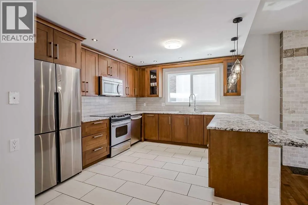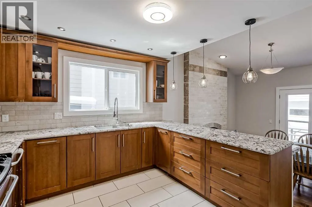Tucked away on a quiet cul-de-sac, this beautifully renovated bungalow is immaculate and offers the perfect blend of comfort, style, and functionality. With 3 bedrooms and 3 full bathrooms, this move-in-ready home boasts gleaming hardwood floors and a bright, open layout ideal for entertaining. The fully renovated kitchen features granite countertops, stainless steel appliances, a breakfast bar, and stylish lighting, all seamlessly connected to the spacious dining area with a cozy wood-burning fireplace.The large primary bedroom includes a 3-piece ensuite, while the second bedroom also offers generous space. The fully developed basement adds incredible versatility with an illegal suite, large recreation room, 2 bedrooms (non egress ), and an updated 3-piece bath â perfect for guests or extended family.Enjoy the sunny, low-maintenance backyard, surrounded by mature trees on a huge lot, and complete with an oversized detached double garage with 220 power. This well-maintained home includes numerous updates such as fresh paint (interior and exterior), LED lights, a newer roof, attic installation upgrade and so much moreIdeally located near schools, amenities, parks, and walking paths â this is a must-see! Book your showing today or explore the 3D tour! (id:27476)