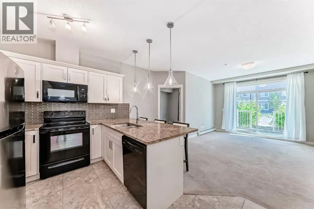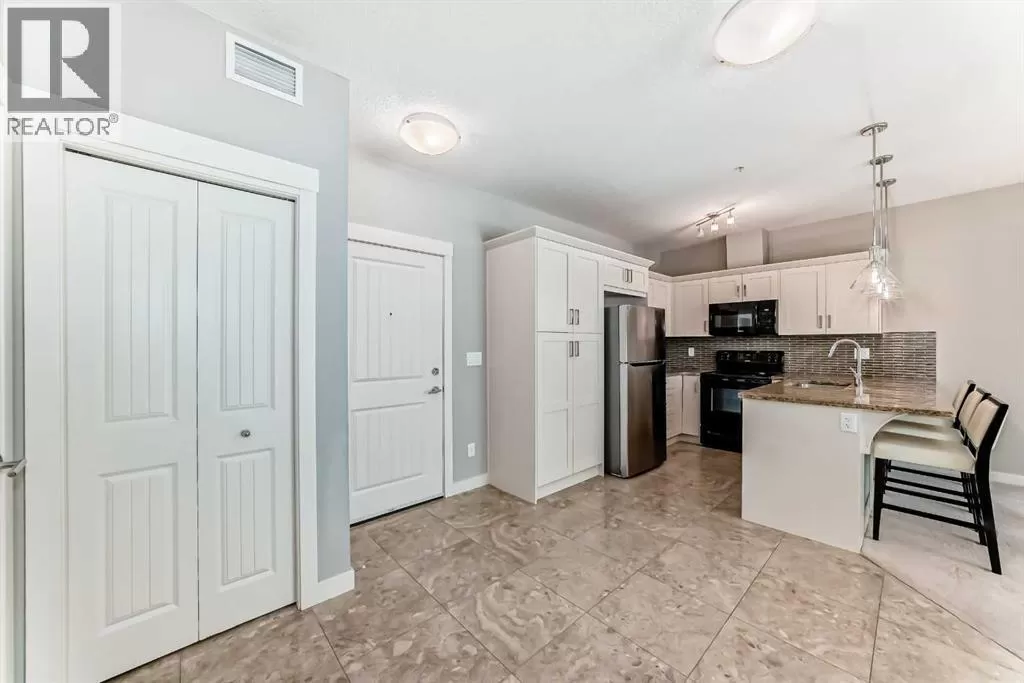 Welcome to this beautifully upgraded ground-floor unit in the desirable community of Cranston Ridge. This 2-bedroom, 2-bathroom home showcases modern finishes, including granite countertops, an extended pantry, a convenient breakfast bar, and an open-concept layout filled with natural light. The spacious primary suite features a walk-in closet and a private ensuite with dual vanities. The second bedroom and a full 4-piece bathroom are thoughtfully positioned on the opposite side for added privacy. Enjoy outdoor living on your covered patio with a gas line hookup, plus the convenience of an underground storage locker. Surrounded by scenic pathways, parks, and nearby shopping, this location also offers quick access to the South Health Campus and major amenities.Donât miss the opportunity to own this exceptional home in the vibrant community of Cranston! (id:27476)