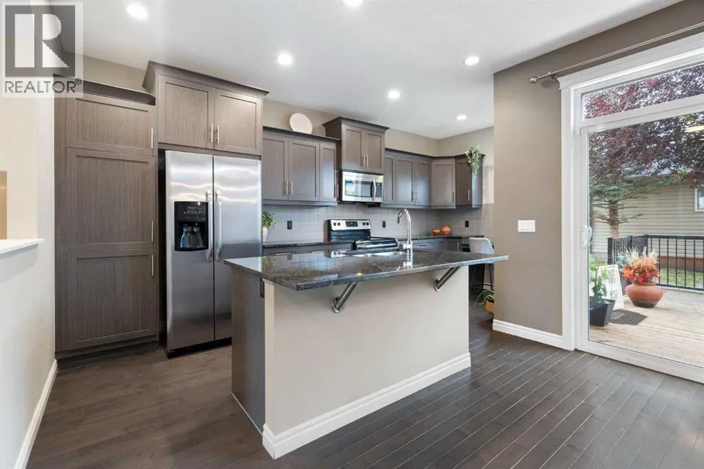 Welcome this beautiful Trico-built home, proudly owned by the original owners and packed with thoughtful upgrades.This property boasts a fully developed basement (2017) and a double detached garage (2017) off a paved back lane. The private SW-facing backyard features an extended deck, newer fence (approx. 3 years old), and a dog runâperfect for outdoor living. A new roof, automatic sprinkler system, upgraded window coverings, and central air conditioning add to the homeâs comfort and value.Step inside the bright, open-concept main floor, where a cozy gas fireplace anchors the living area. The kitchen impresses with shaker-style cabinets, granite countertops, built-in desk, and large island. Patio doors lead directly from the kitchen/dining space to the private back deck for seamless indoor-outdoor entertaining.Upstairs, youâll find three bedrooms, a full main bathroom, and laundry. The spacious primary retreat comes with a walk-in closet and luxurious walk-in shower including in-floor heating.The fully developed lower level is perfect for multi-generational living or guests, offering a separate kitchen, large bedroom with walk-in closet, a full bathroom with steam shower, and a generous recreation area.Located close to greenspace, shopping, and schoolsâwith another school currently under construction right behind the propertyâthis home is ideally positioned for both convenience and future value. (id:27476)