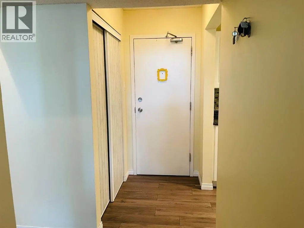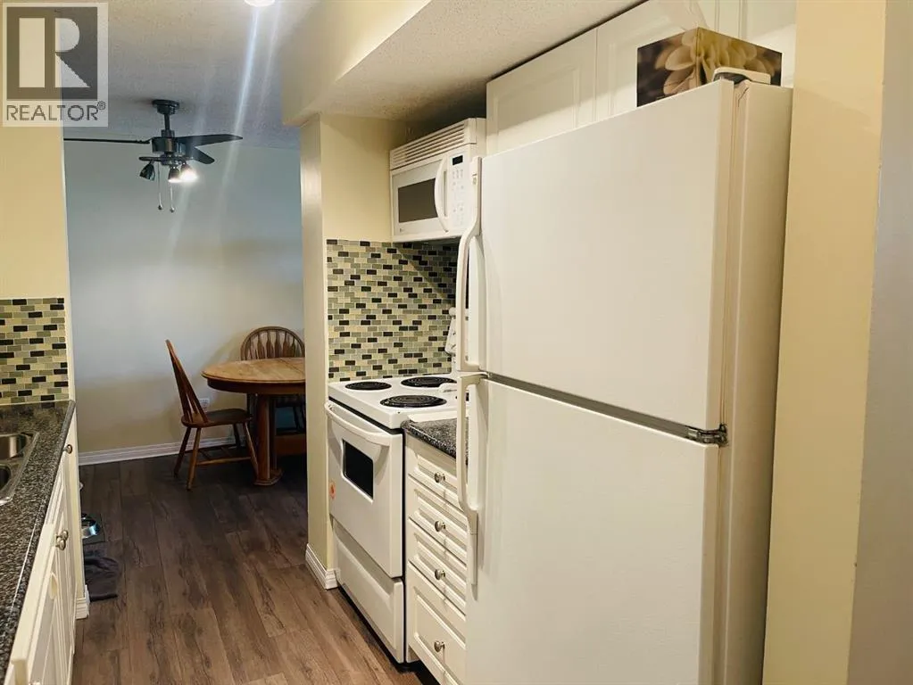 Welcome to Maryland Terrace, a quiet concrete building that's well run, well maintained, and secure. Your new 2-bedroom, 1-bathroom with in-suite laundry offers a very good size at 874 sq./ft. This unit features a condo fee that includes electricity, heat ,water & a on-site manager. You'll love the galley-style kitchen with modern white cabinets, a microwave hood fan allowing for more counter space, and matching white appliances including a built-in dishwasher. You will appreciate the formal dining area and spacious living room with sliding doors leading to an oversized covered balcony, perfect for barbecuing and entertaining. Additional highlights include newer laminate flooring, new backsplash, and an upgraded full bathroom. The master is huge with a walk-in closet and room for a king-size bed and plenty more. This unit is very clean and well maintained. The building boasts excellent amenities including a gym, sauna, and games room. Its prime location near Sunridge Mall offers fantastic shopping, with easy access to downtown Calgary, SAIT/U of C, public transit, and major routes like the Trans-Canada Highway and Deerfoot Trail.COMMUNITY: Maryland Heights is a quiet residential neighbourhood in the north-east quadrant of Calgary, Alberta. It is bounded by Barlow Trail to the east, Memorial Drive to the south, Deerfoot Trail to the west and Trans-Canada Highway to the north. The land was annexed to the City of Calgary in 1910. Originally called Crossroads, the community was established in 1962.Schools include Belfast Elementary, Maryland Heights Elementary, Sir John Franklin Junior High, and Columbia College (private) and Khalsa School Calgary Educational Foundation (private). Plenty of parks and shopping nearby, great proximity to downtown and the airport. (id:27476)