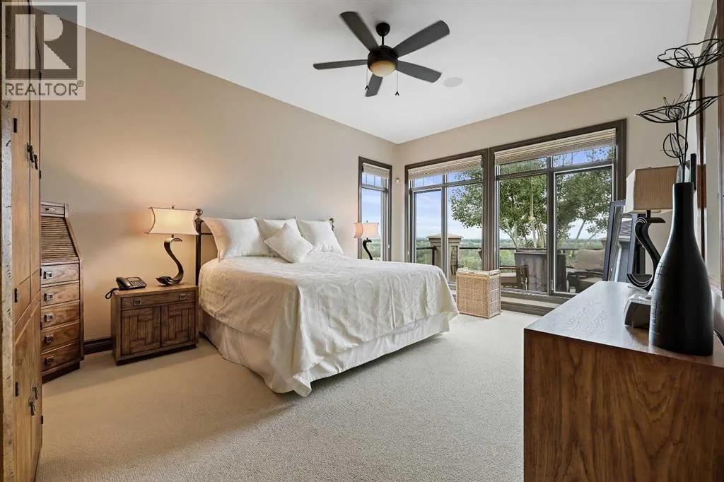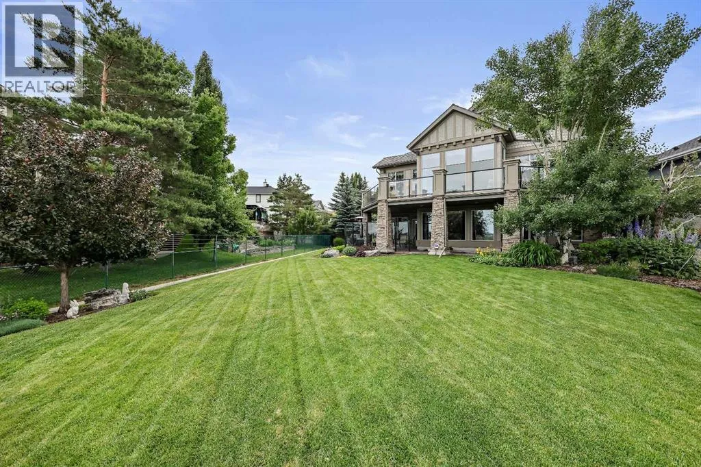 ABSOLUTELY THE FINEST VIEW THE RIDGE HAS TO OFFER IN SOUTH CALGARY! This rare, pie-shaped 1/3-acre walkout bungalow is perched atop the McKenzie Ridge, offering an unrivaled vantage point with panoramic, unobstructed views of the Bow River Valley, the majestic Rocky Mountains, Fish Creek Park, and the glittering Downtown skyline. Custom-built by Jayman, this executive home boasts over 4,000+ square feet of luxuriously finished living space. It is being offered for sale for the first time by the original owners. Situated on a quiet, private street with a sunny west-facing backyard, this property is a true sanctuary, featuring a professionally designed, resort-style backyard, mature landscaping, and ample outdoor space to entertain or relax, with nature at your doorstep. The oversized heated triple-car garage features a walking ramp with storage, built-in storage, and easy access for added convenience. Inside, a wall of floor-to-ceiling windows along the ridge floods the main level with natural light, showcasing the spectacular views from nearly every room. The main floor features 2,175 sq.ft. of elegant living with soaring 12â ceilings, rich hardwood floors, an inviting family room with a stone-faced gas fireplace, a front dining room, and a stunning chefâs kitchen with custom cabinetry, granite counters, BOSCH built-in appliances, Samsung Fridge, a dramatic central island with undermount sink, raised eating bar, server bar with beverage fridge and prep sink, and a large walk through server area and built in wall pantry. A spacious main floor office or flex room is perfect for working from home, offering inspiring views. The stately primary retreat provides even more breathtaking scenery, a large walk-in closet with built-ins, and a luxurious, spa-like en-suite with dual vanities, a soaker tub, and a separate steam shower. A mudroom, laundry area, and powder room complete the main level. The fully finished 1,856 sq.ft. The walkout basement is designed for entertainin g, featuring two large bedrooms, a massive 55â x 22â family/games/rec room with a second gas fireplace, full entertainment wall, wrap-around wet bar, five-piece bathroom, and ample storage. Step outside to an 18' x 13' covered concrete patio, 12' x 12' open patio with firepit area, and an expansive 55â x 12â upper deck finished with vinyl surface and glass railingsâperfect for enjoying sunsets and nature year-round. Additional features include two A/C units, a built-in speaker system, stucco & stone exterior, cedar shake roof, and extensive mature trees and shrubs. Located in one of Calgaryâs most sought-after SE communities, just minutes from Fish Creek Park, top-tier schools, a first-class golf course, shopping, and easy access to major roads, this exceptional home offers estate-level living, an unbeatable location, and a lifestyle thatâs second to none. Call your favorite REALTOR® today to schedule your private viewingâthis is a once-in-a-lifetime opportunity! (id:27476)