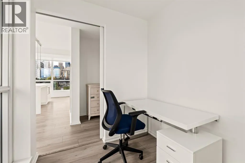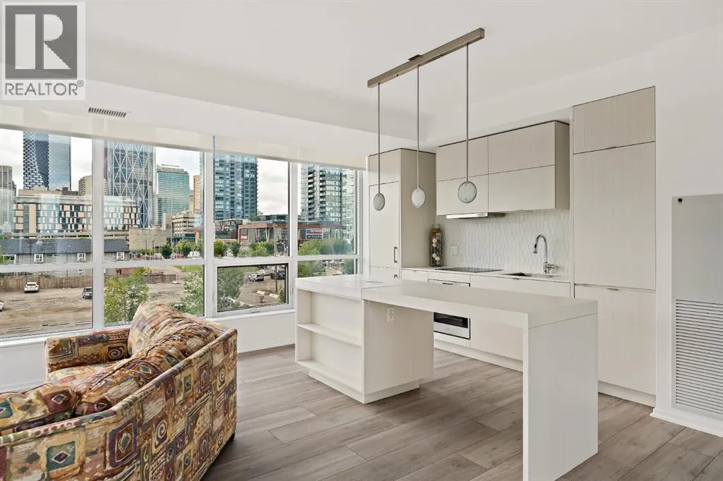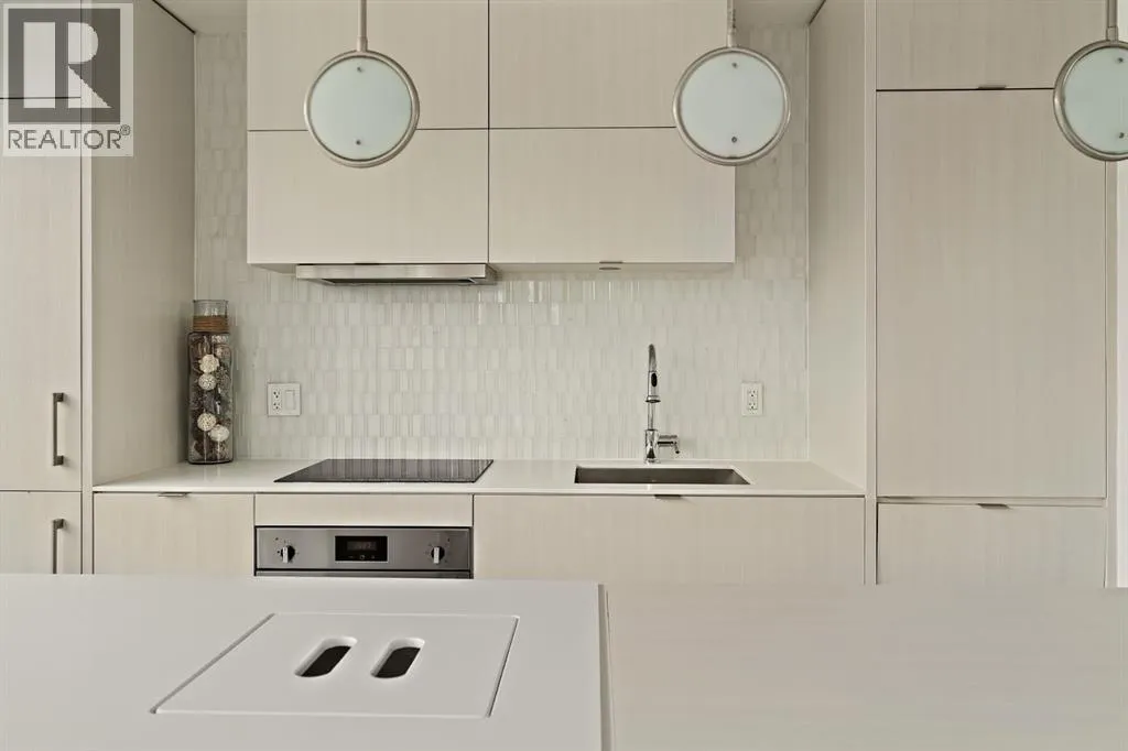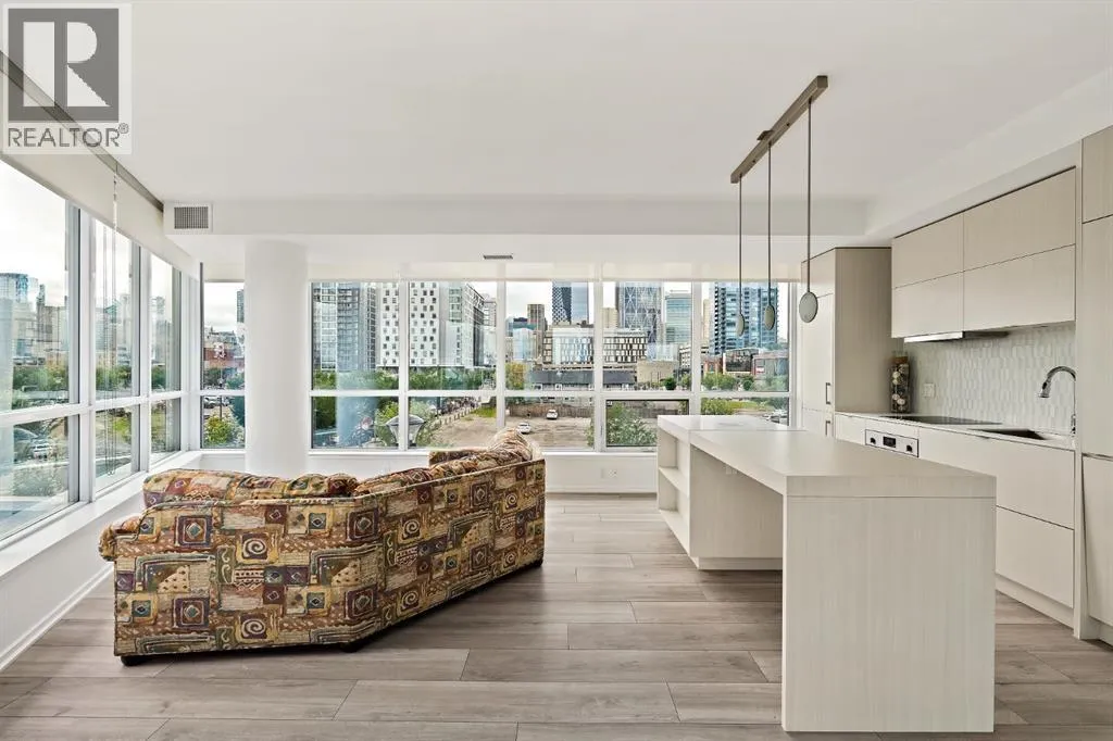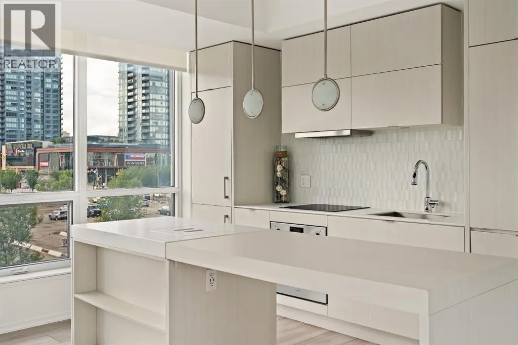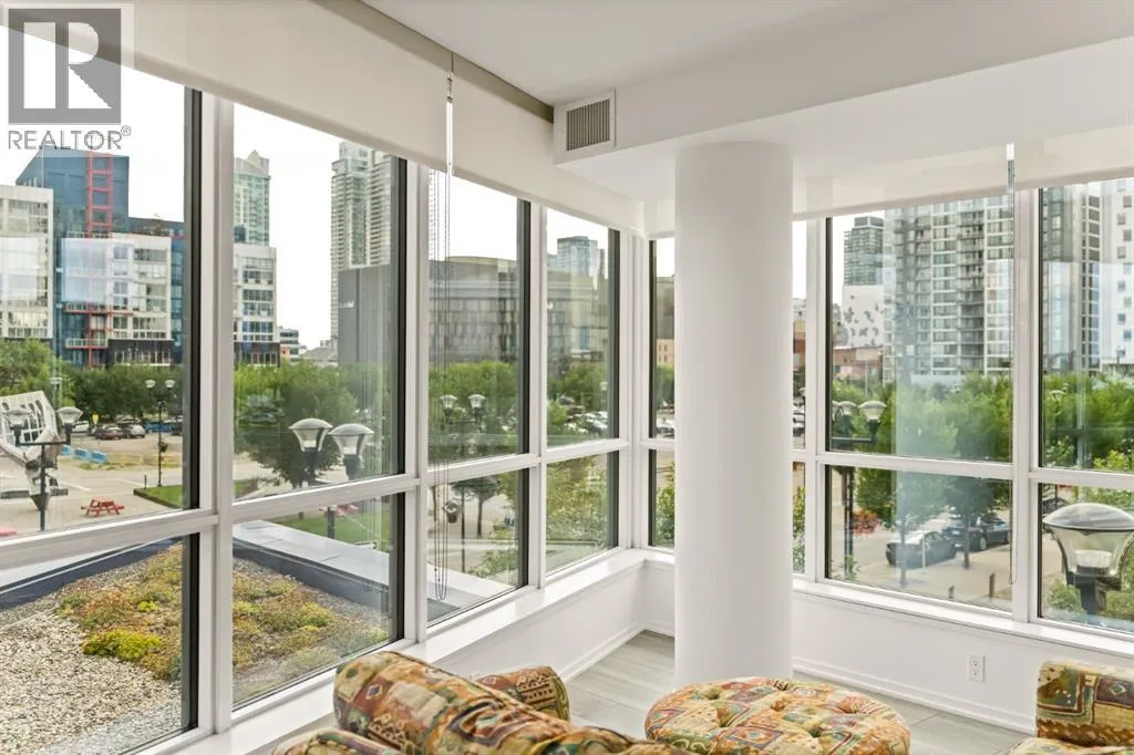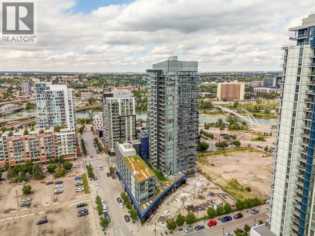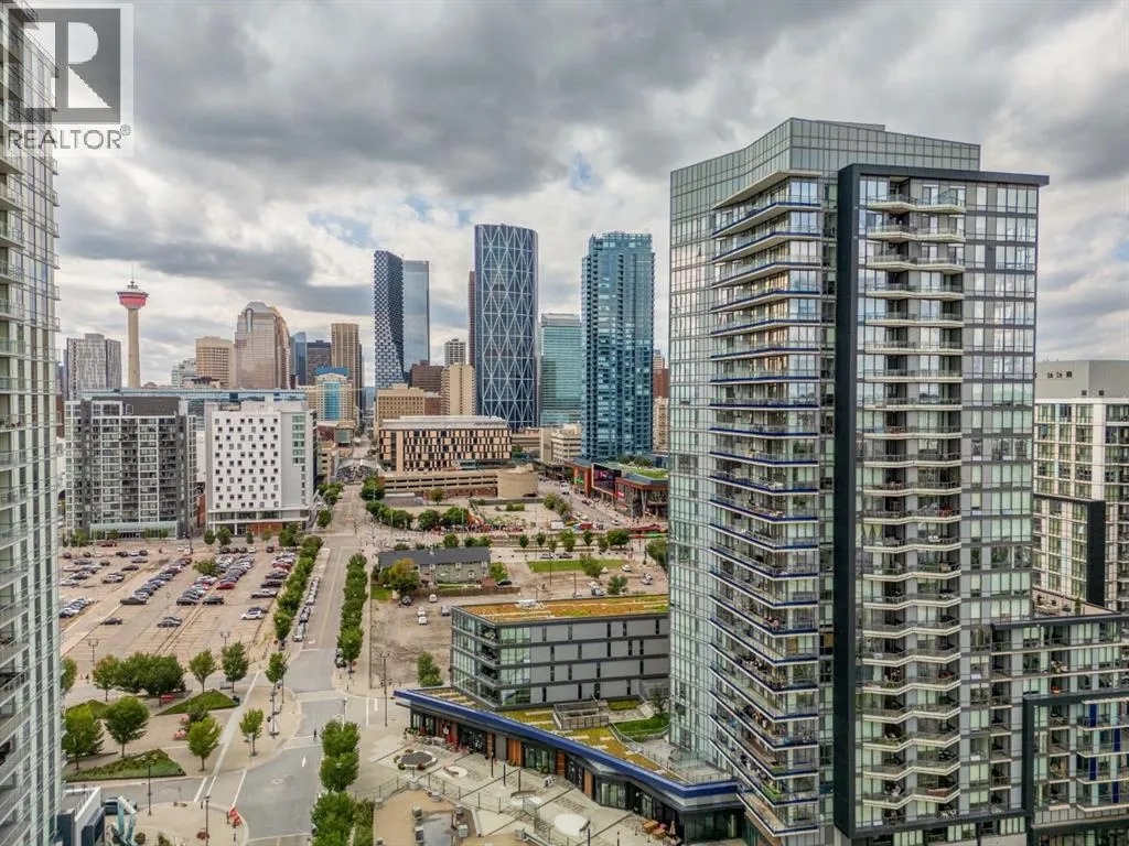 Experience unmatched exclusivity and style in this one-of-a-kind East Village residence. This exceptional corner unit with no neighbouring units on either side, offers 270° panoramic views and a level of privacy rarely found in downtown living. One of only four like it in the entire building, and the only one currently available, this home features its own private elevator and private entrance, reserved exclusively for this tower. The sleek kitchen features integrated appliances, quartz countertops, and a large island perfect for entertaining. The spacious living area flows seamlessly to your private balcony, where you can take in morning coffee, evening cityscapes, or the tranquil ambiance of the neighbouring Zen Garden. Please note the second bedroom does not contain a closet. As a resident of The Verve, youâll enjoy a wealth of amenities: a stunning 25th-floor observation deck, indoor lounge with fireplace and media centre, fitness facilities, BBQ area, private concierge service, storage, and secure titled underground parking. Step out into East Village to explore St. Patrickâs Island, the Bow River pathways and dog parks, the Central Library, the National Music Centre, and countless shops and cafés. Urban convenience meets rare privacy. This is not just a condo, itâs an exclusive lifestyle or investment opportunity in one of Calgaryâs most sought-after inner-city communities. (id:27476)