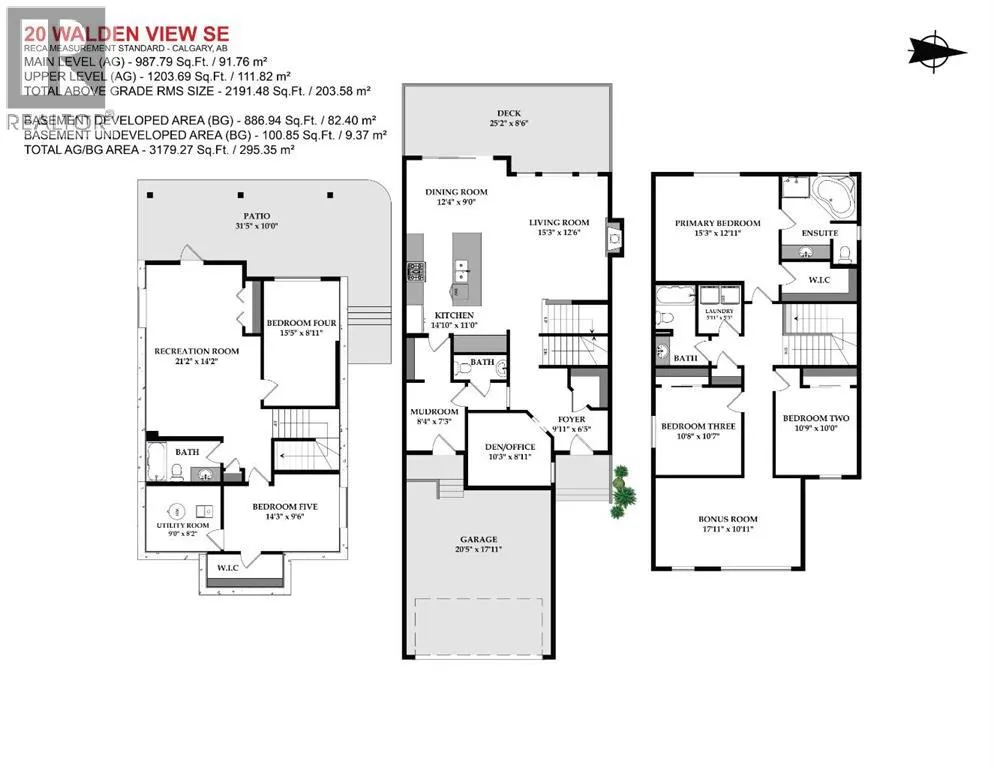 Everything you are looking for in a wonderful, immaculately maintained and spacious home can be found in 20 Walden View SE. Situated in a no thru family friendly cul de sac, just steps away from the park you will discover over 3000+sqft of beautifully developed living space. Custom built by this original home owner, every detail was hand selected to create a thoughtfully designed floor plan to create many family memories to last a life time. Now it is your turn to enjoy this FULLY FINISHED WALK OUT home built on a LARGE PIE LOT boasting FIVE BEDROOMS and 3.5 BATHROOMS for all to enjoy. Soaring 9ft ceilings invite you in to explore the functional yet spacious home commencing with the Den just past the foyer that invites you into the common living area where you will discover an expansive extended centre island, stunning GRANITE counters, sleek stainless steel appliances including an upgraded GAS RANGE, full tile subway back splash that extends to the ceiling behind the range, designer hood fan and a sizeable walk through pantry to the mud room. The living room features a floor to ceiling stone fireplace with built-in niche and decor mantle while the designated dining room mirrors the same stunning stone feature wall offering a rich warmth to this lovely family home. The floor to ceiling custom drapery adds an elevated feel to the home and frames in the over sized windows that takes you out through French sliding doors to the massive maintenance free deck with awning that overlooks the back yard. The upper level features three large bedrooms with the Primary bedroom boasting a spa-inspired 4pc en suite that has rarely been used and is immaculate. There is a huge corner soaker tub, water closet and over sized walk-in shower with built-in bench for you to enjoy your getaway from the everyday, along with a nice sized walk-in closet. Family and friends can enjoy the additional bedrooms with the 2nd bedroom offering a great slope vaulted ceiling and the Bonus room is perfe ct for movie night. To complete the upper level you have a convenient 2nd floor laundry room and another full bath. The FULLY FINISHED WALK-OUT basement offers you and additional 886 sq ft of great living space offering ample room for all. You have TWO more large bedrooms, a full bath and a generous living room / rec area. Luxury vinyl plank graces the floor through out and over sized windows invite an abundance of natural daylight into this great space. Step out to your lower covered patio where you will discover an exposed aggregate patio and stairs that compliment the esthetic of the home while offering a dedicated space for a hot tub or outdoor conversation pieces. A huge pie lot with mature trees and so much space to play and enjoy your surroundings. Already established in a vibrant and friendly street where the neighbours know your name and kids are running around the cul de sac, you will feel at home while having the space to grow your family while enjoying the community around you. Welcome home! (id:27476)